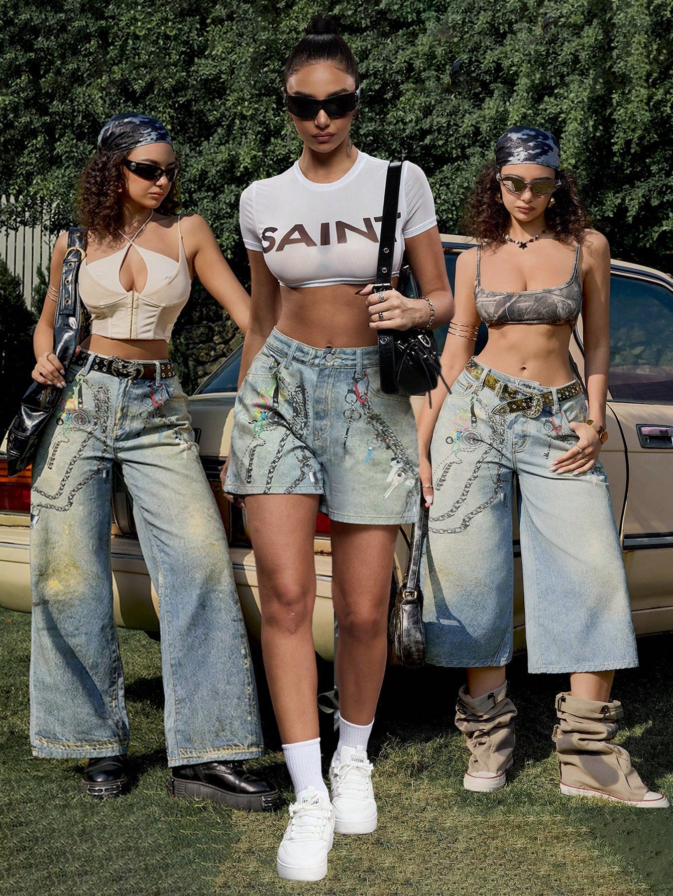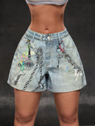 ICON Women's All-Over Print Pocket Casual Fashionable Denim Shorts