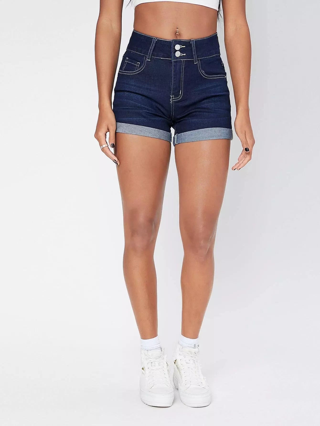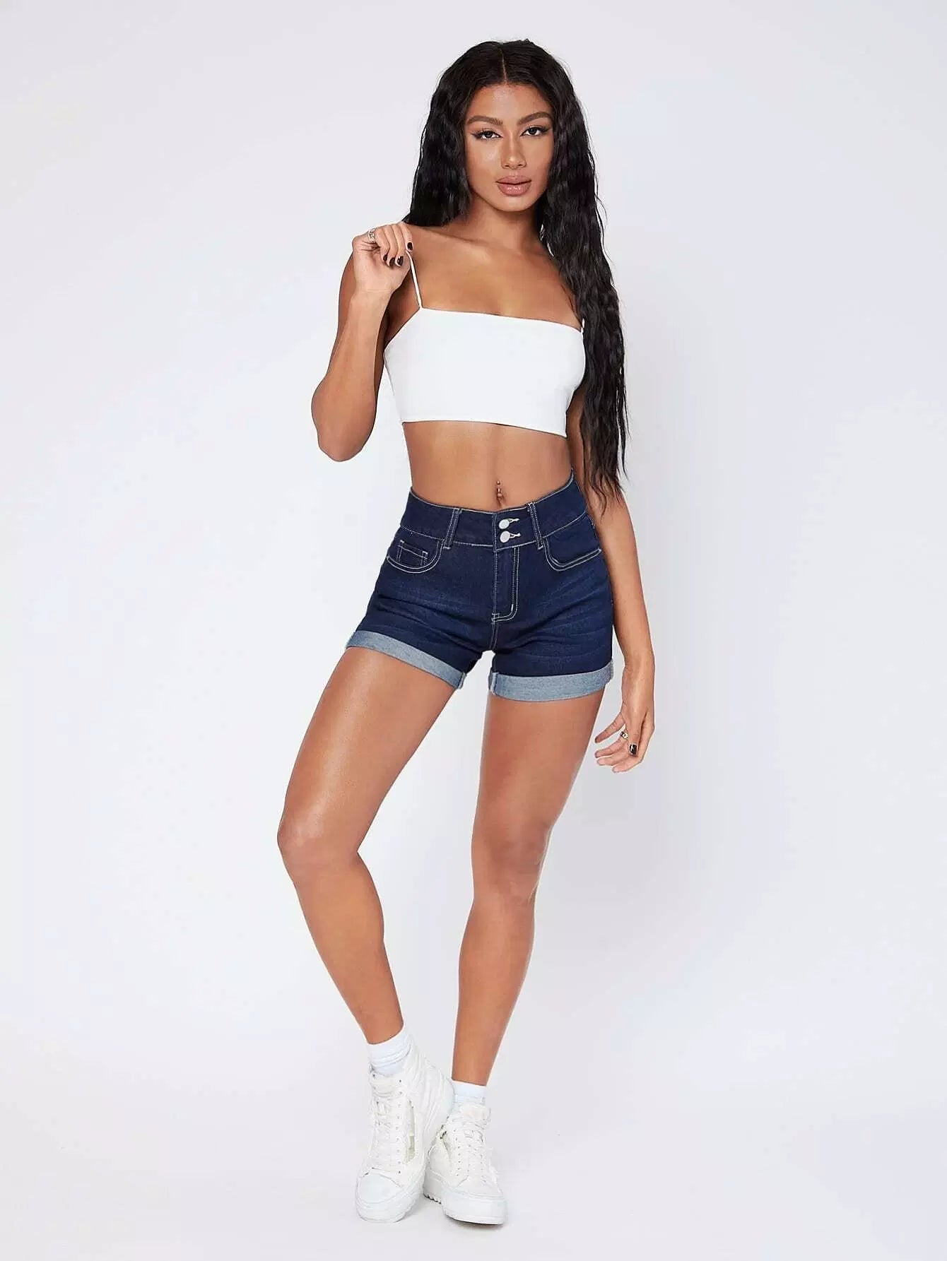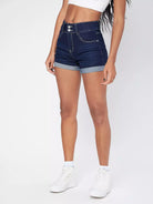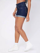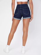Light Wash Mid-Waist Ripped Detail Cuffed Denim Shorts