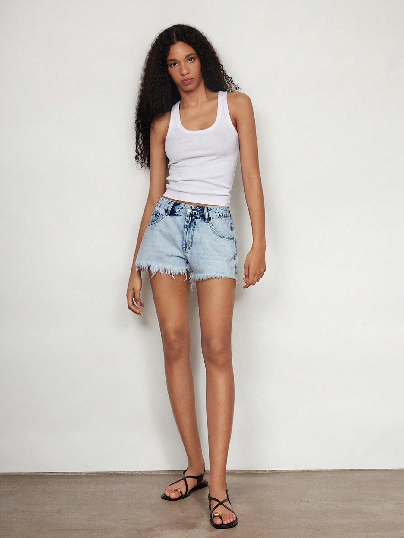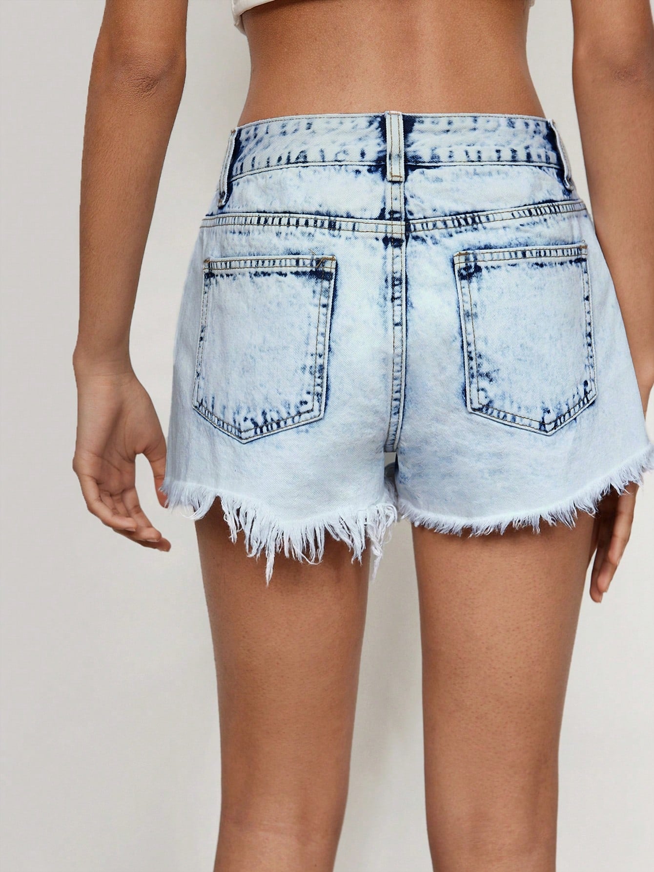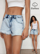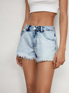 Maija Women's Washed Blue Denim Frayed Hem Shorts