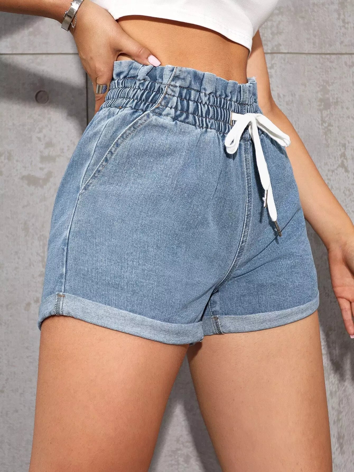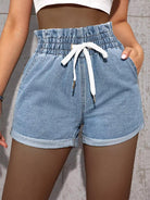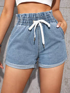 Paperbag Waist Drawstring Denim Shorts