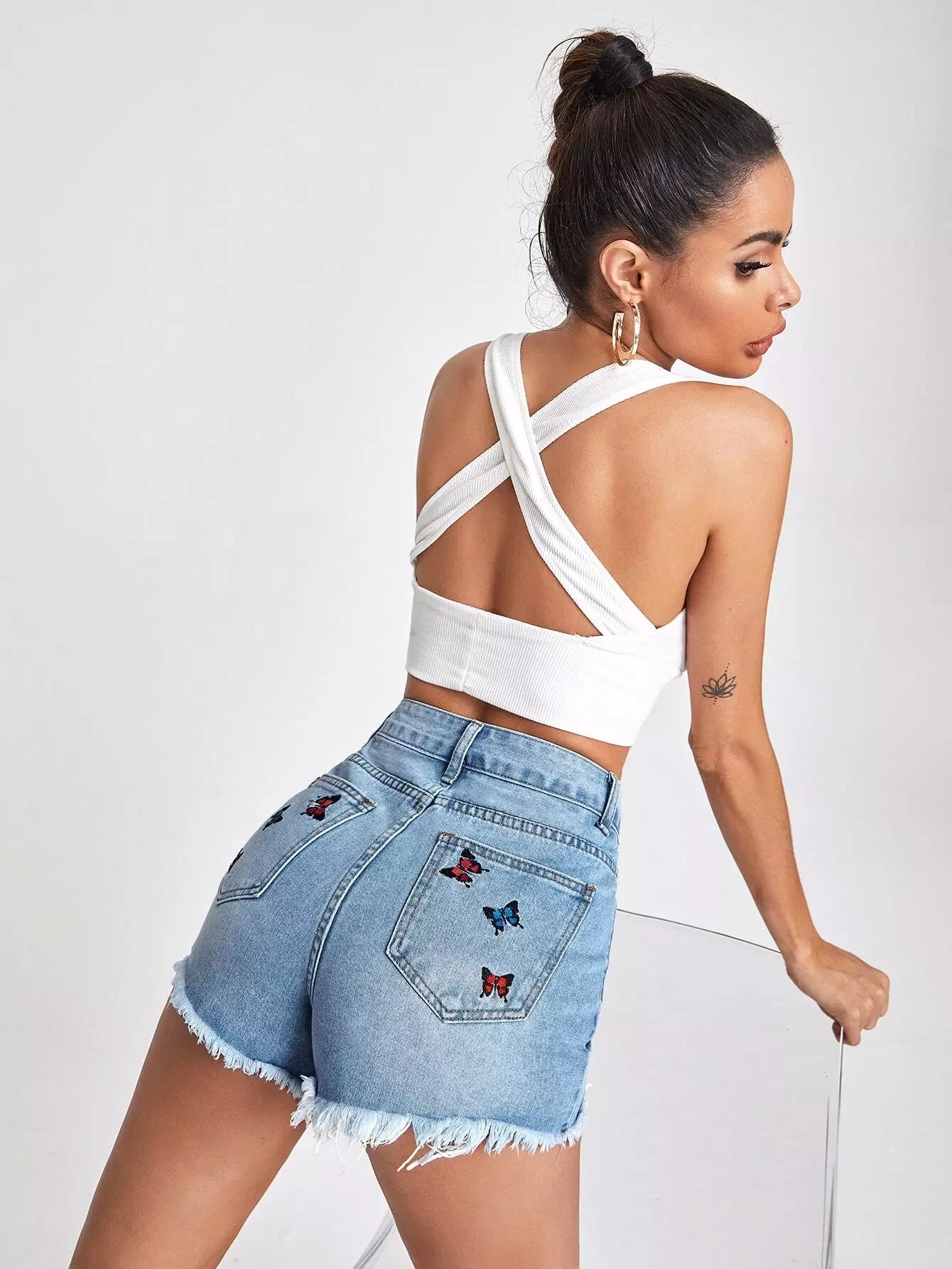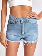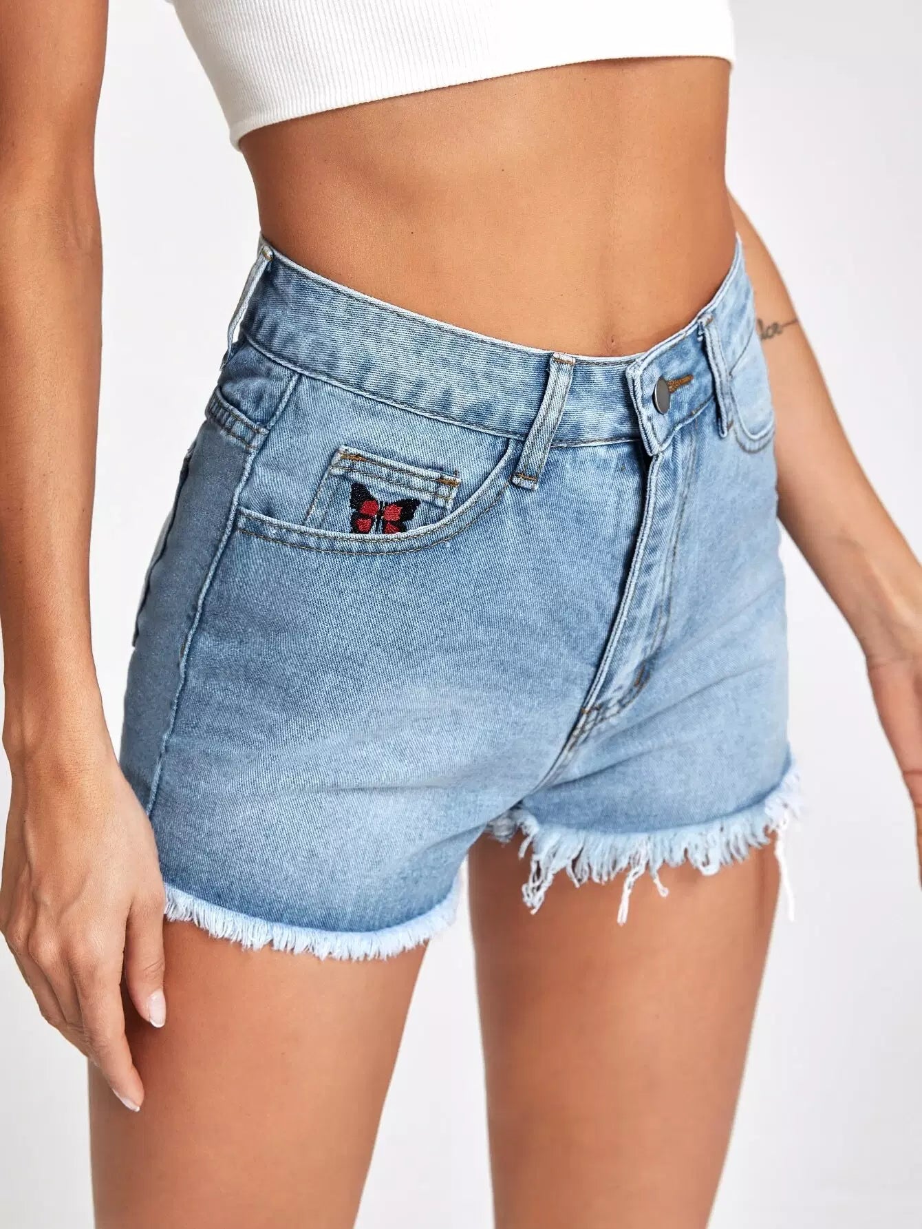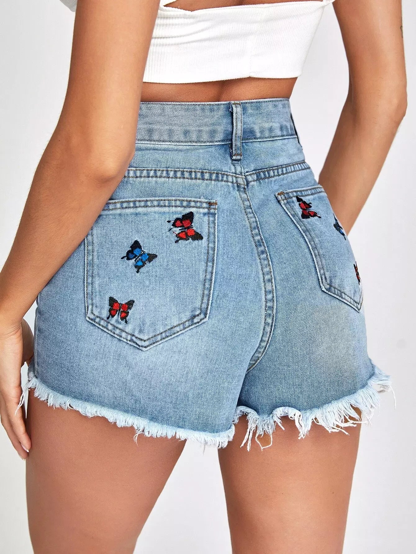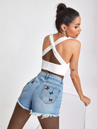 Raw Hem Butterfly Embroidery Denim Shorts