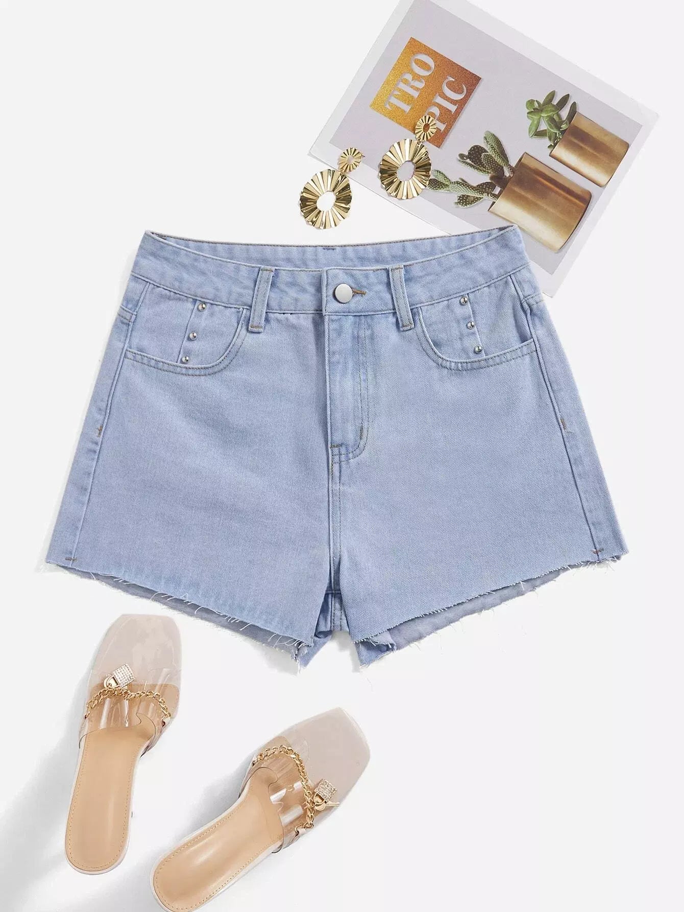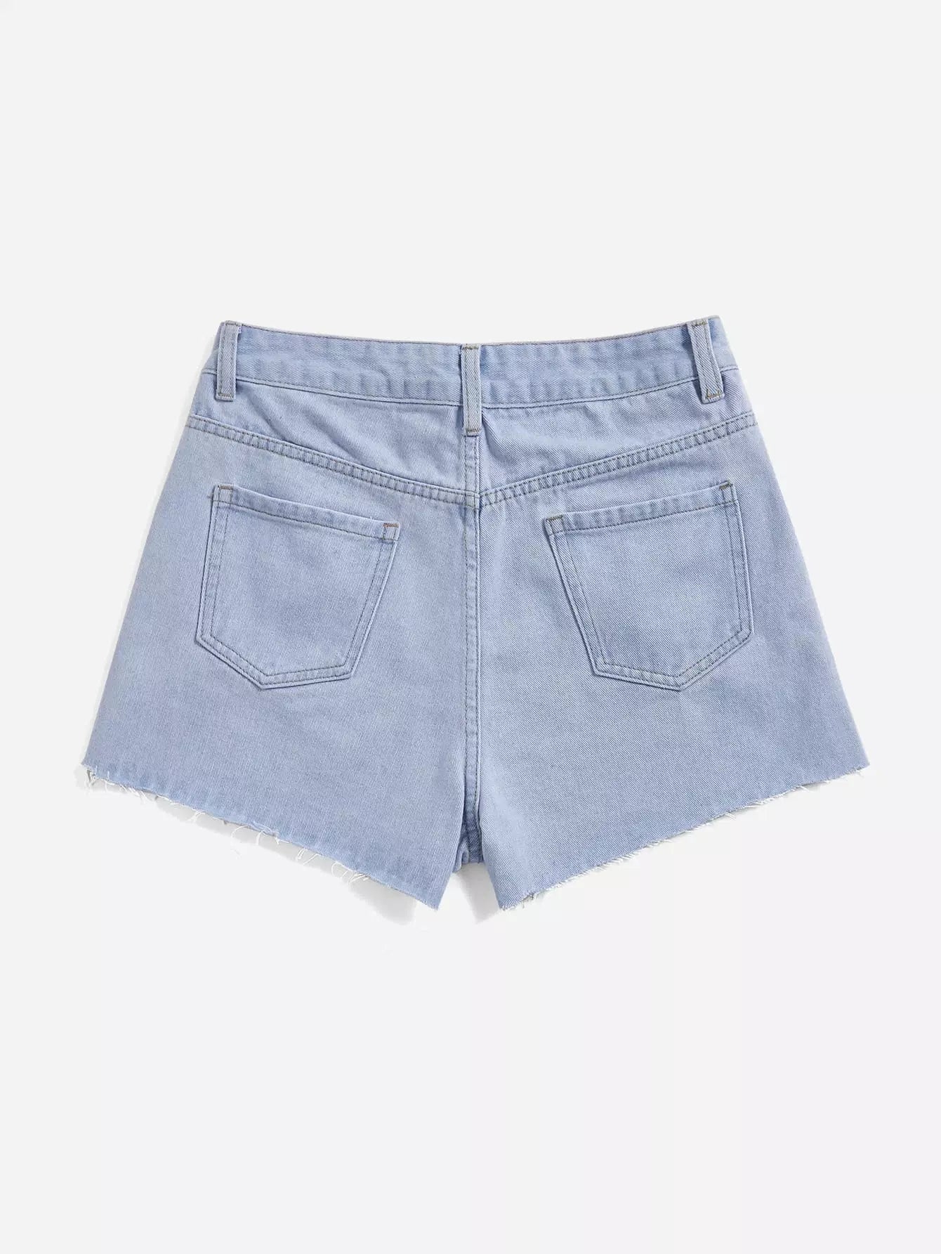 Raw Hem Slant Pockets Denim Shorts