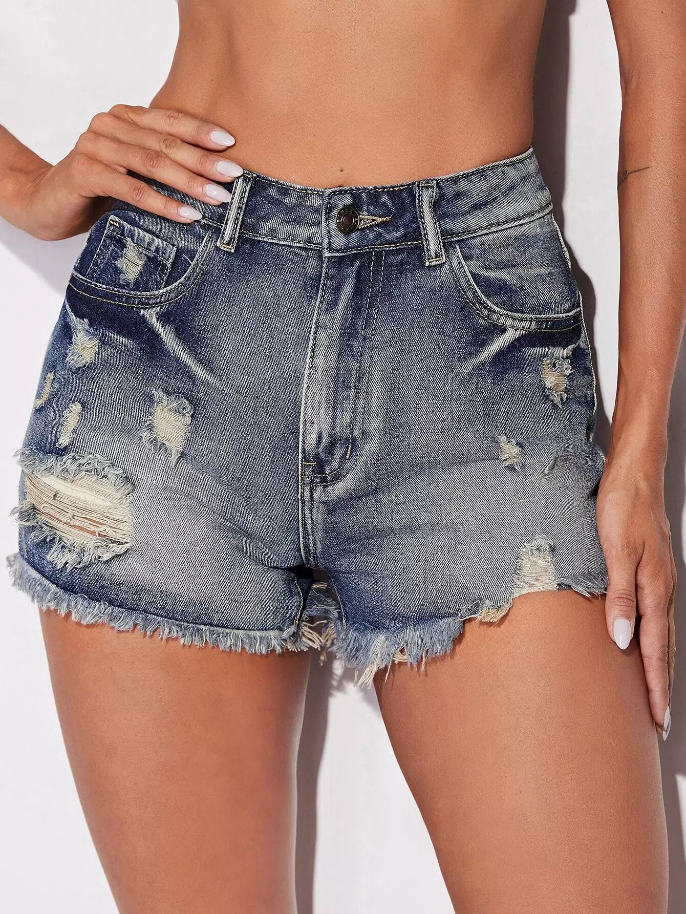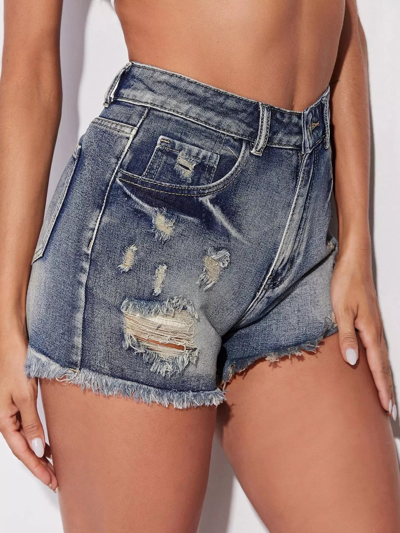 Ripped Raw Cut Denim Shorts