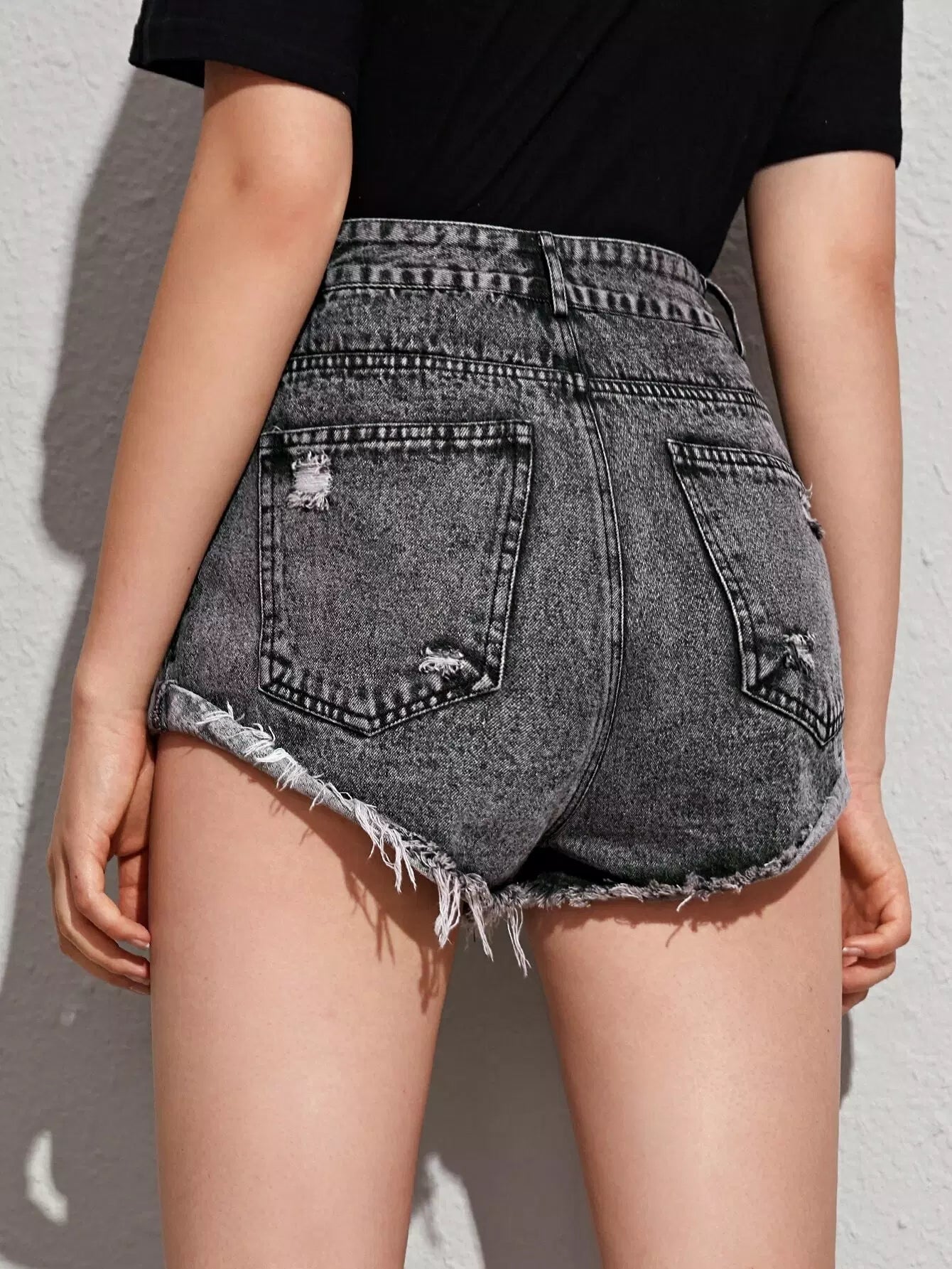 Ripped Raw Hem Denim Shorts Without Belt