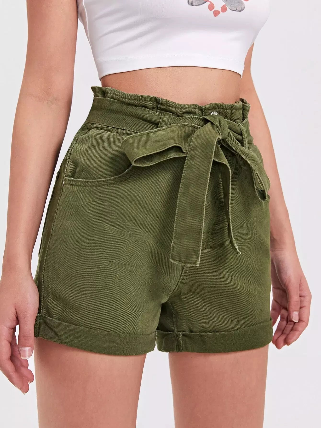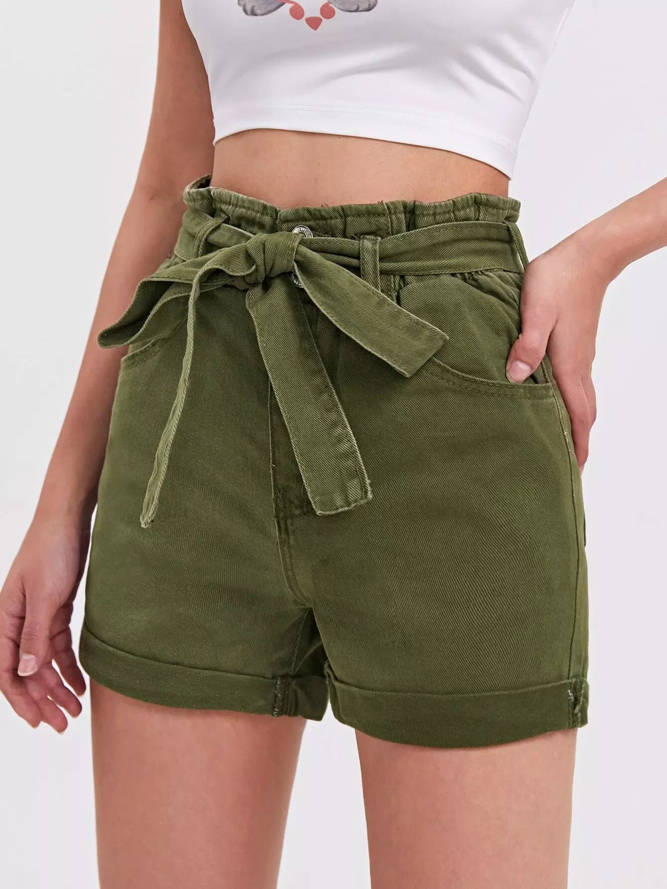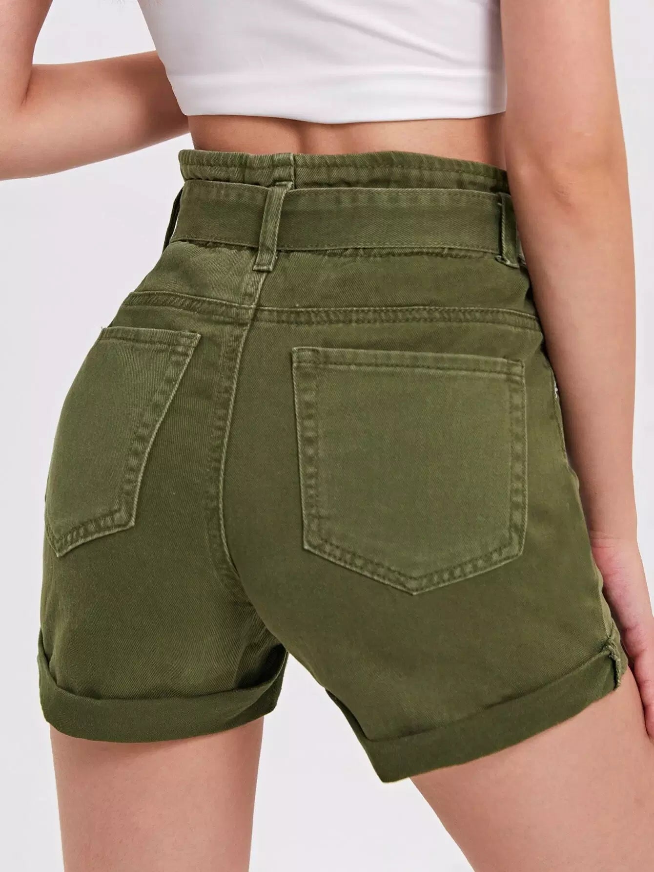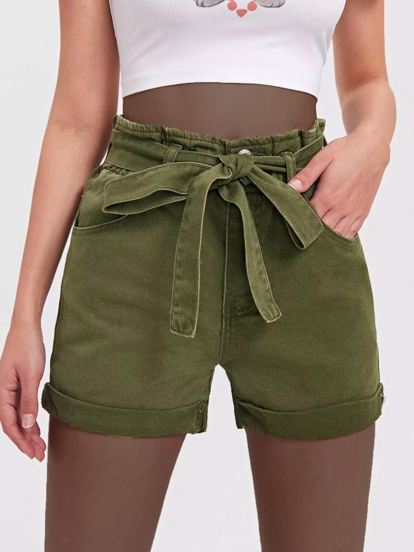 Roll Hem Denim Shorts Without Belt