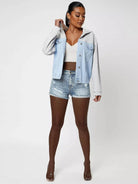 Zipper Fly Ripped Raw Hem Denim Shorts