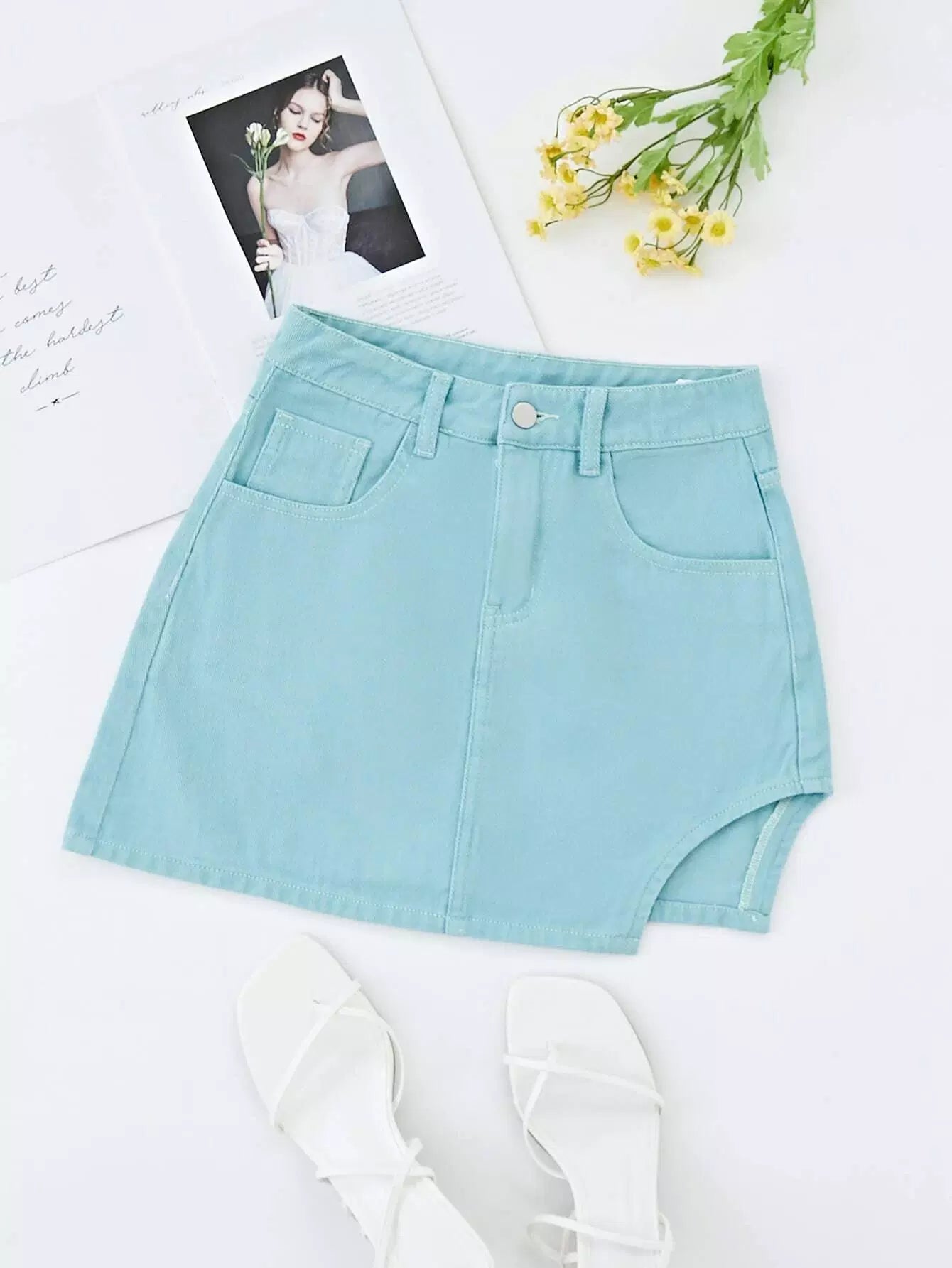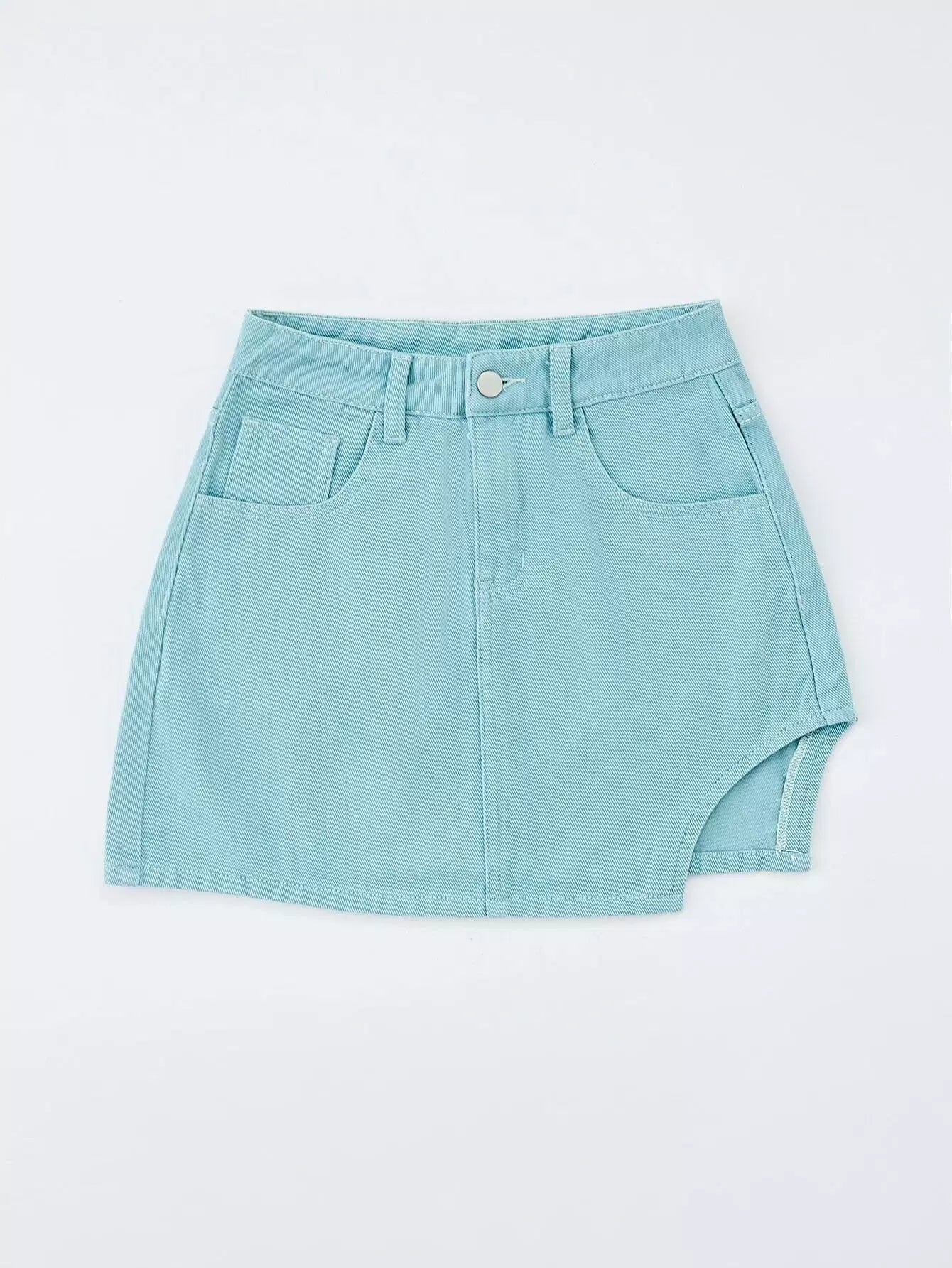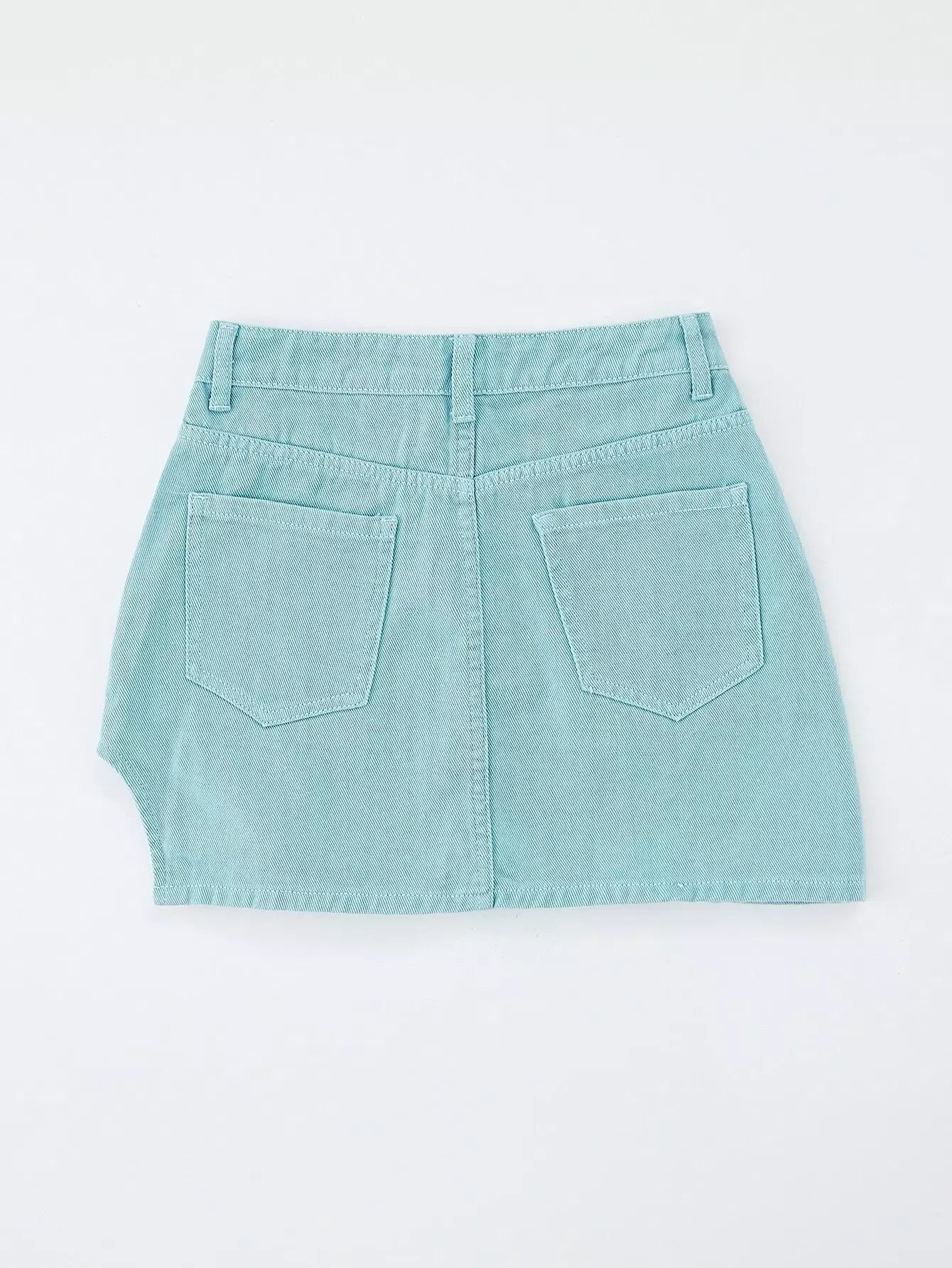 Asymmetrical Hem Slant Pockets Denim Skirt