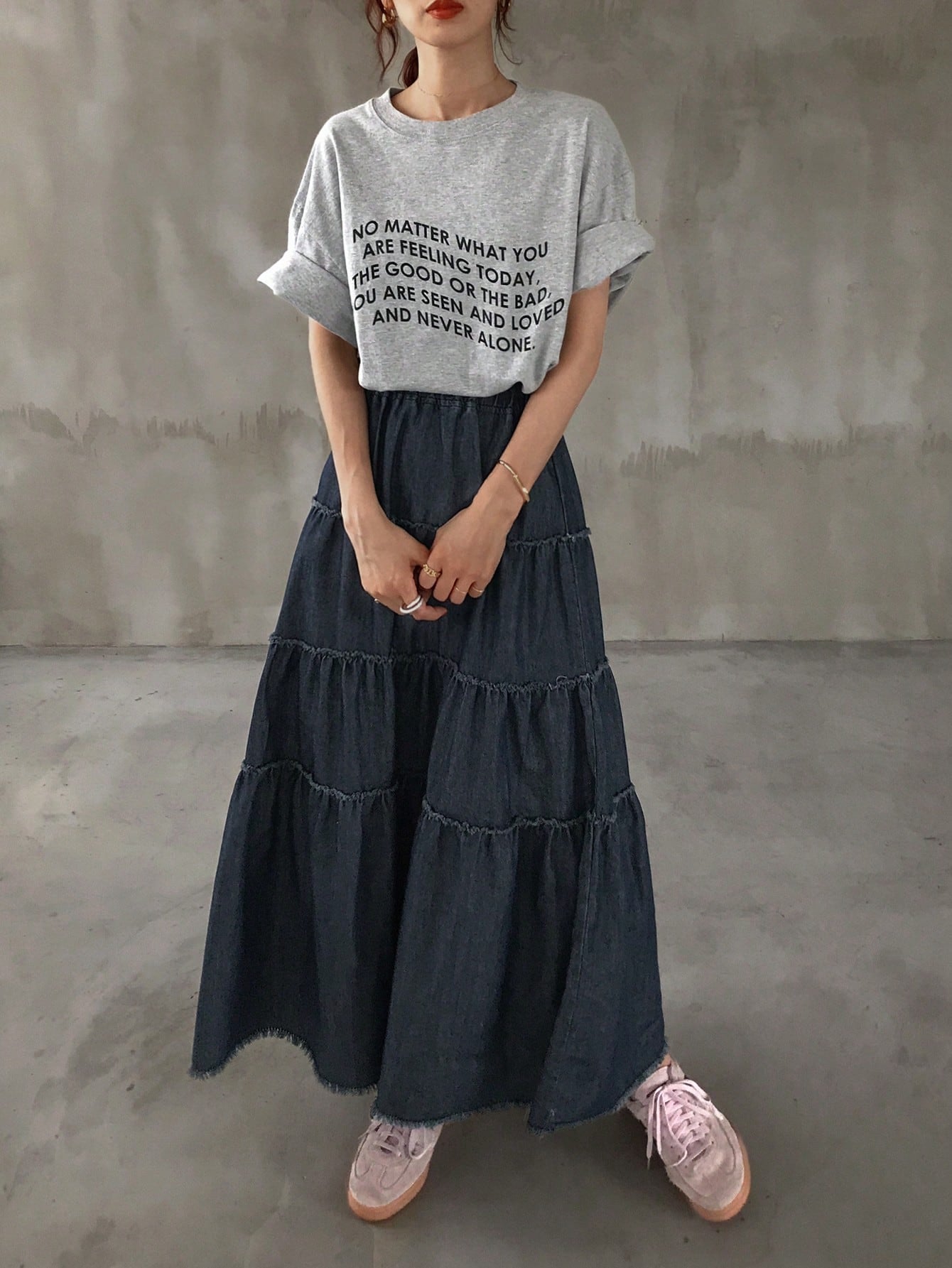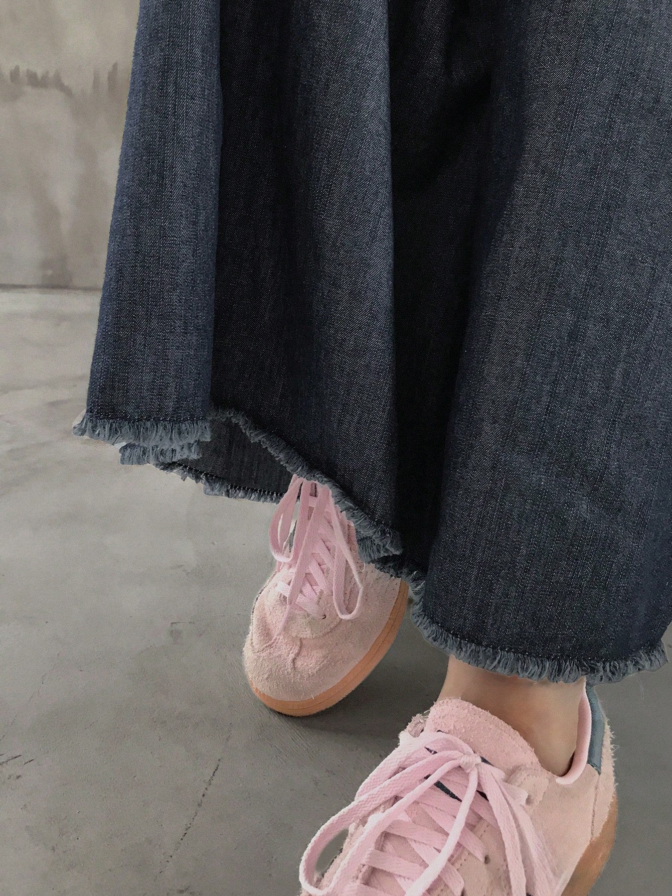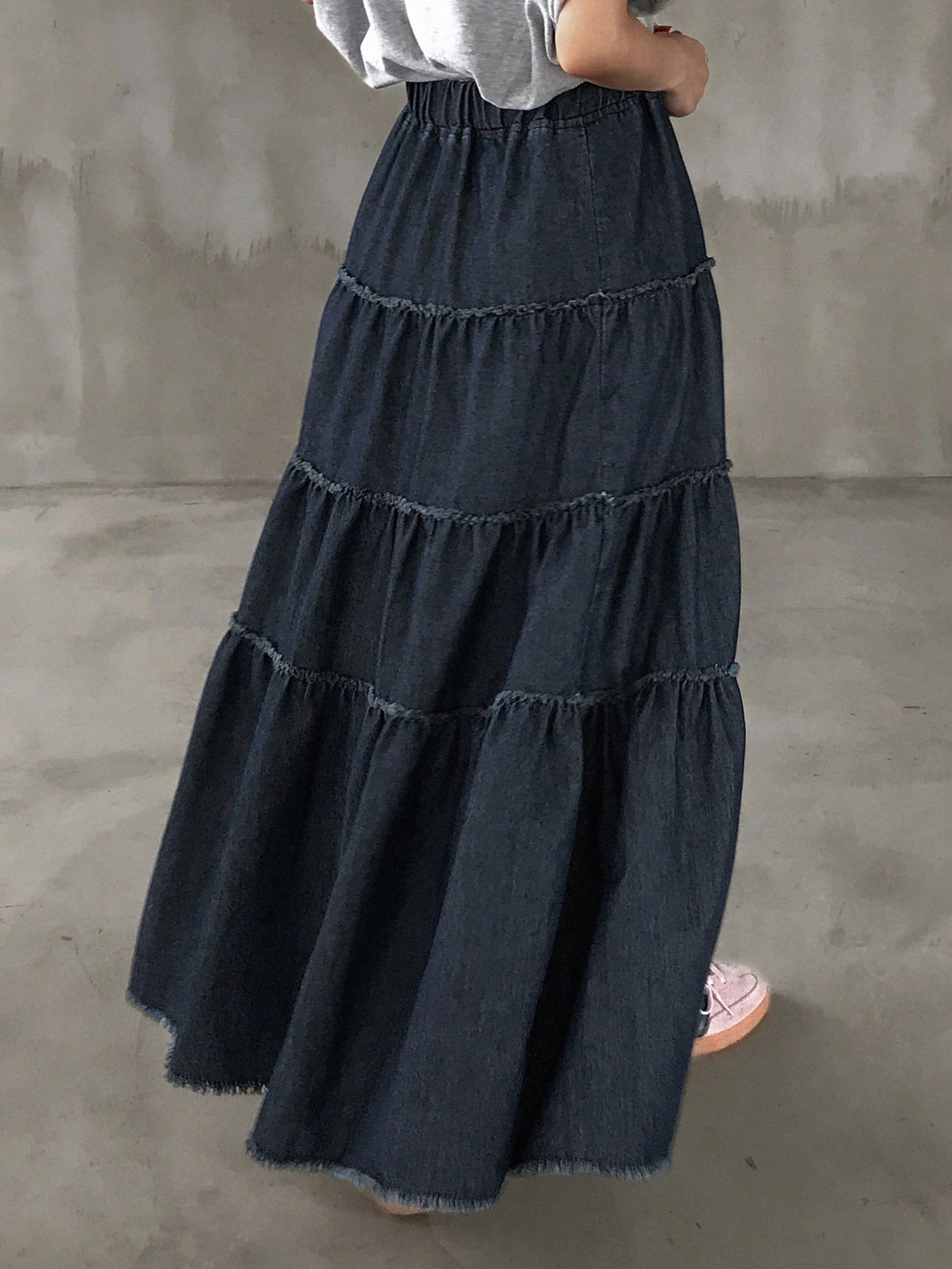 FRIFUL Women's Elastic Waist Denim A-Line Skirt With Ruffle Hem Jeans Skirt