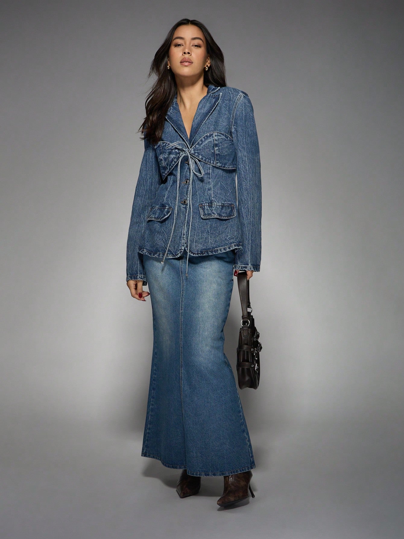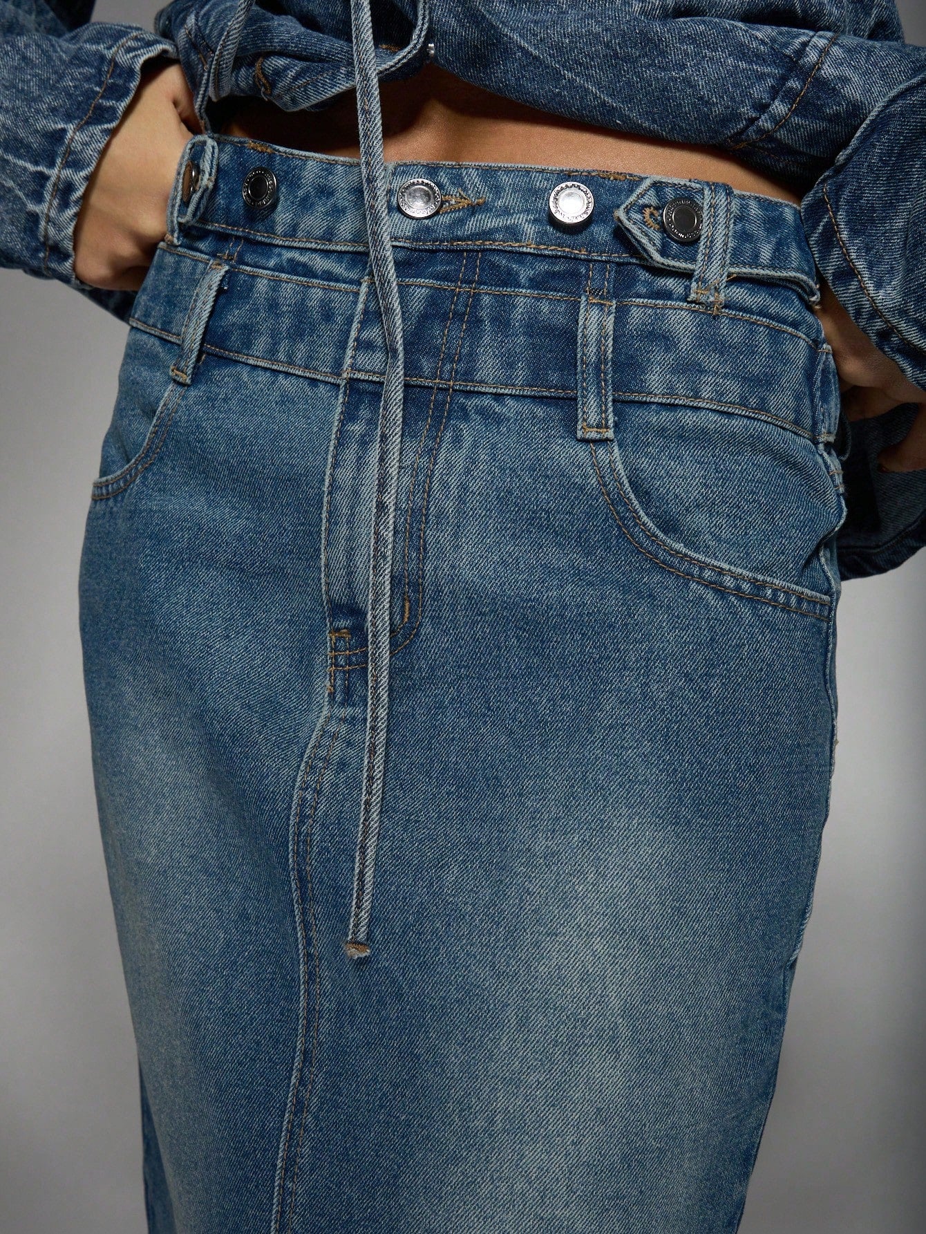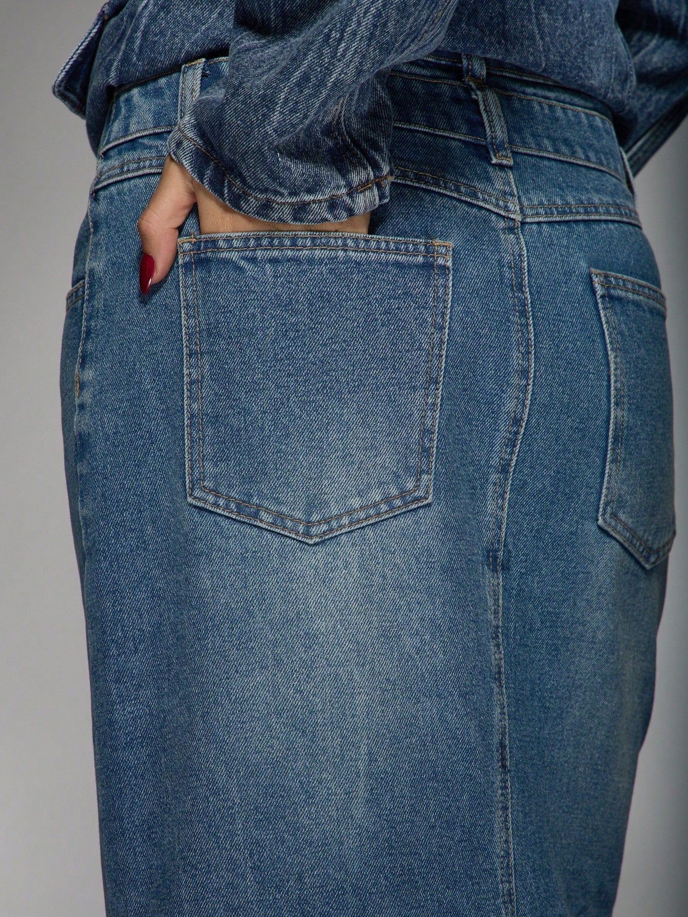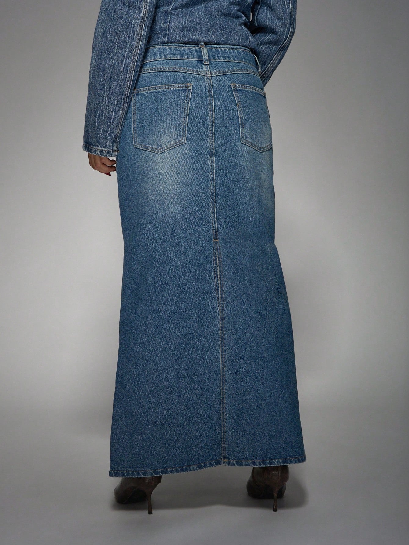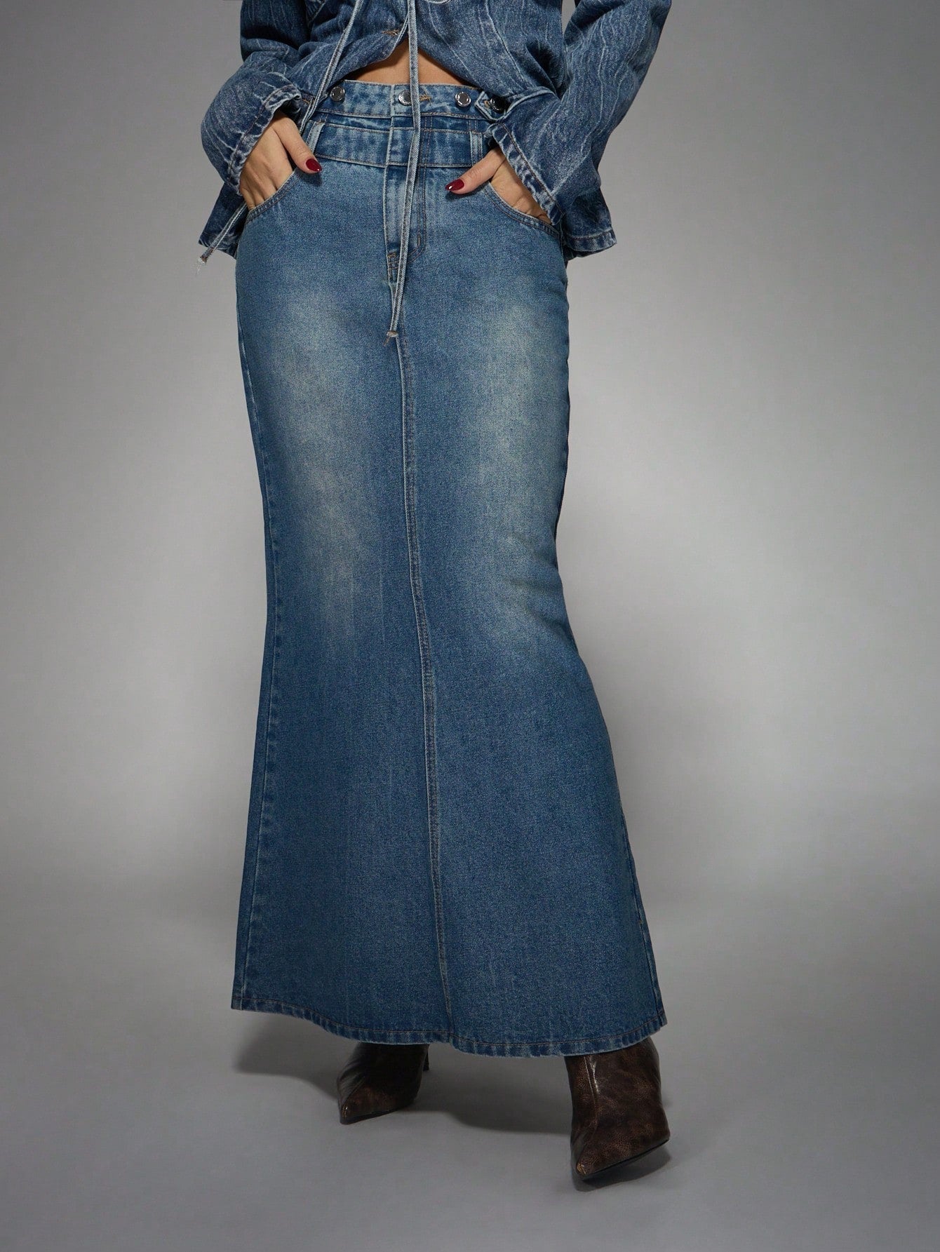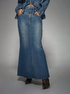 MISSGUIDED Double Waistband Denim Maxi Skirt