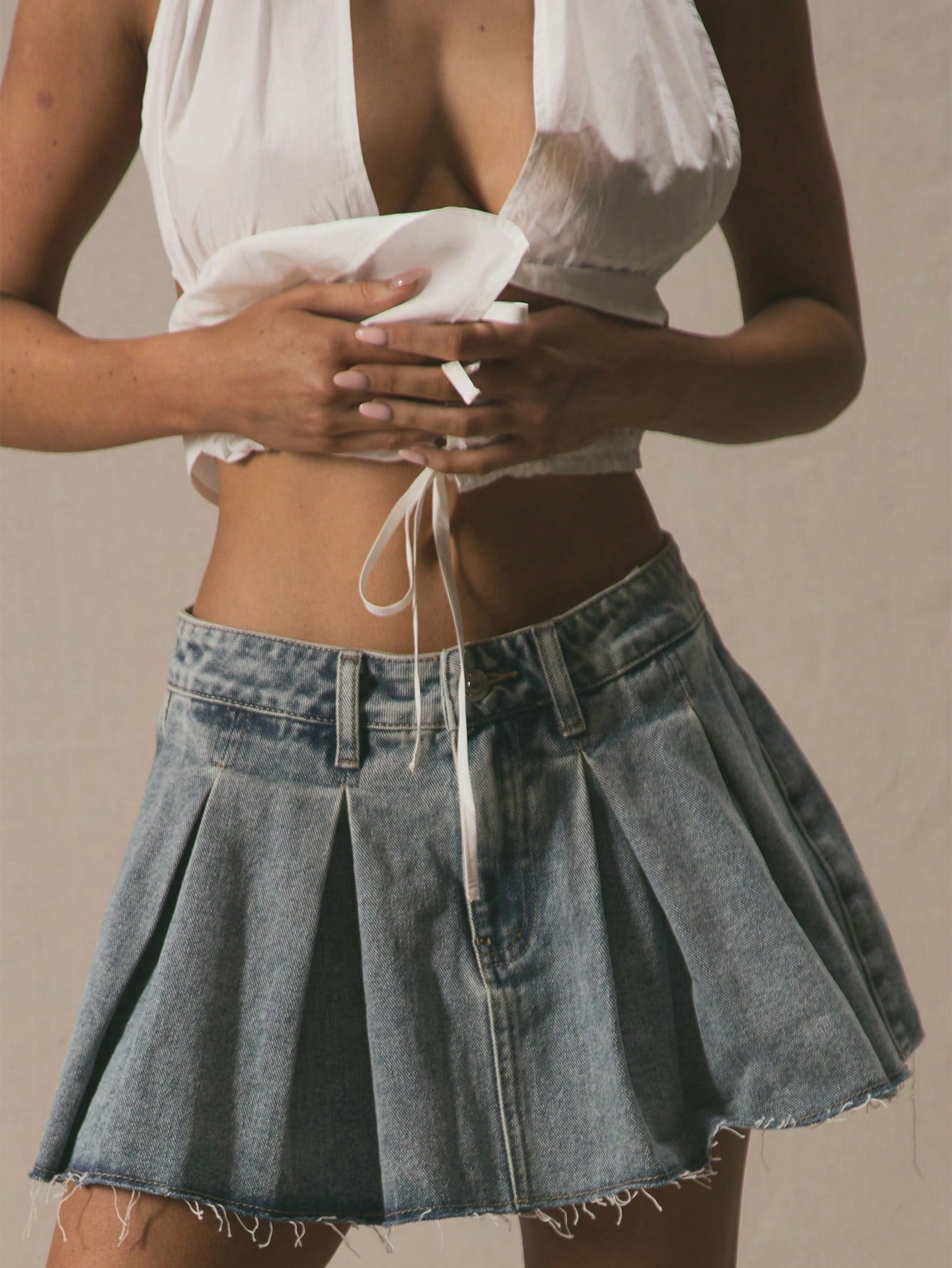 MUSERA Mid Rise Pleated Denim Mini Skirt With Belt Loops Spring Summer Cute Vacation 90's Y2k