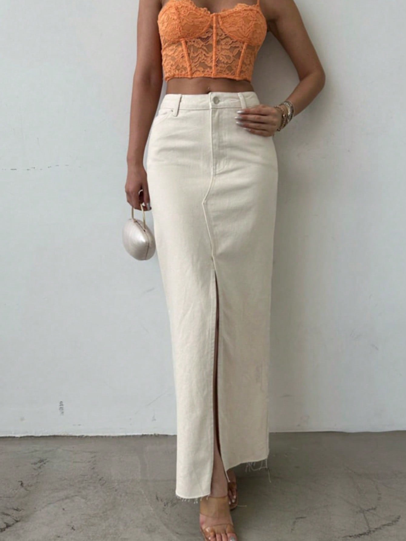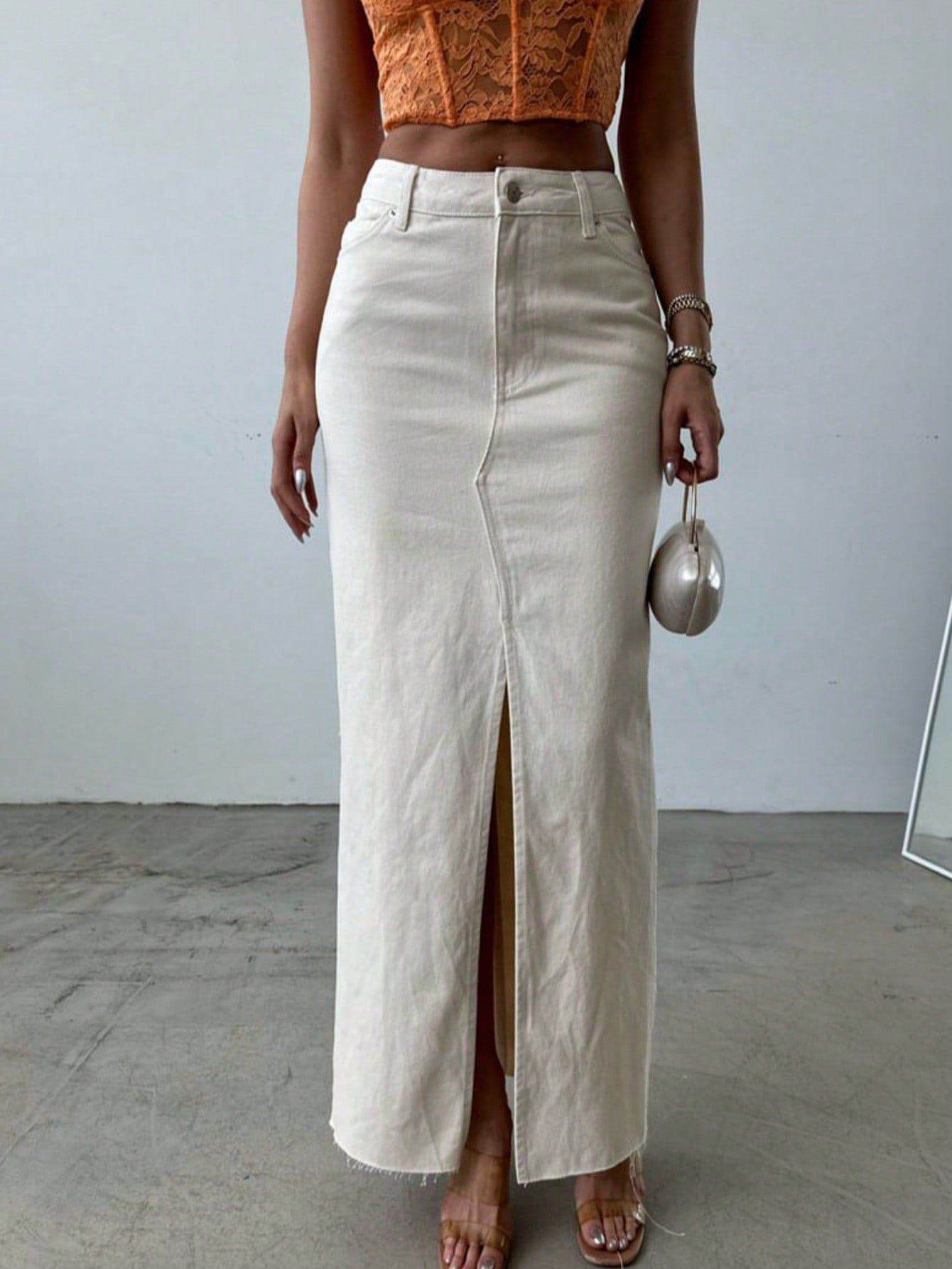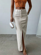 SQUALO Women's Flared Denim Skirt With Slits And Pockets In A Washed-Out Effect
