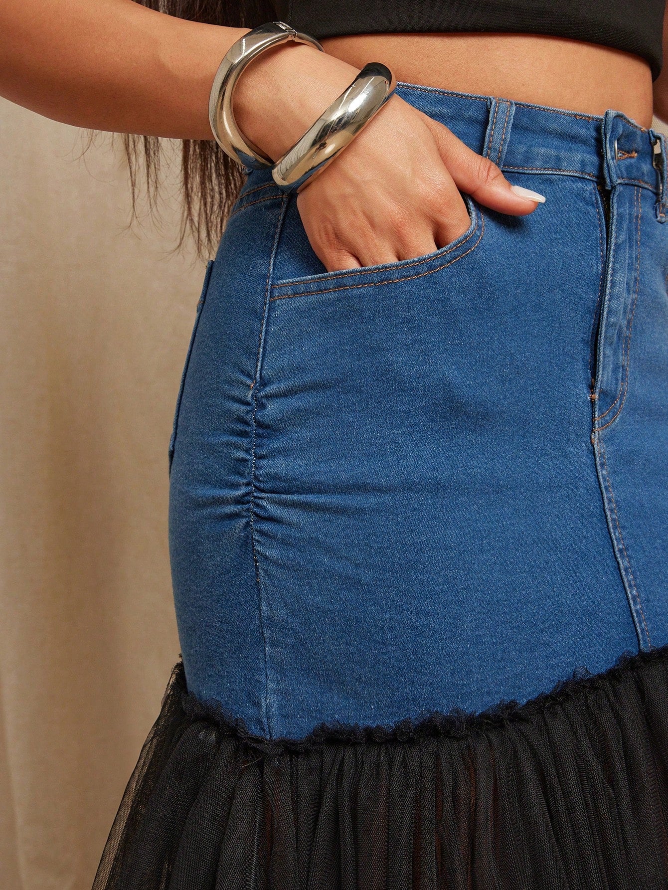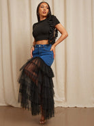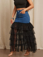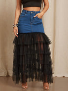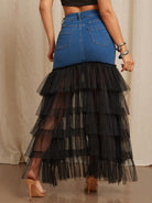 Vixey Boho Layered Tulle Ruffle Maxi Jean Skirt, Western Wear Women, Cowgirl Outfits For Women, Western