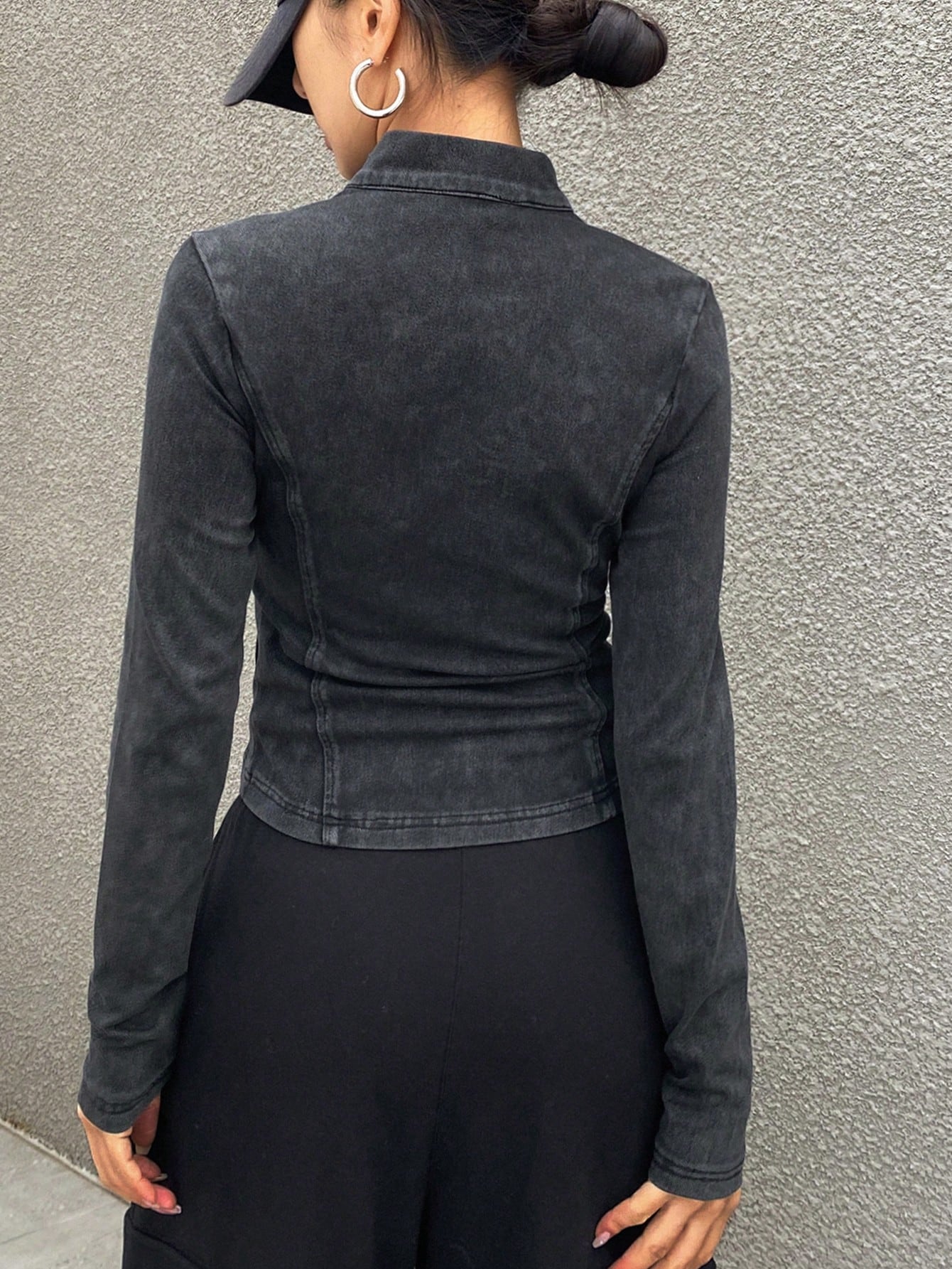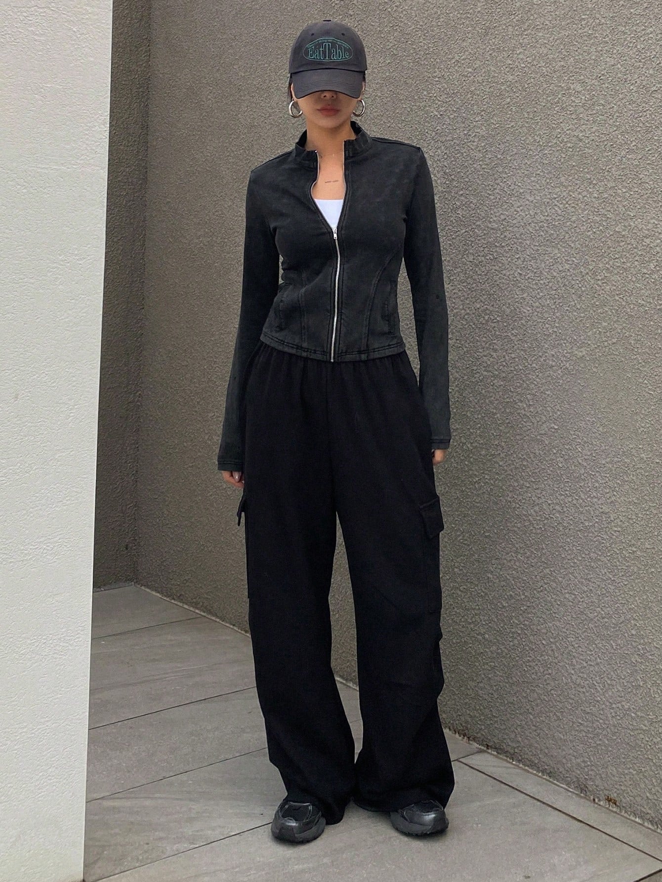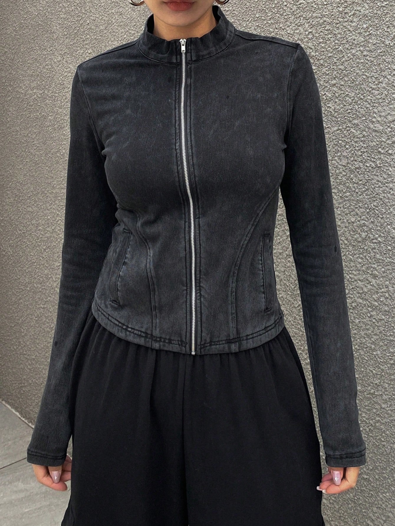 DAZY Women Stand Collar Denim Cardigan Jacket