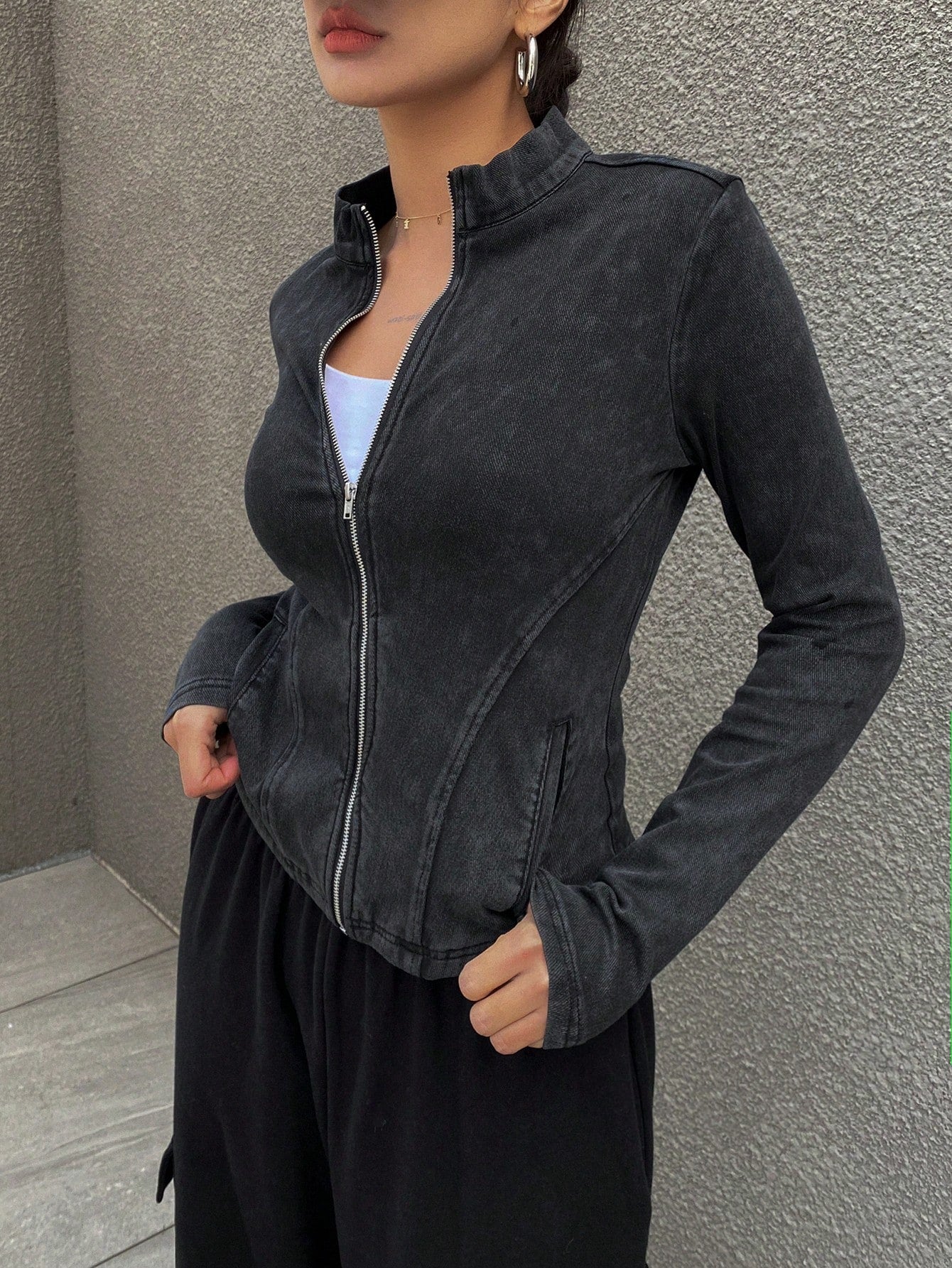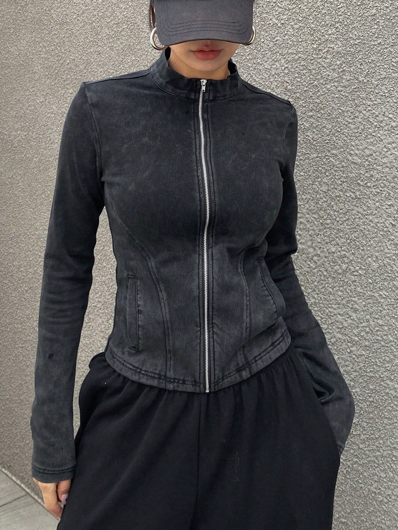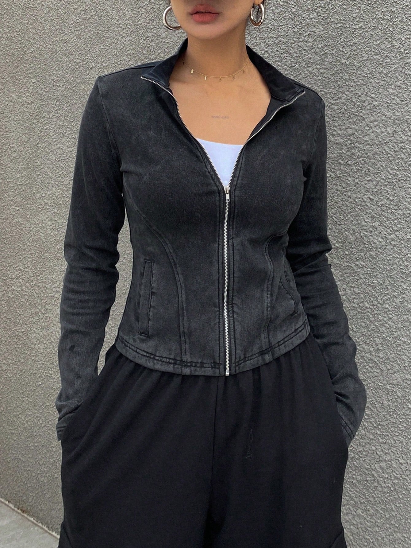 DAZY Women Stand Collar Denim Cardigan Jacket