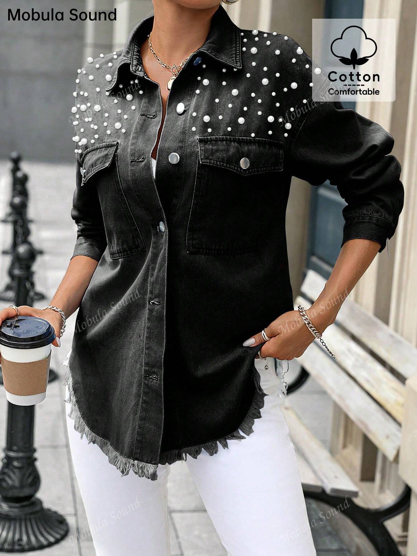 Mobula Sound# Fashion Casual Music Festival Middle East Casual Fashion Rhinestone Denim Jacket For Women,