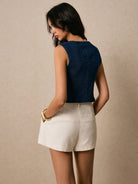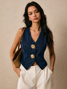 Poأ©selle Women Metal Button Decoration Denim Tops