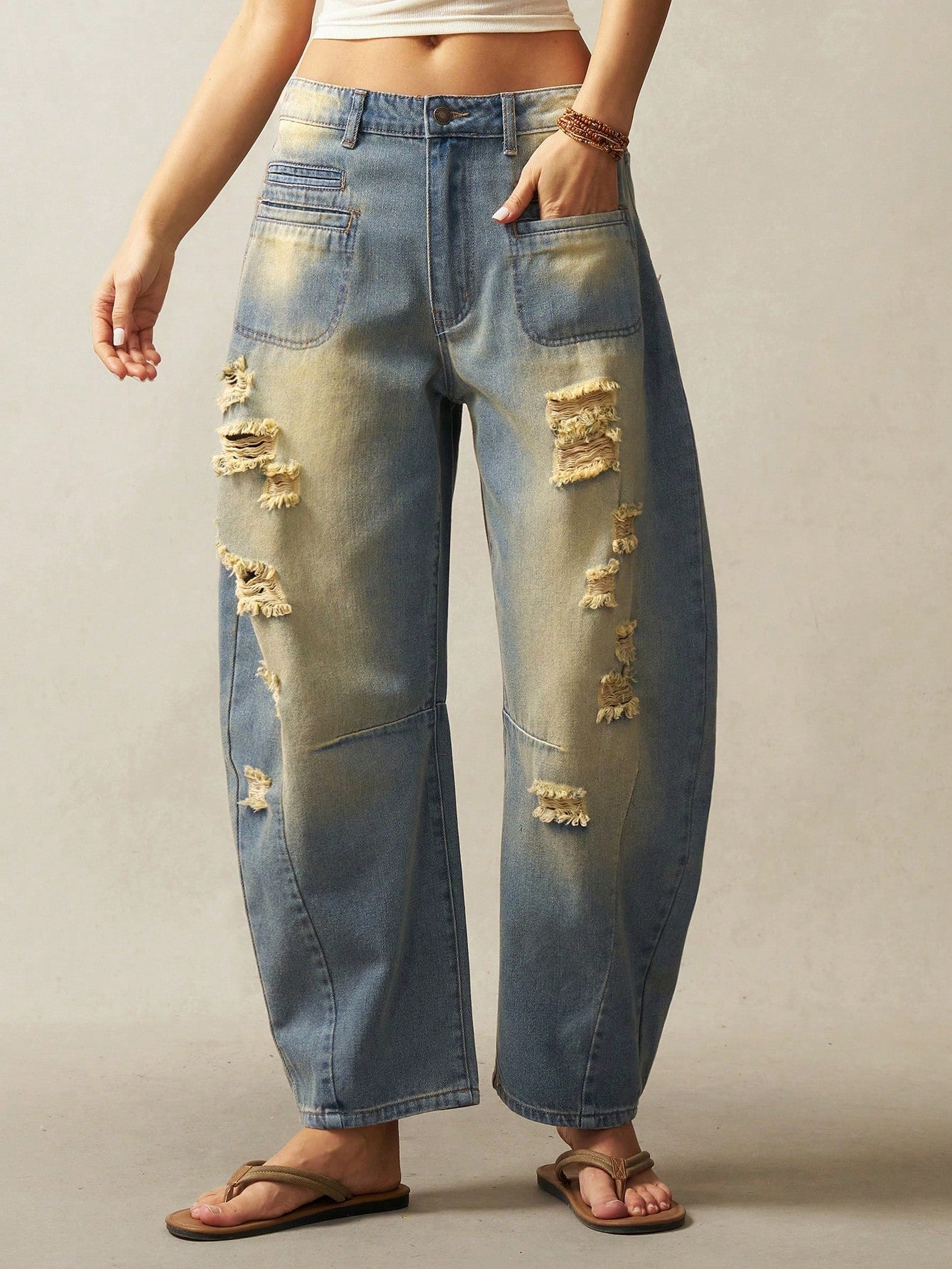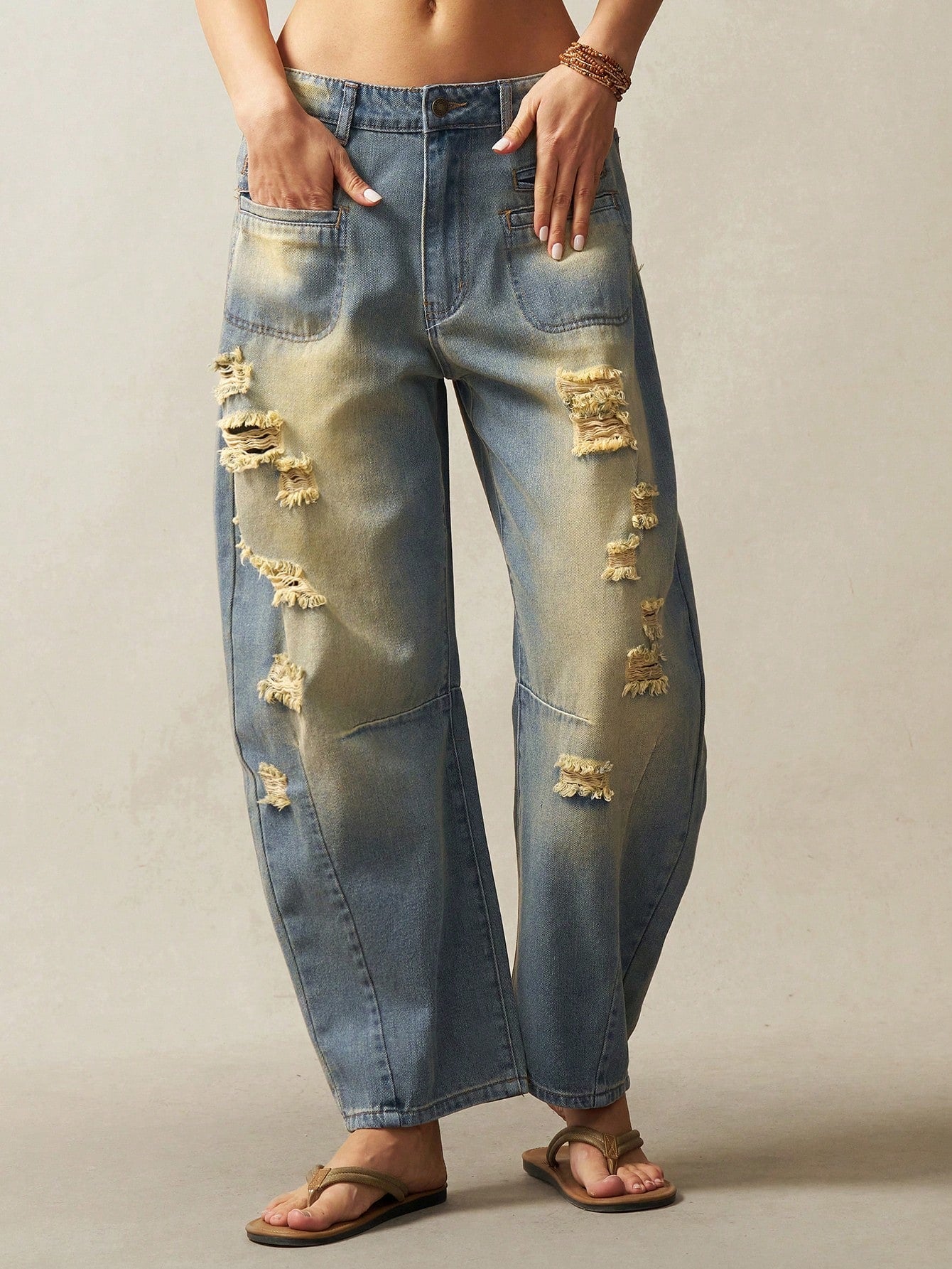 women Bohemela Boho Women's Loose Distressed Denim Jeans