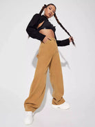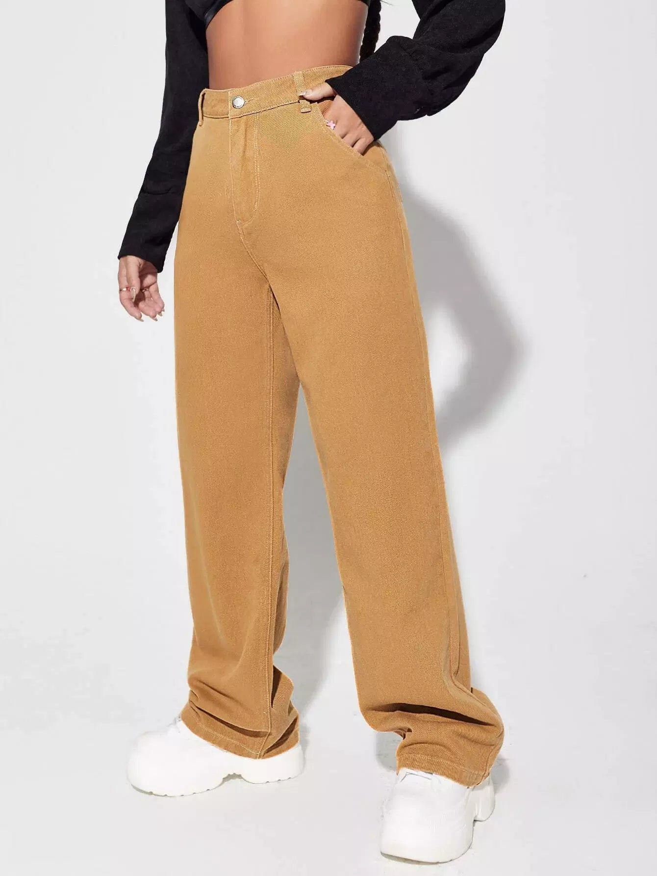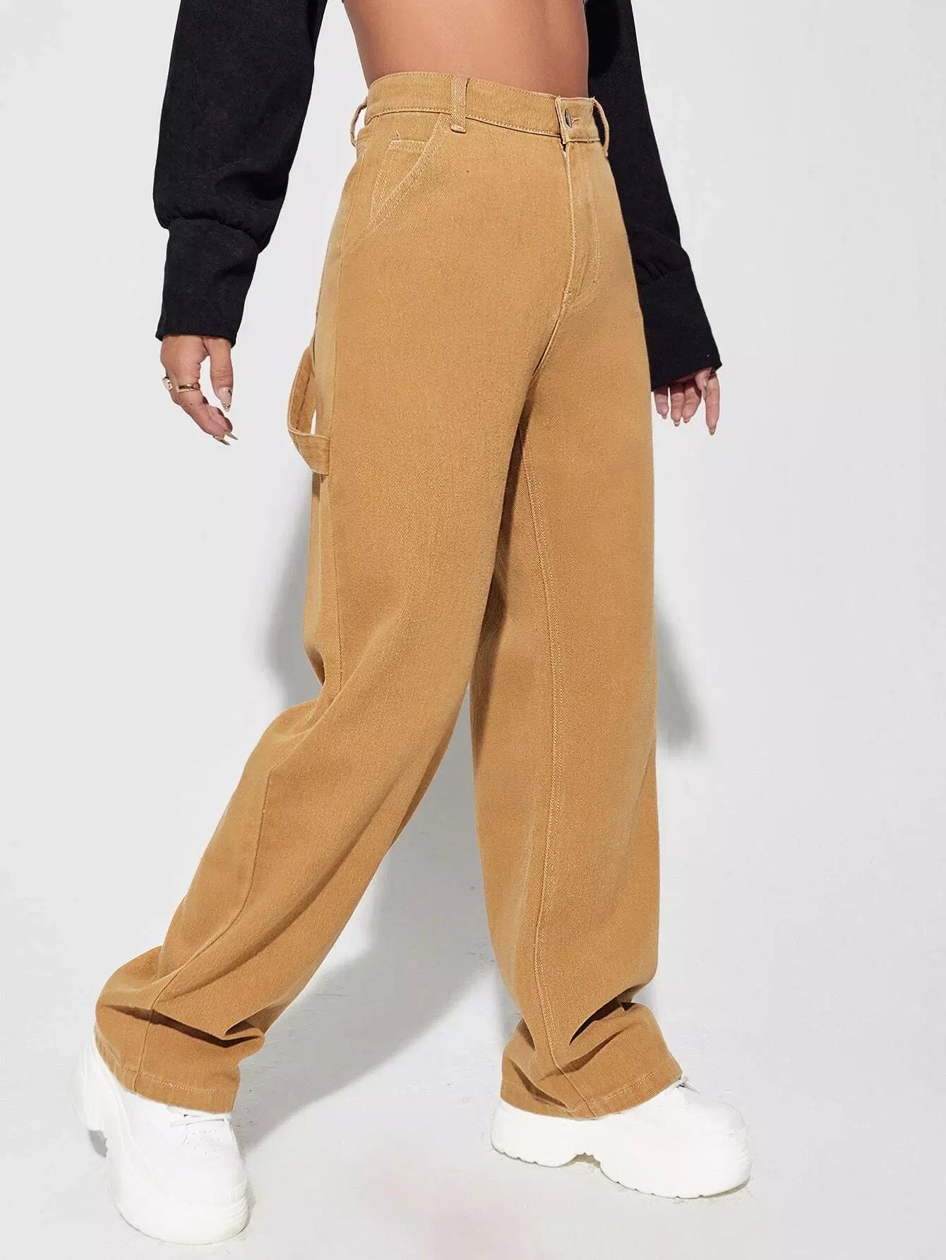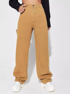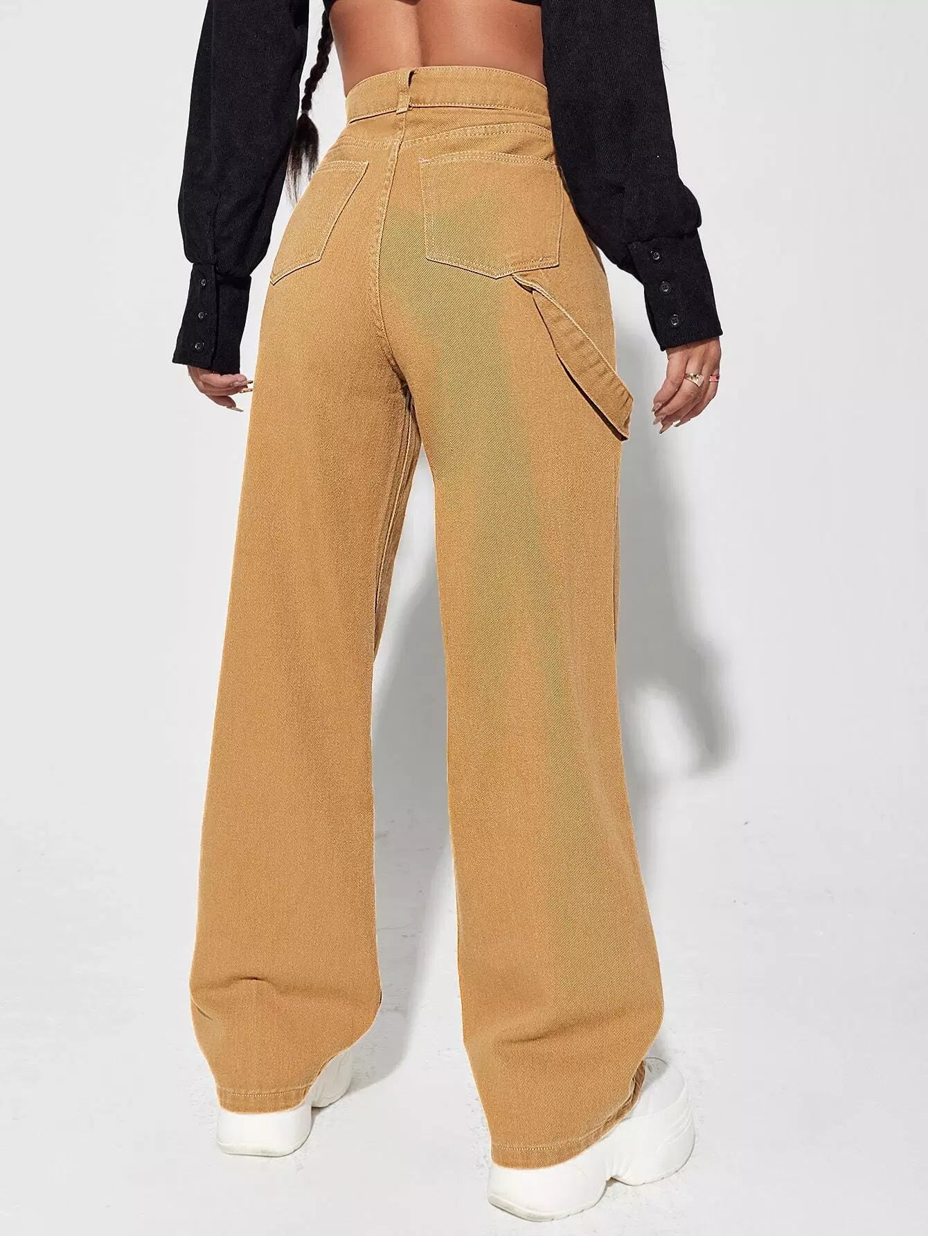 Contrast Stitch Slant Pocket Wide Leg Jeans