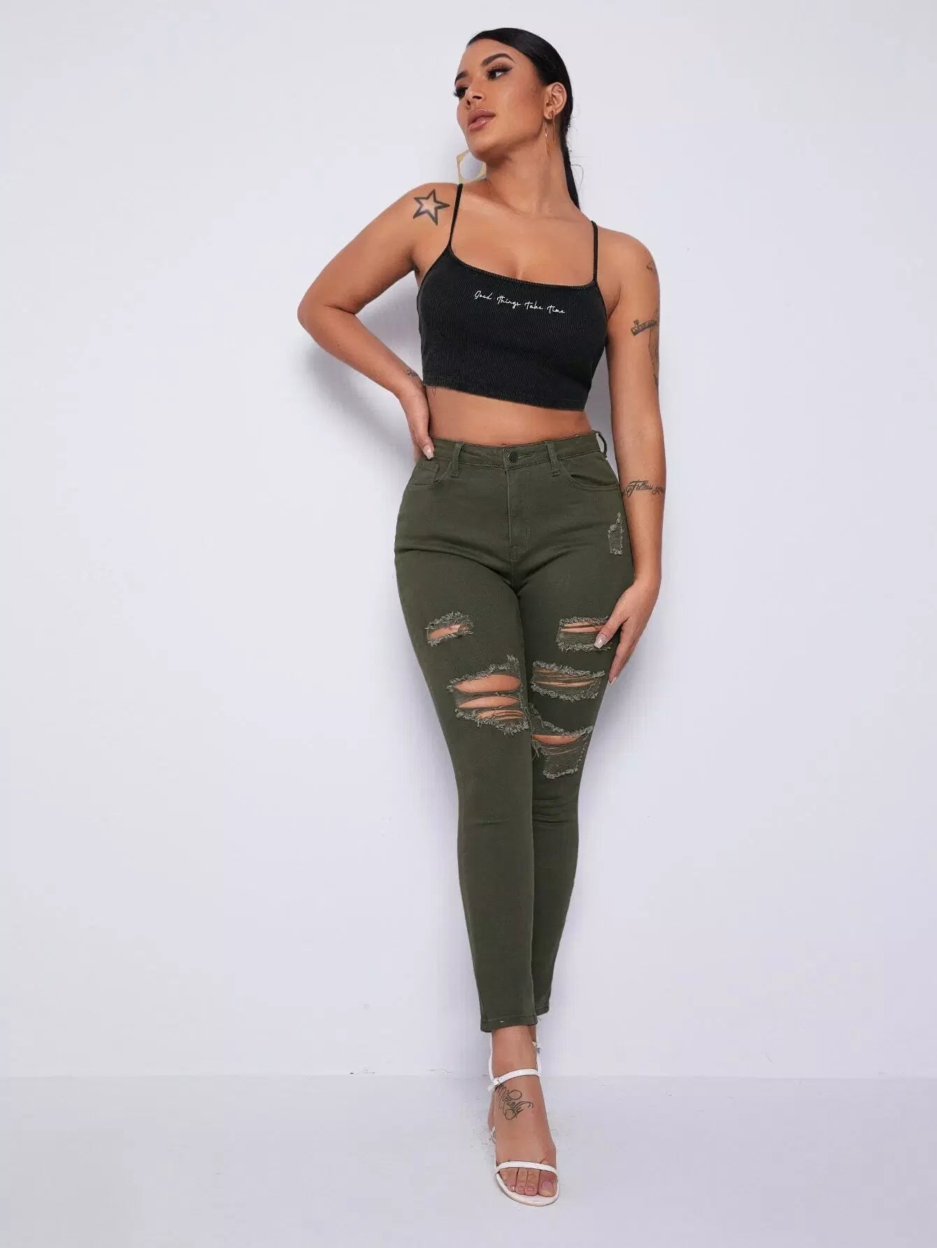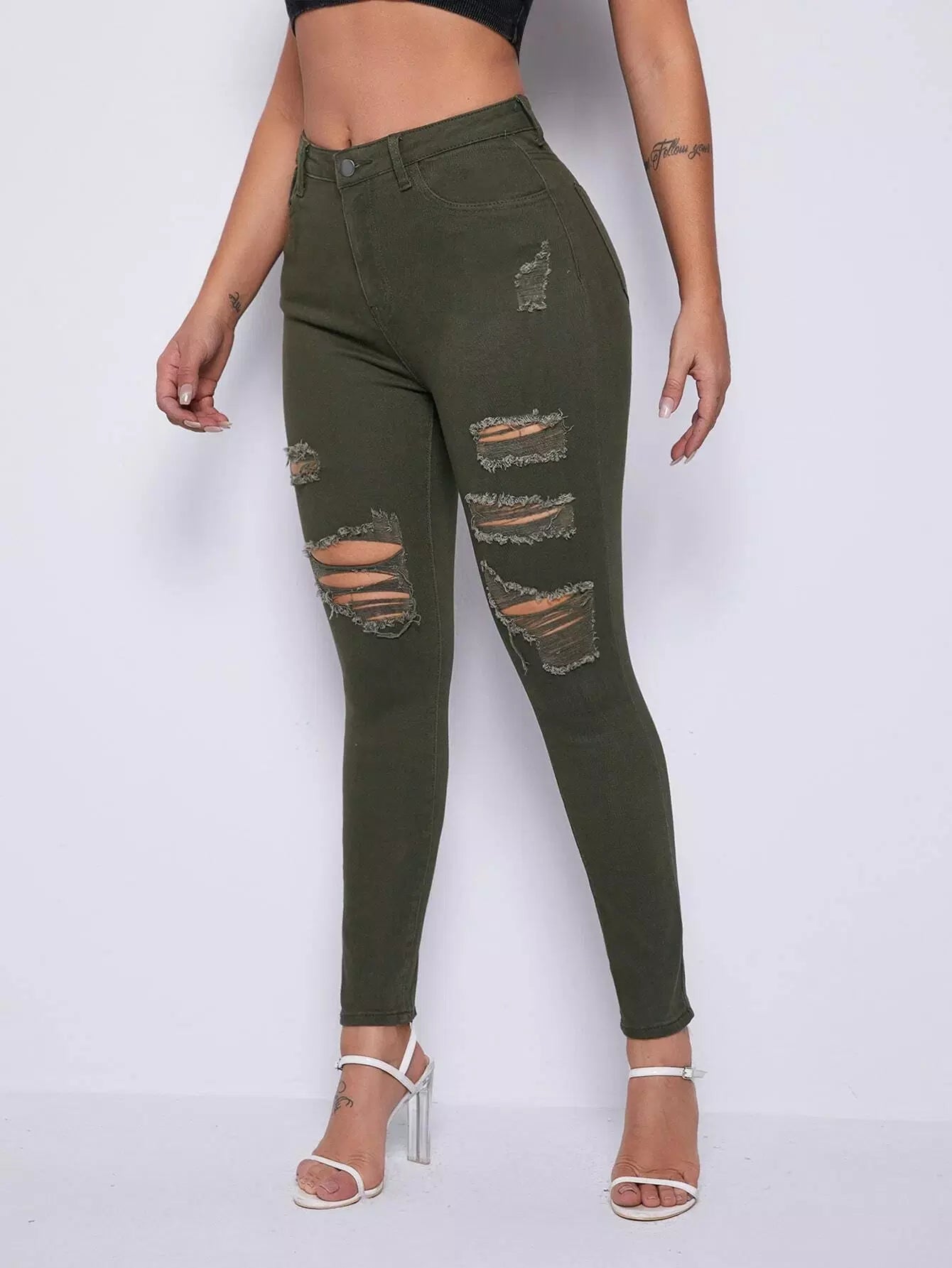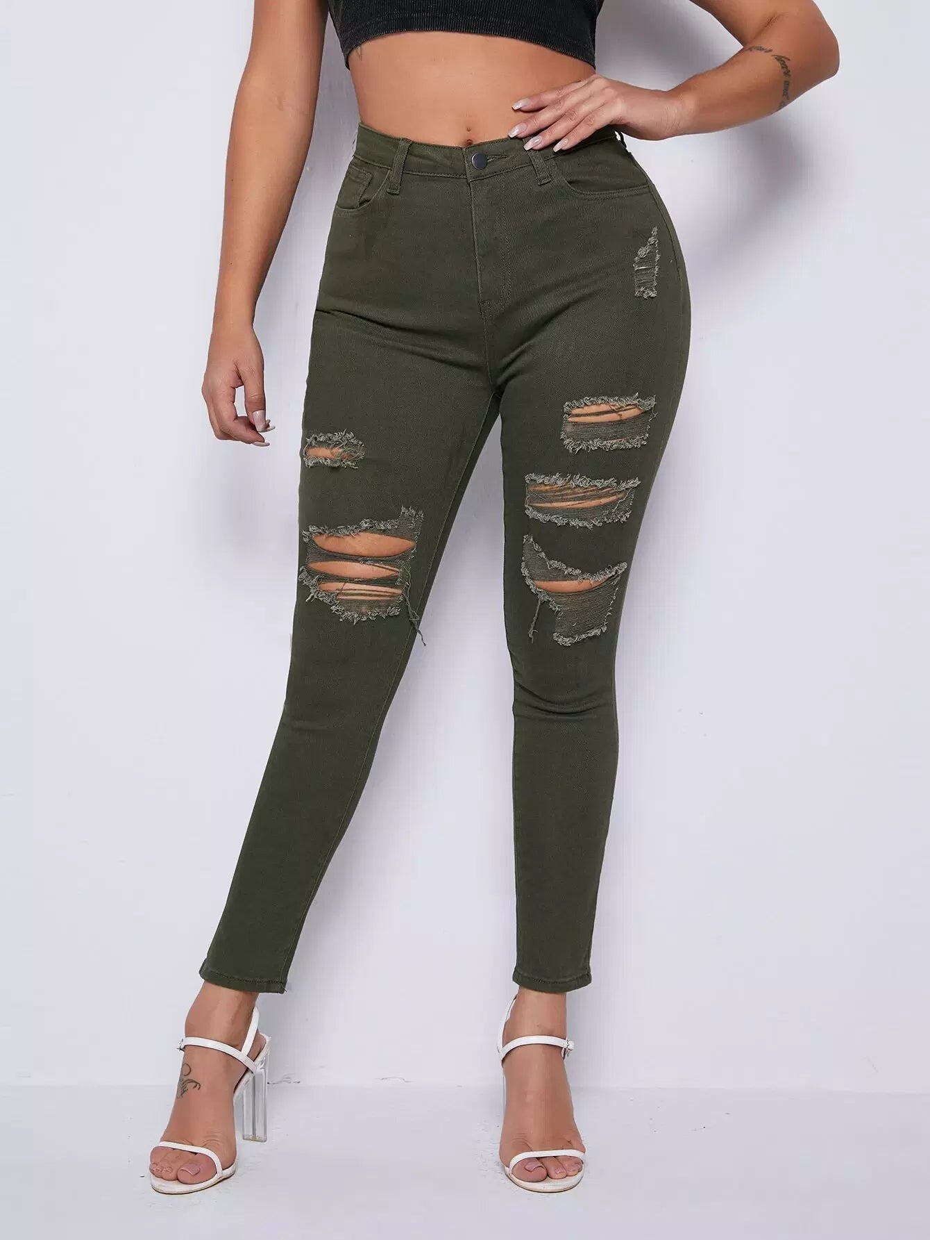 Curvy High Waist Ripped Skinny Jeans
