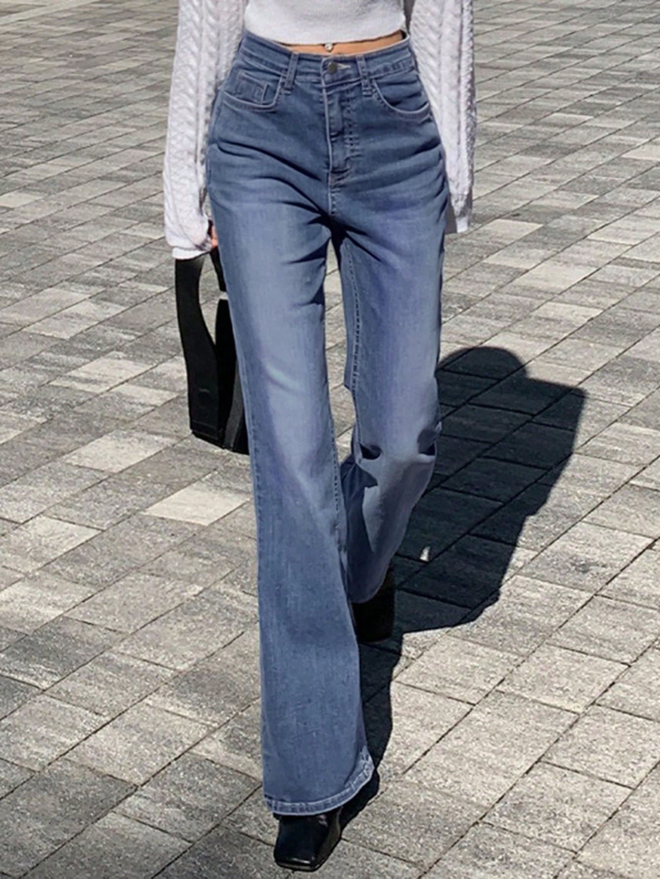 DAZY Women's Casual Wide Leg Jeans With Multiple Pockets & Front Button Closure