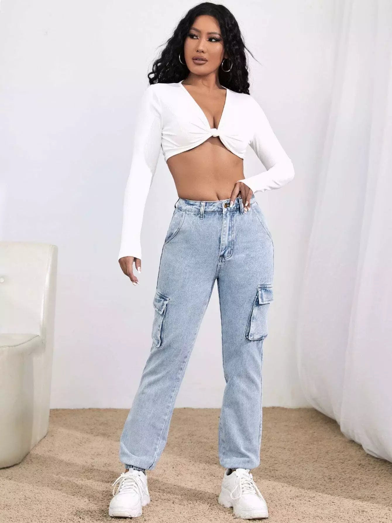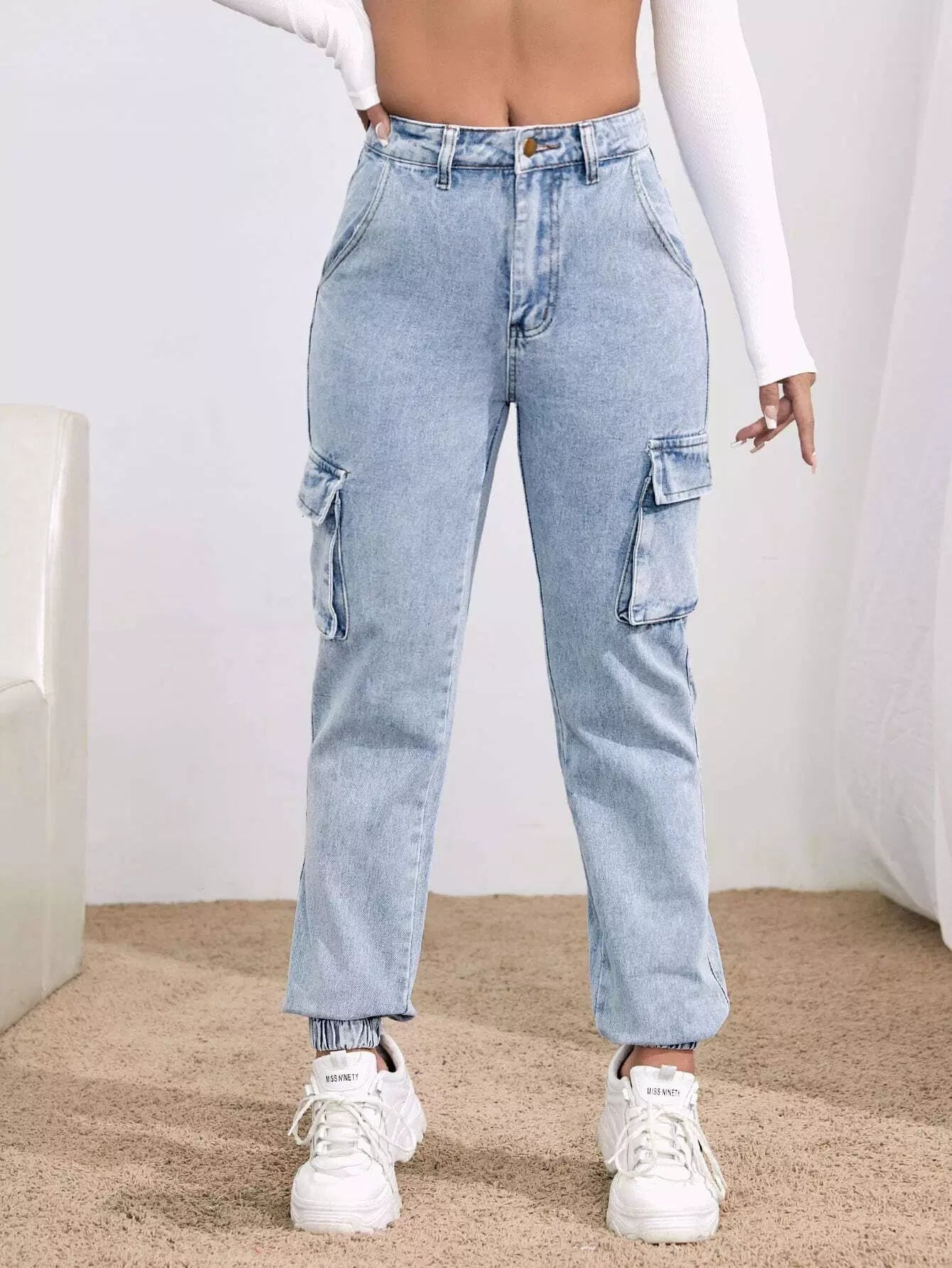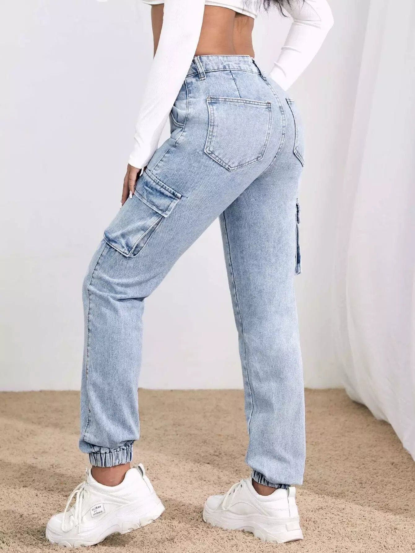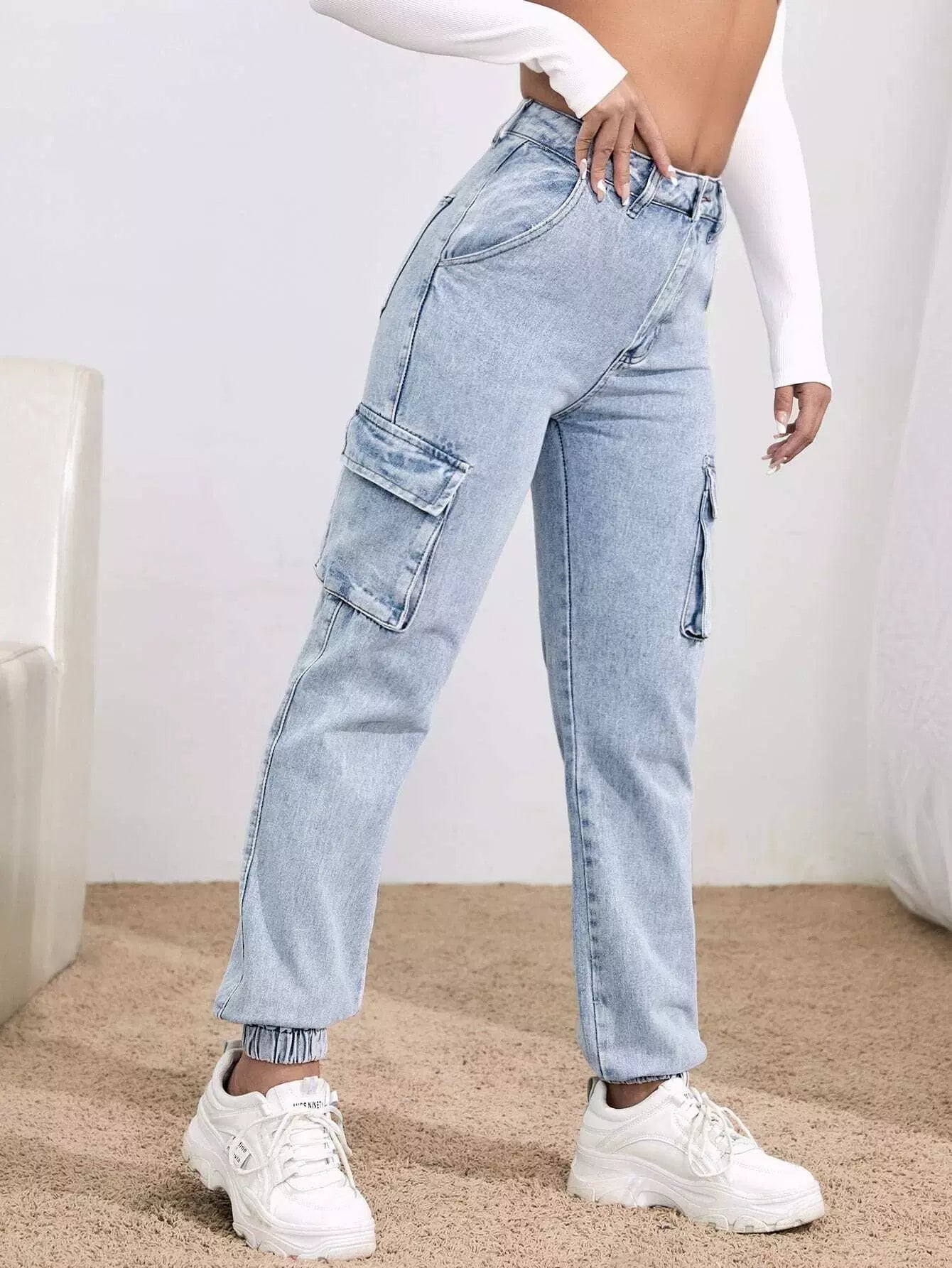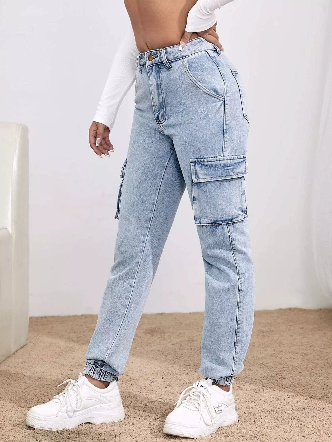 High-Rise Flap Pocket Cargo Jeans