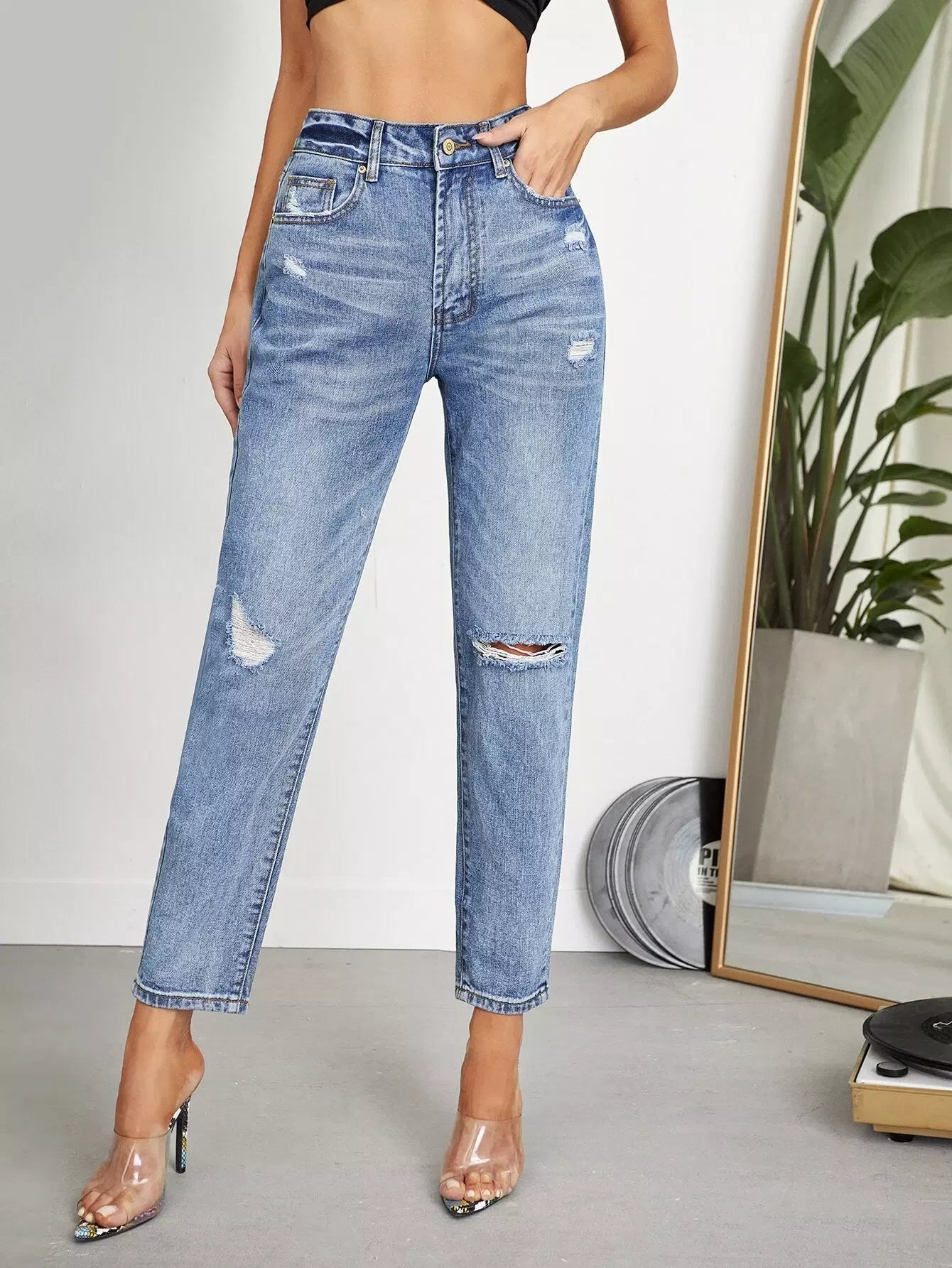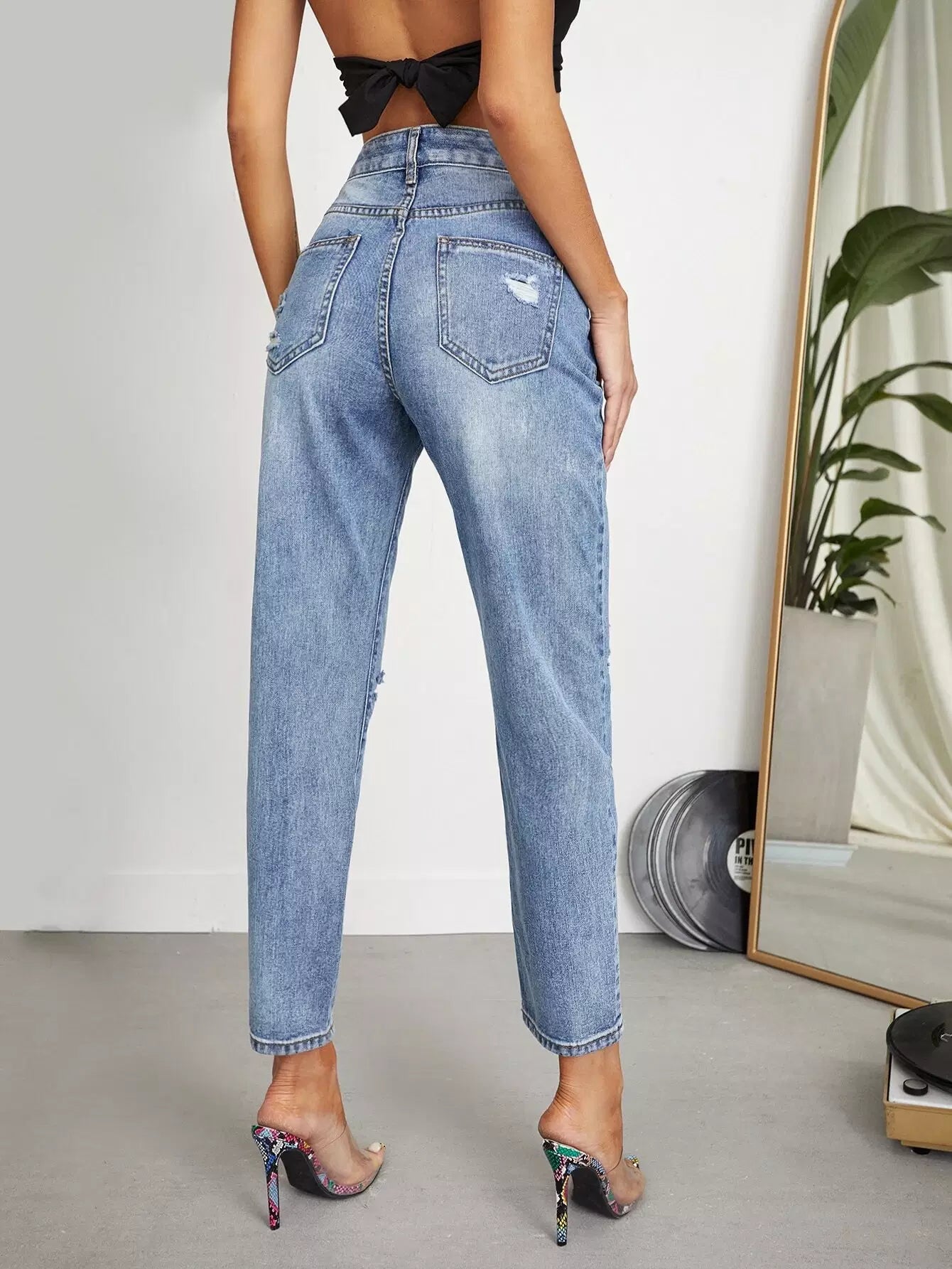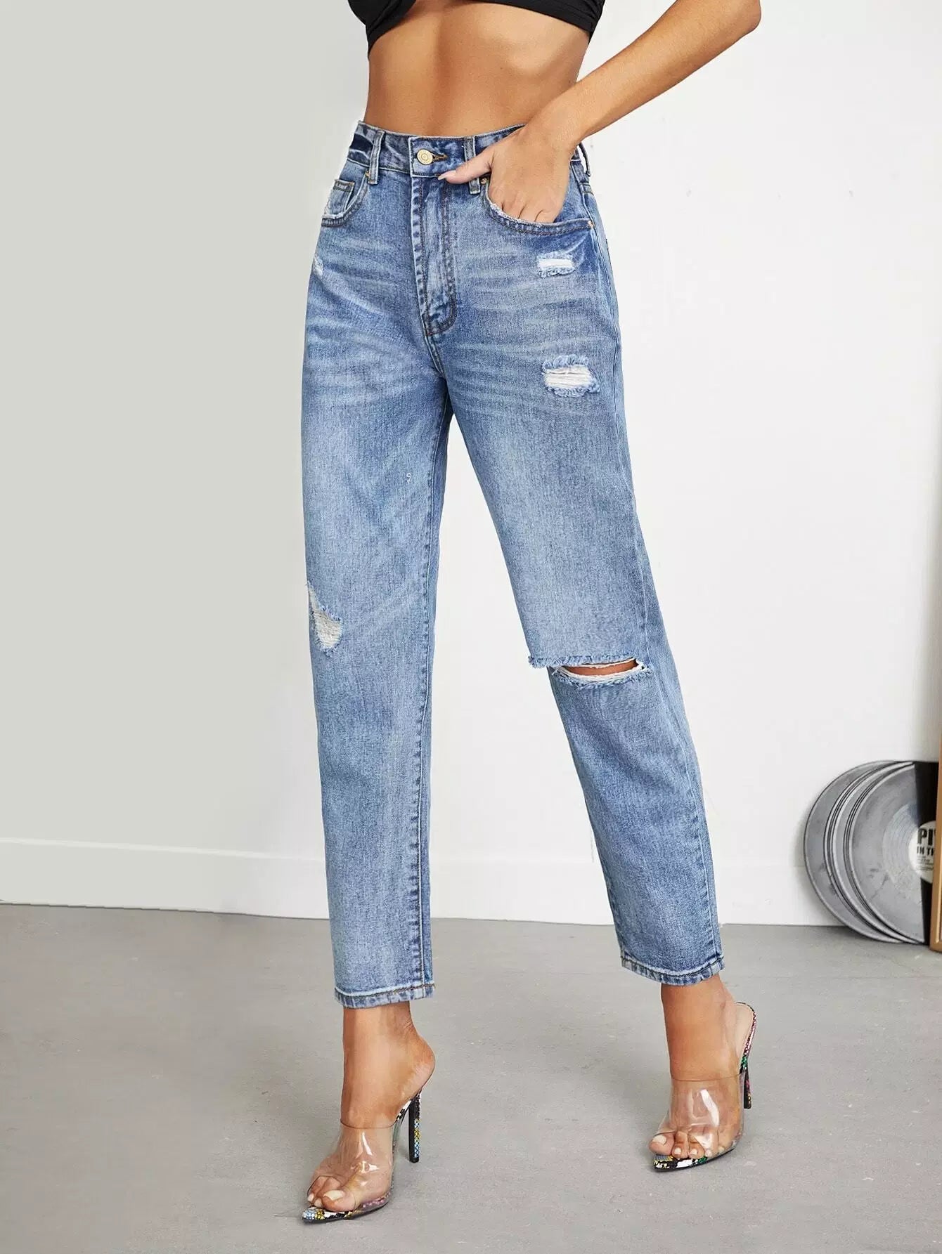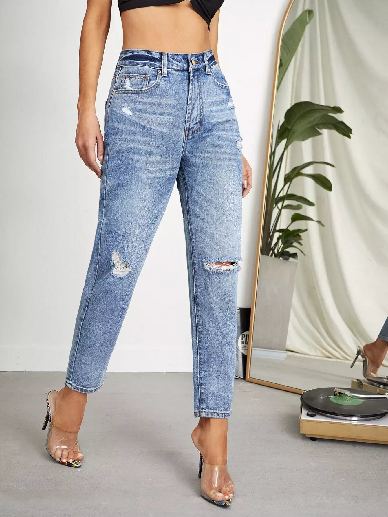 High-rise Ripped Crop Jeans