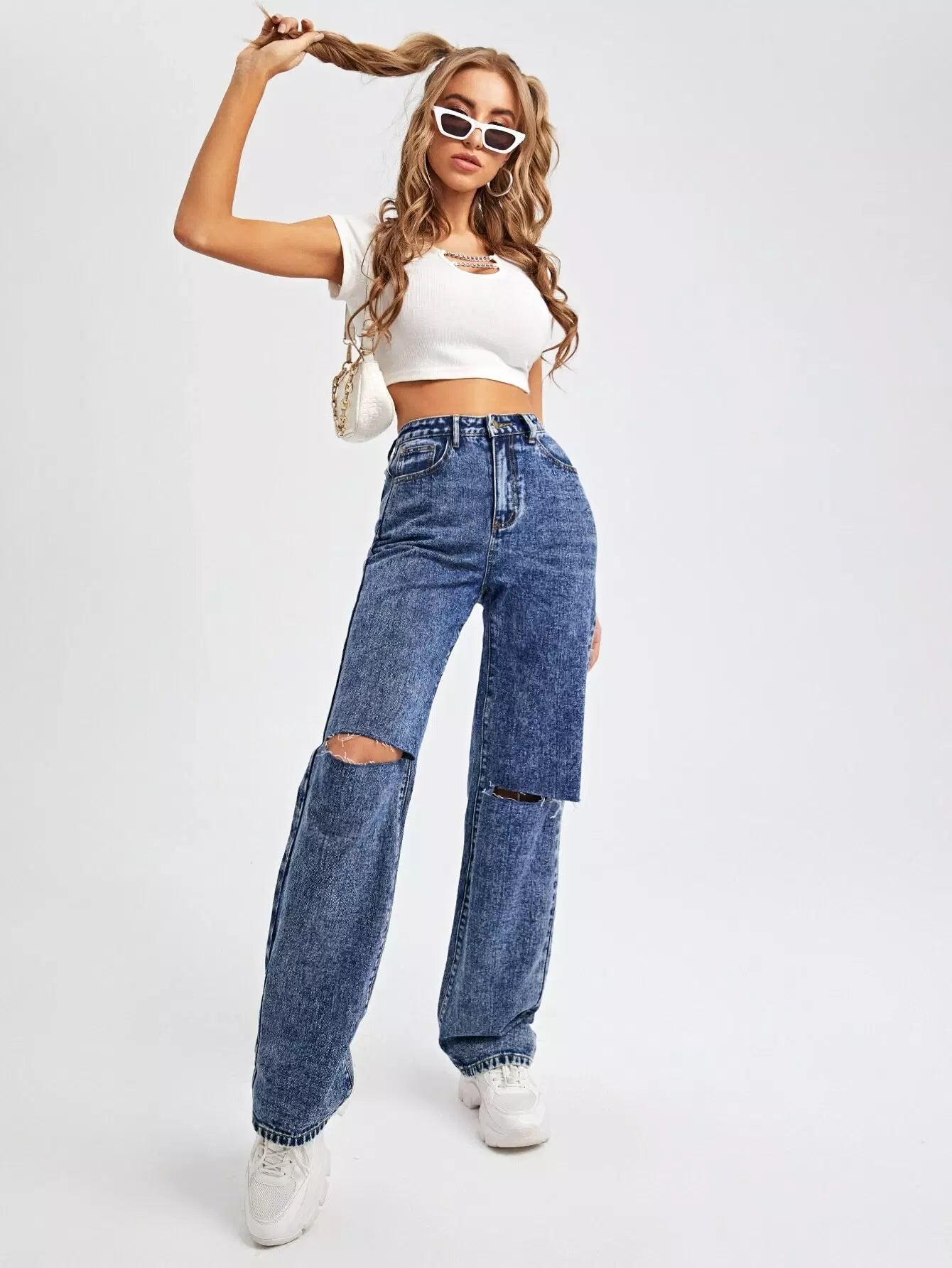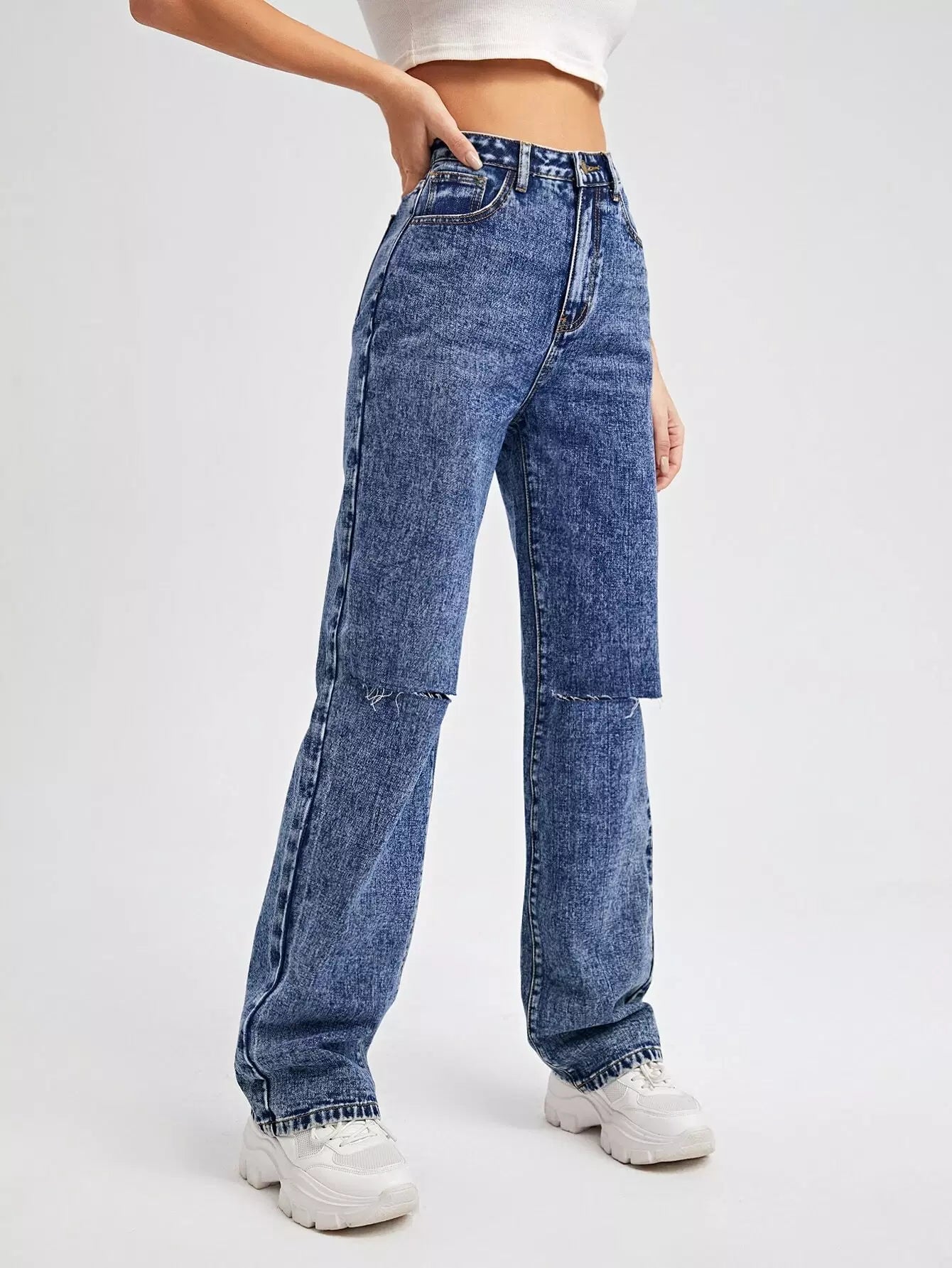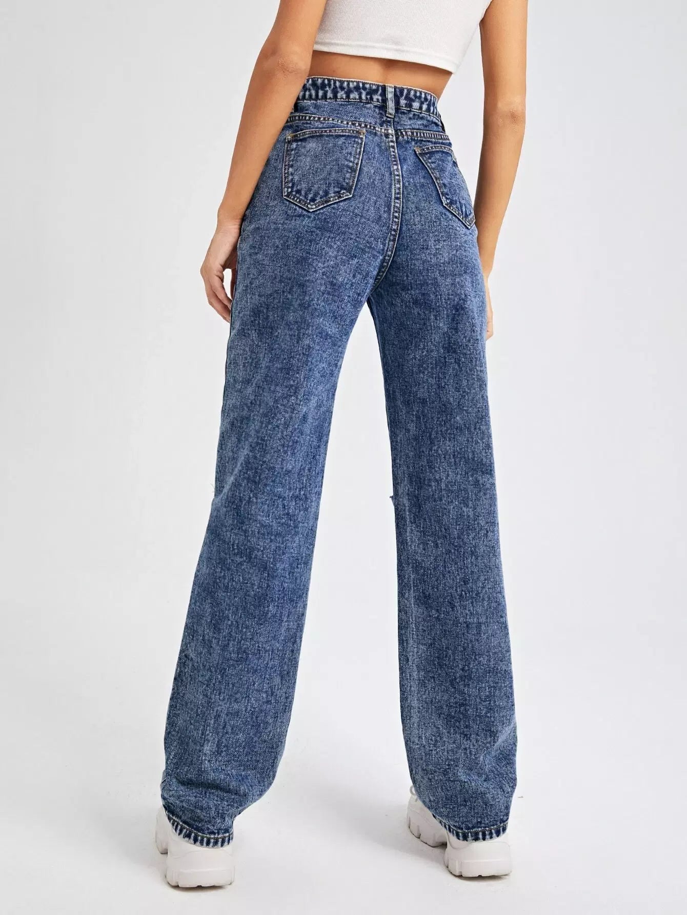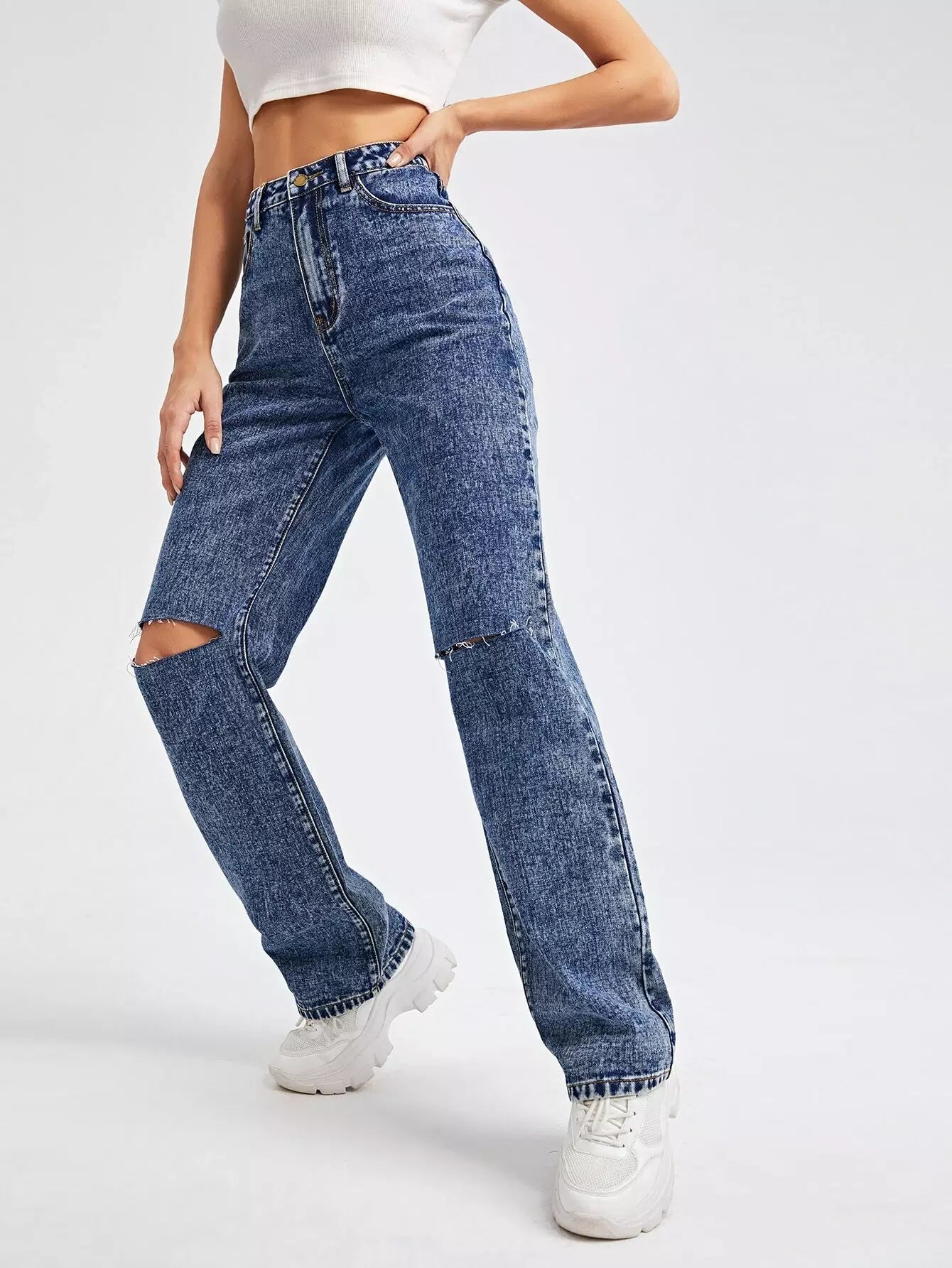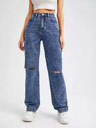 High Waist Ripped Straight Leg Jeans