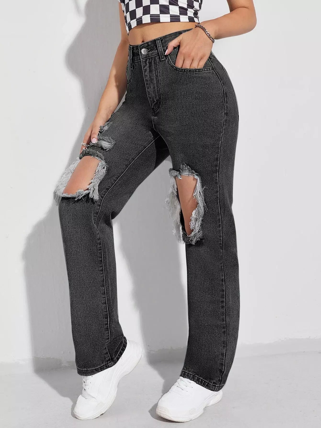 Light Wash Destroyed Ripped Boyfriend Jeans