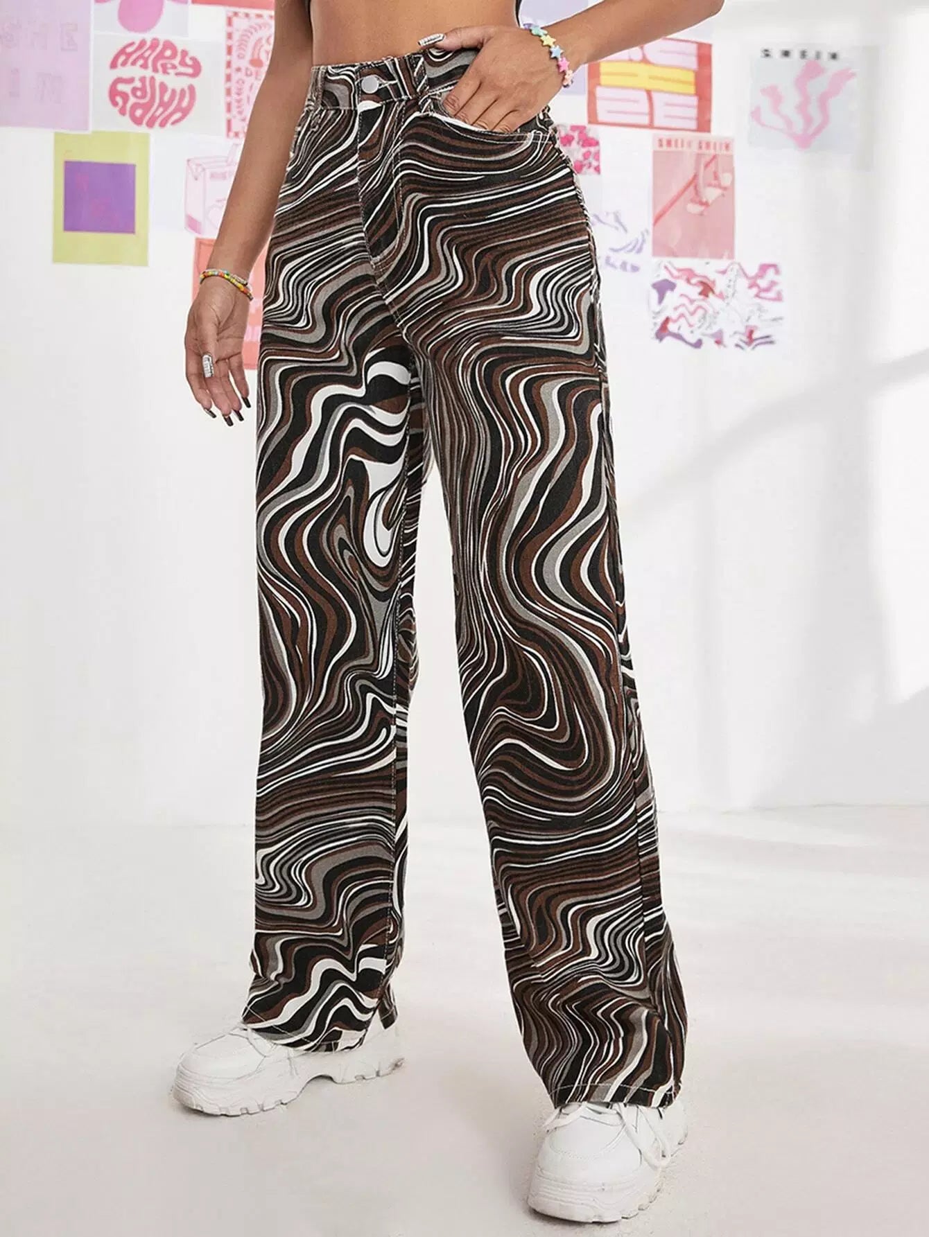 Marble Pattern Zipper Fly Jeans