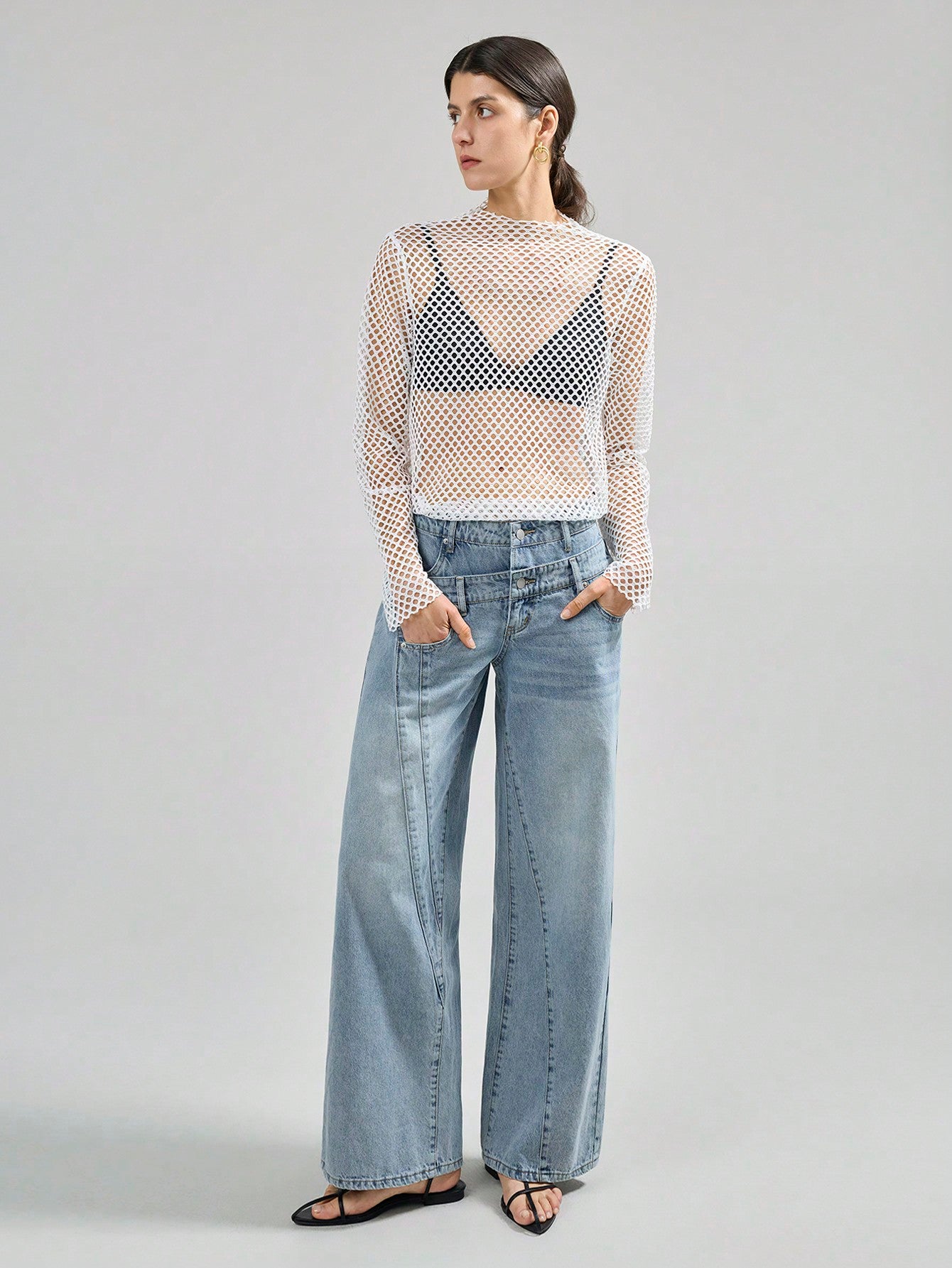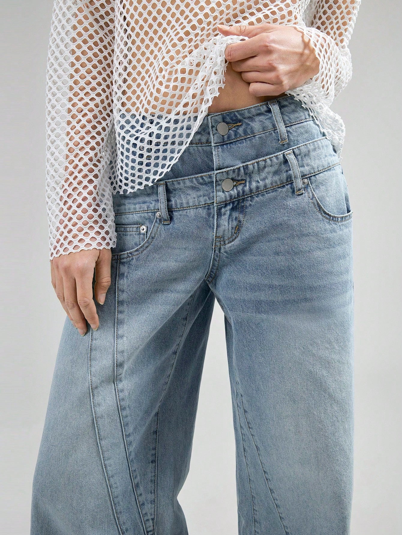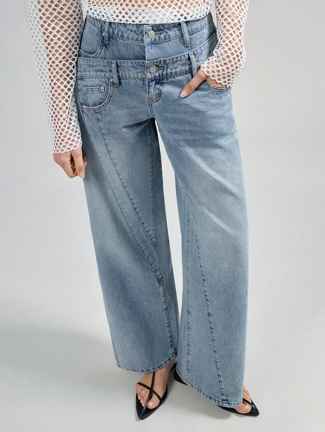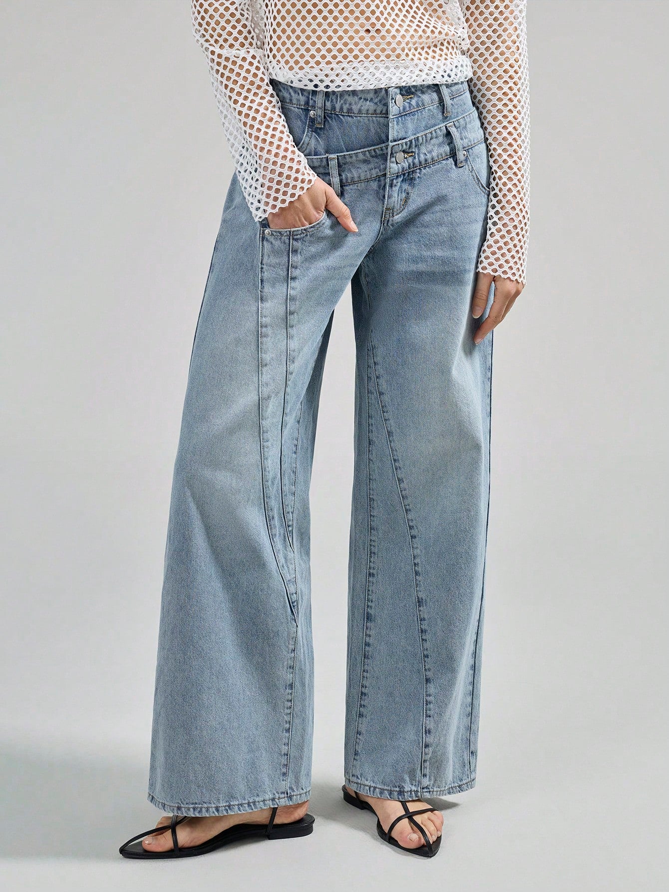 Ontre Women Fashion Asymmetric Waist Denim Jeans, Going Out