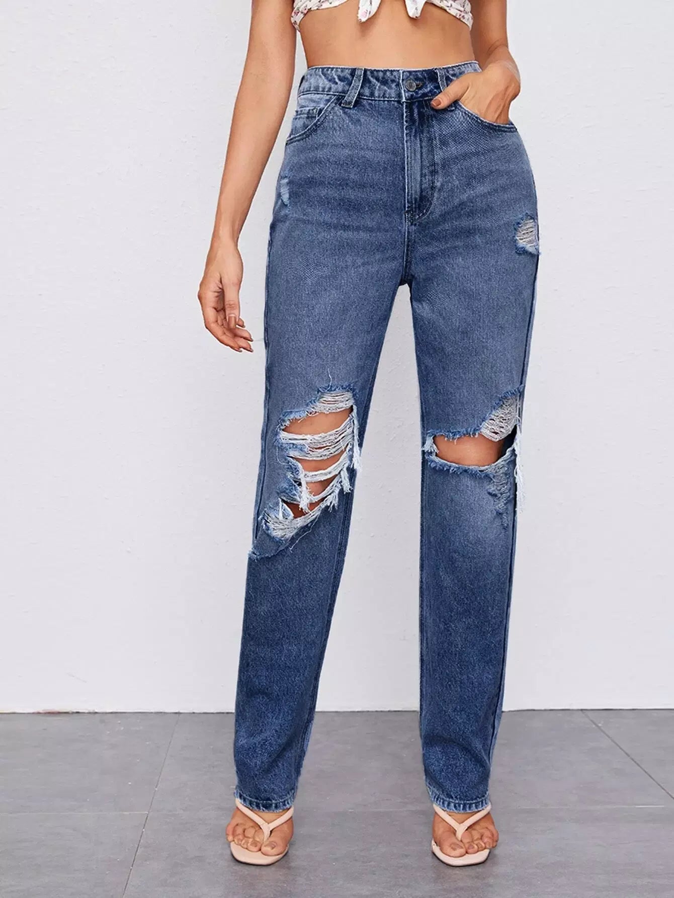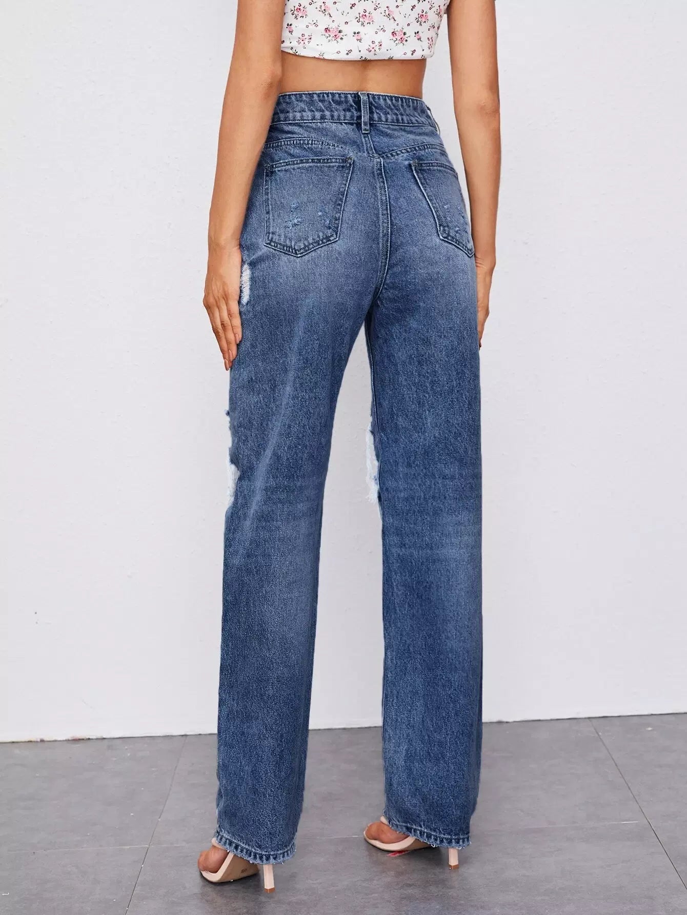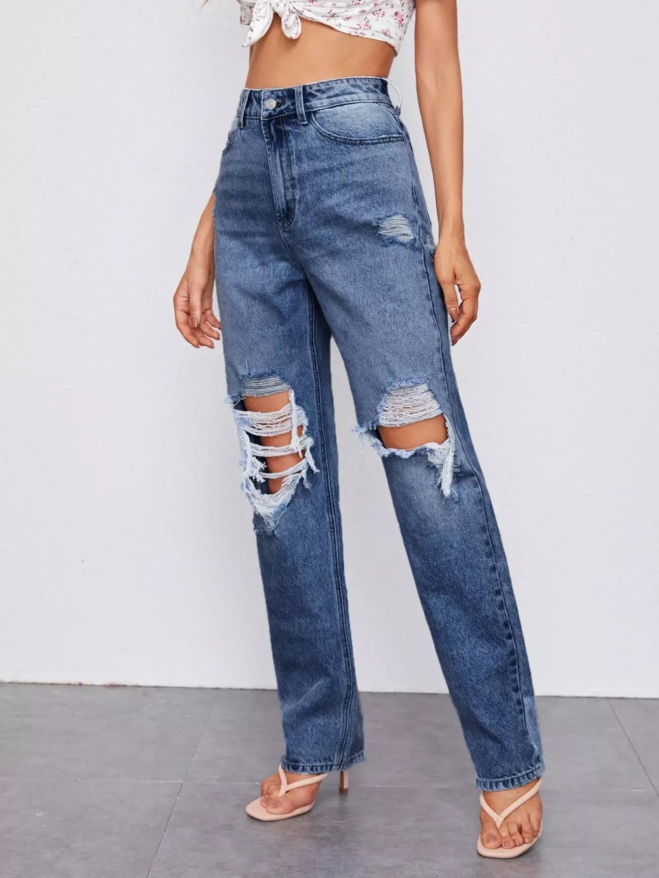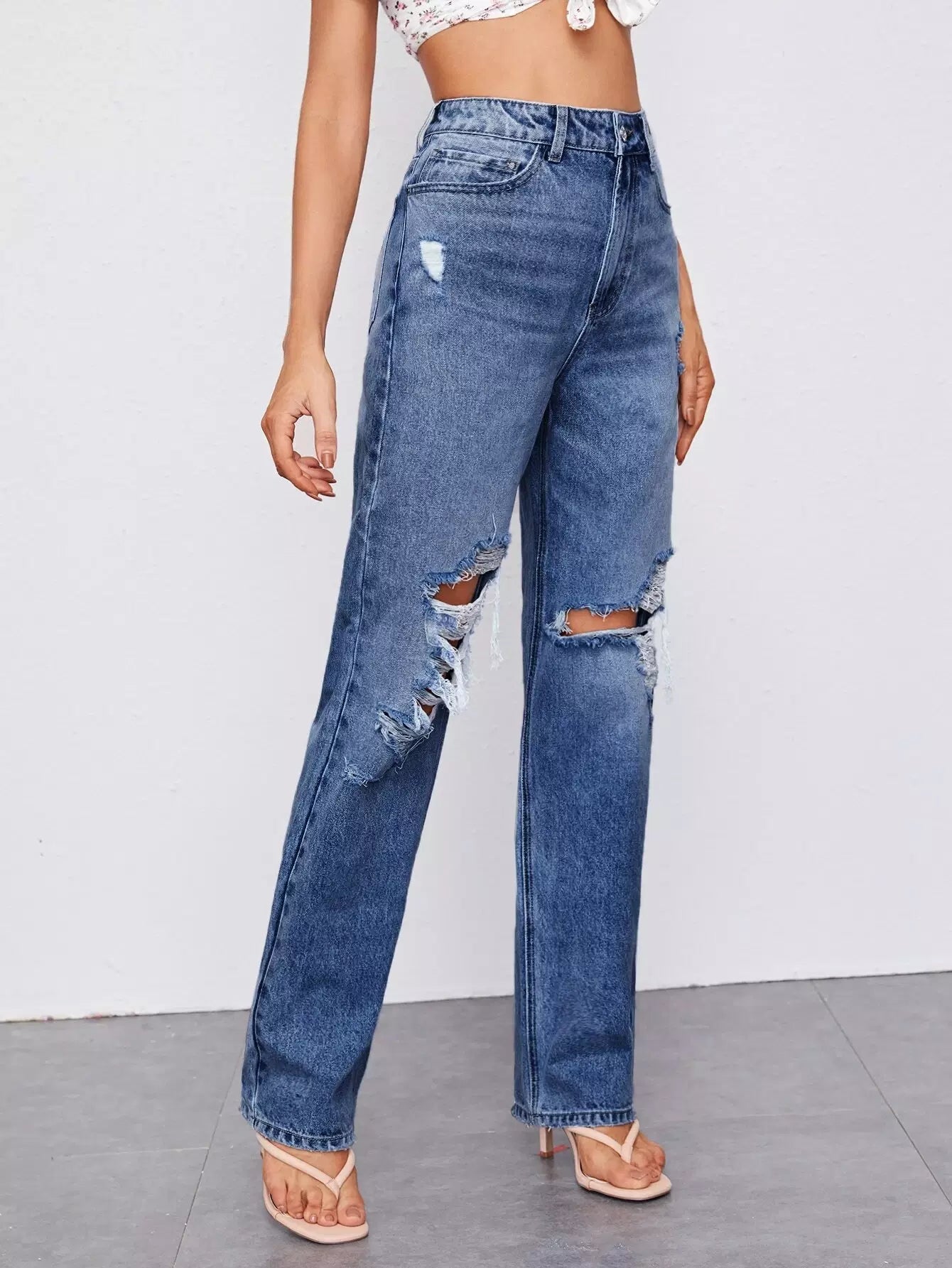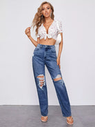 Ripped Detail Bleach Wash Jeans