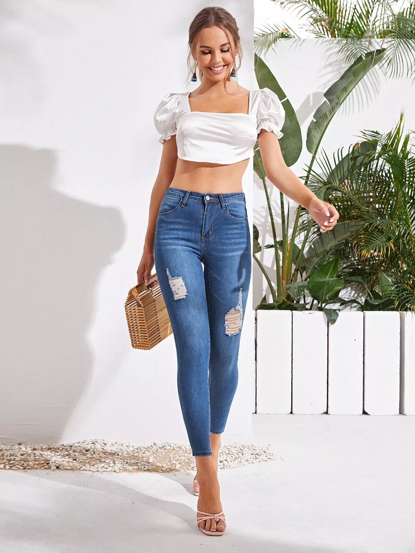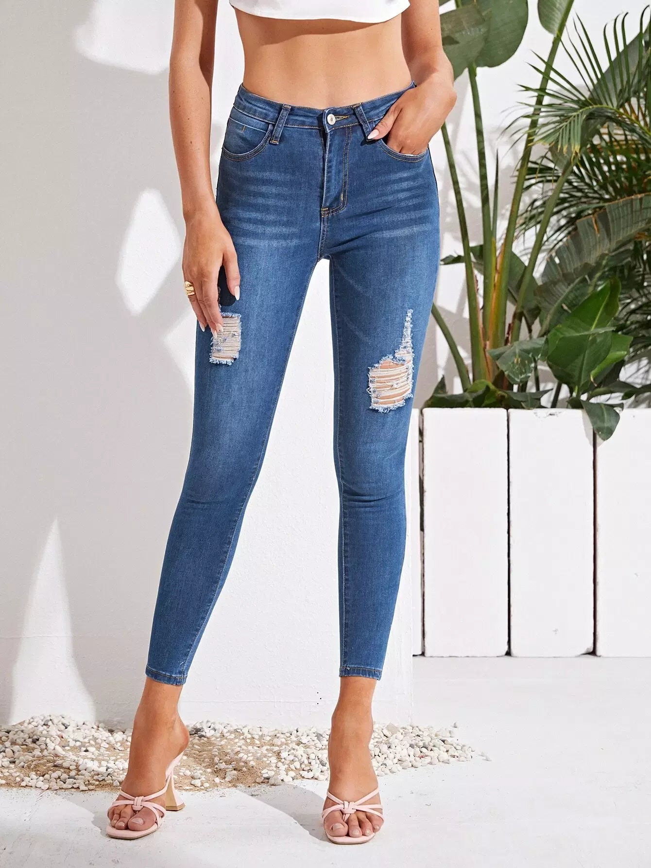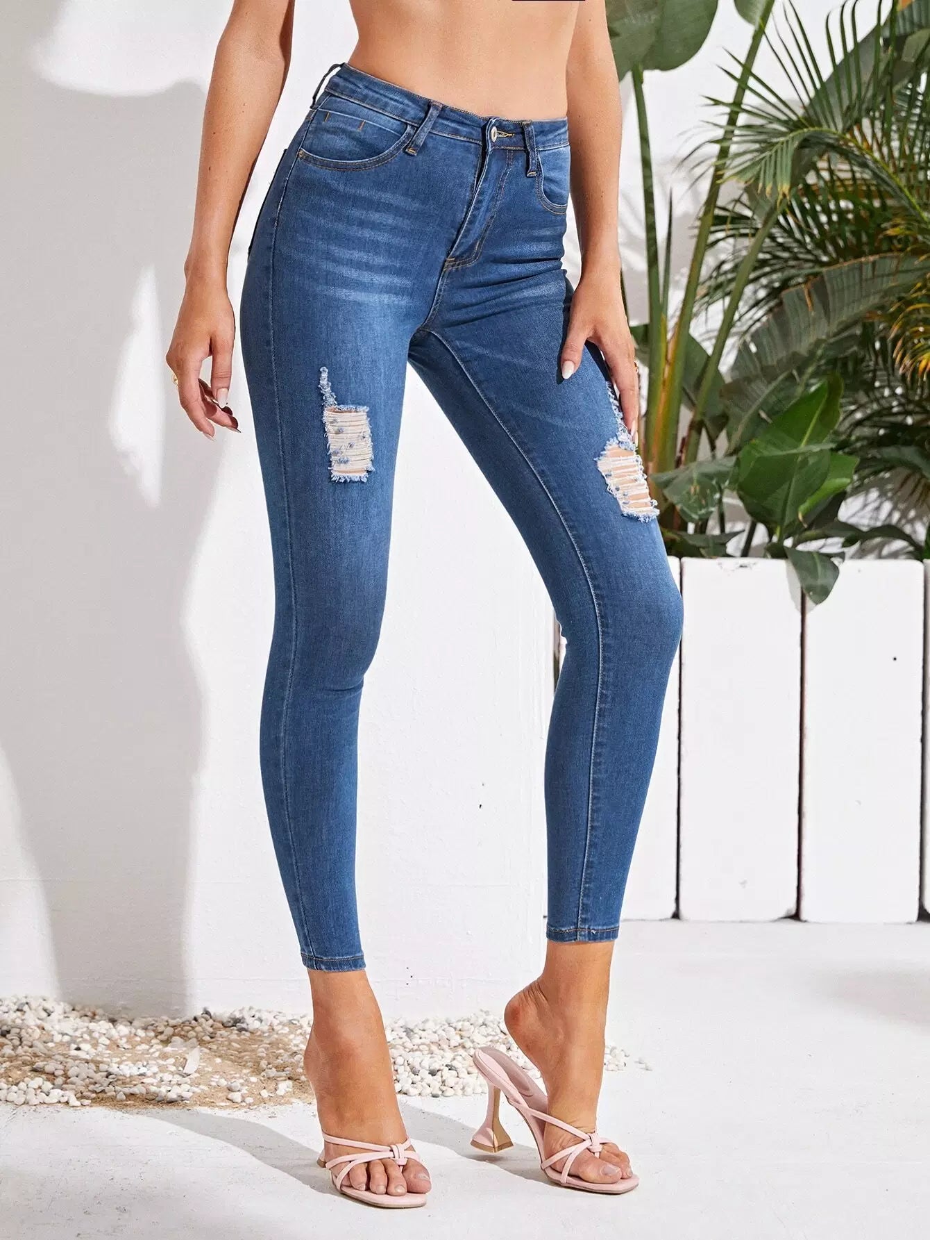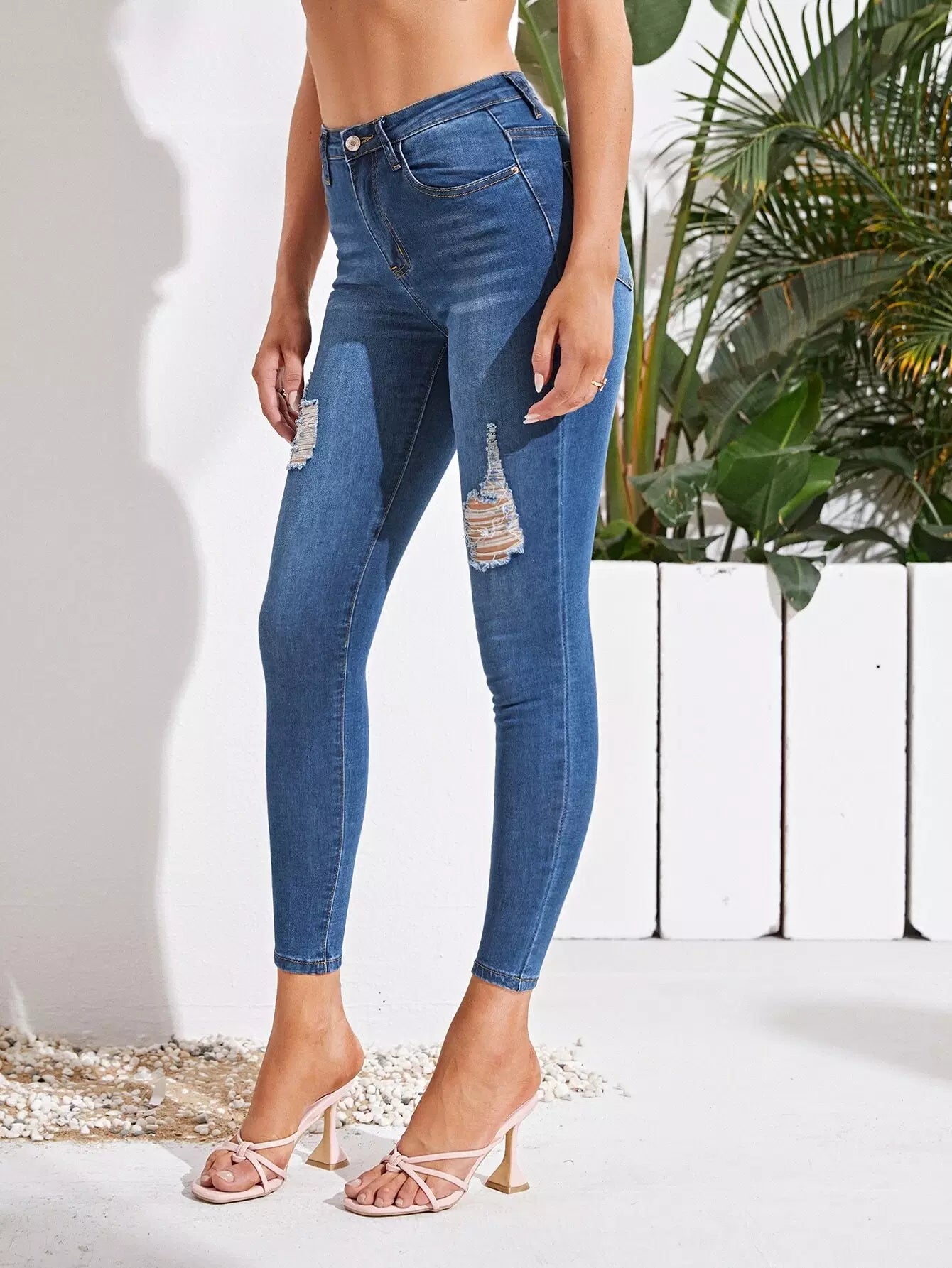 Women - Ripped High Stretch High Waisted Skinny Jeans