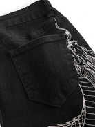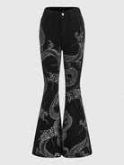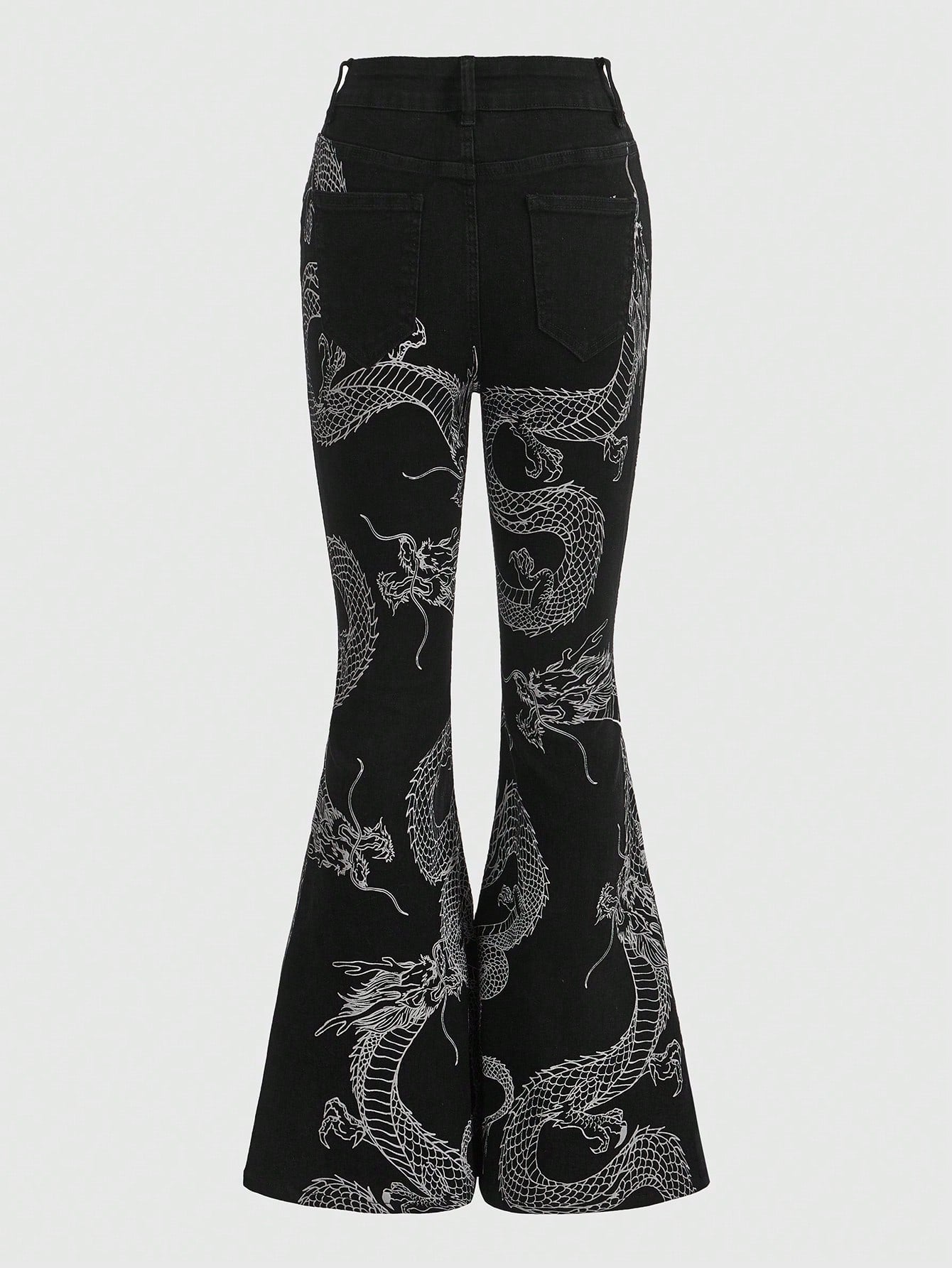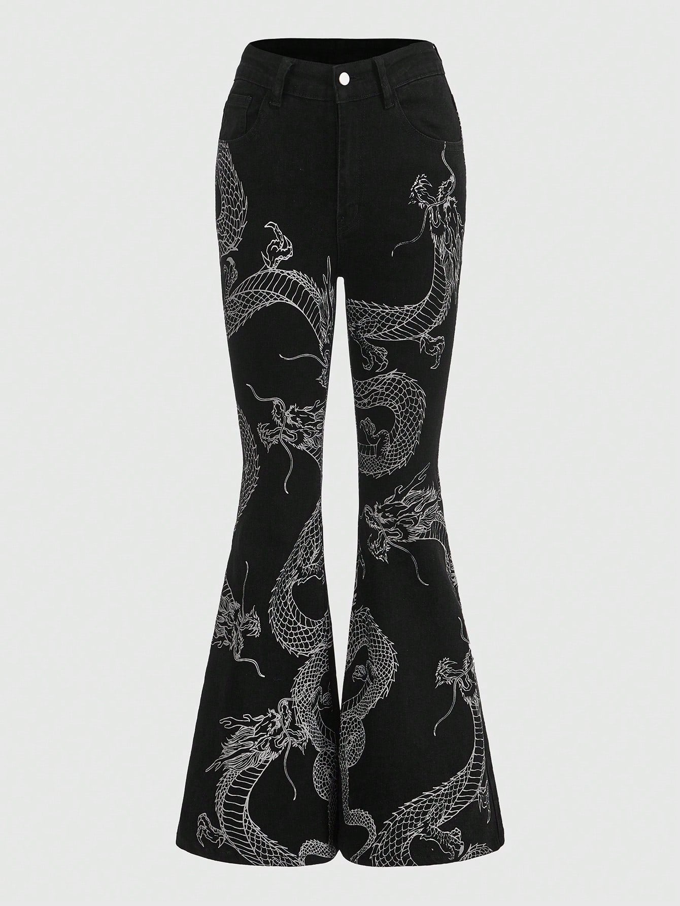ROMWE Grunge Punk Chinese Dragon Print Flare Leg Jeans, School