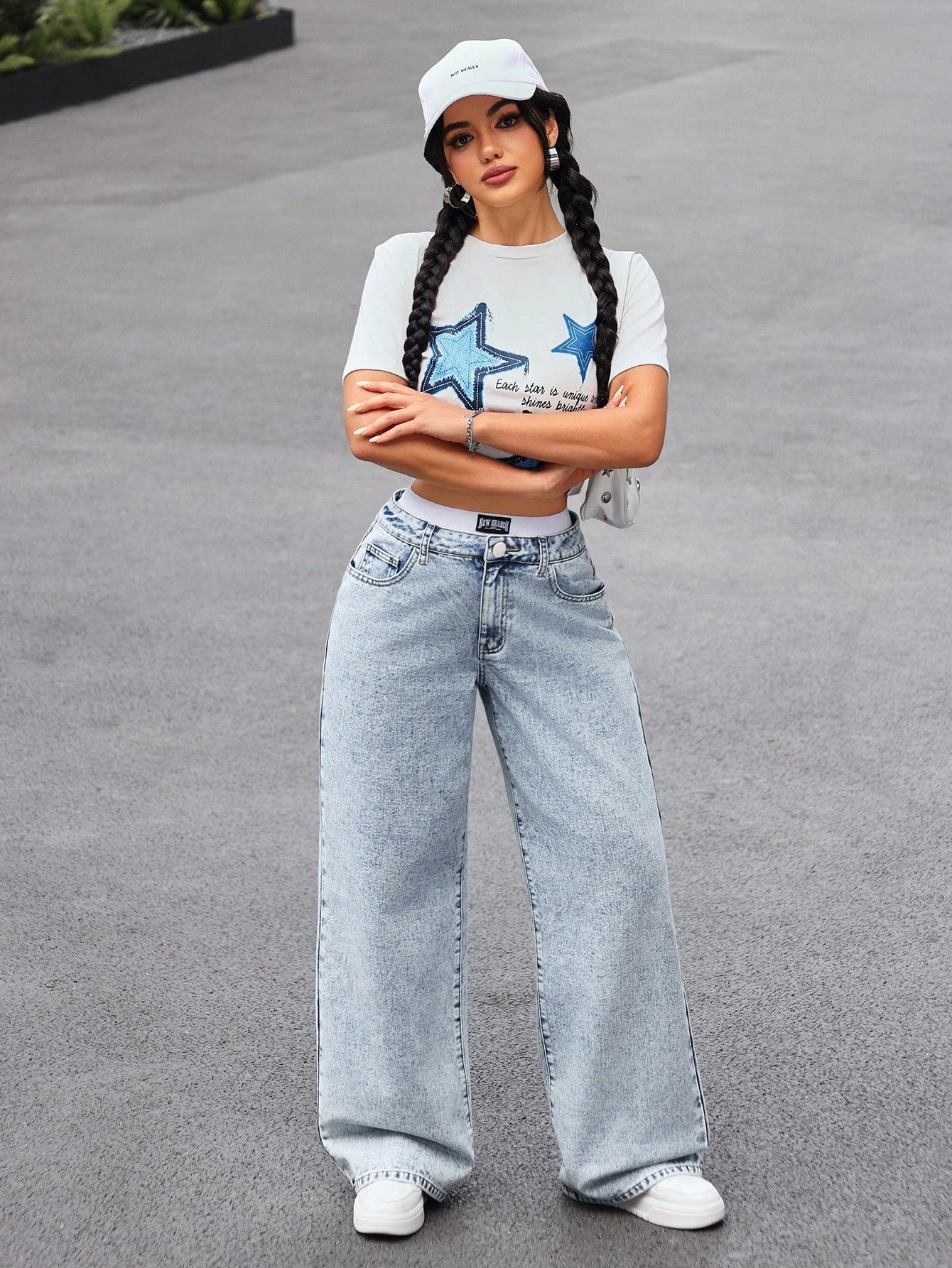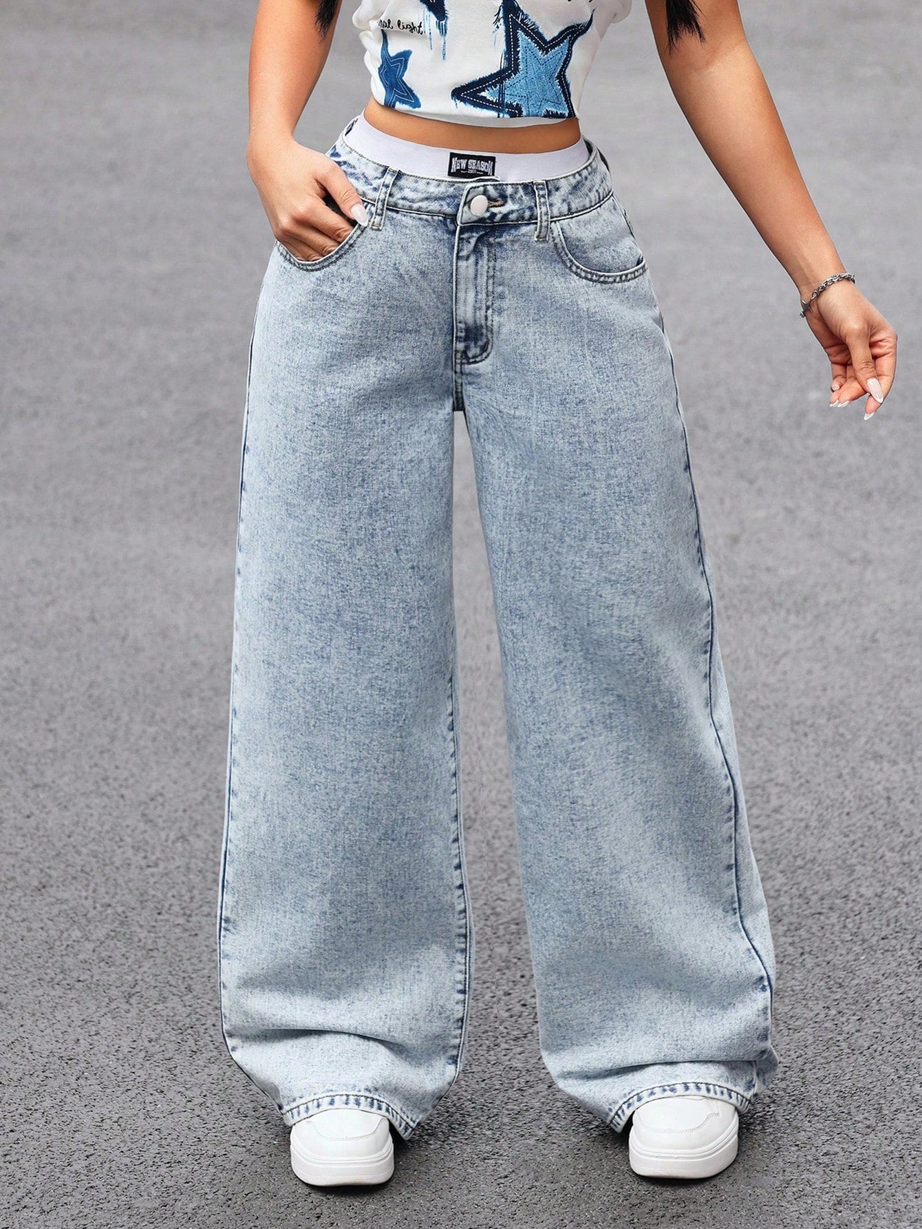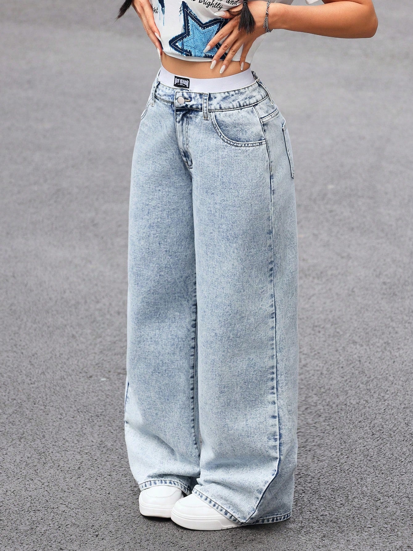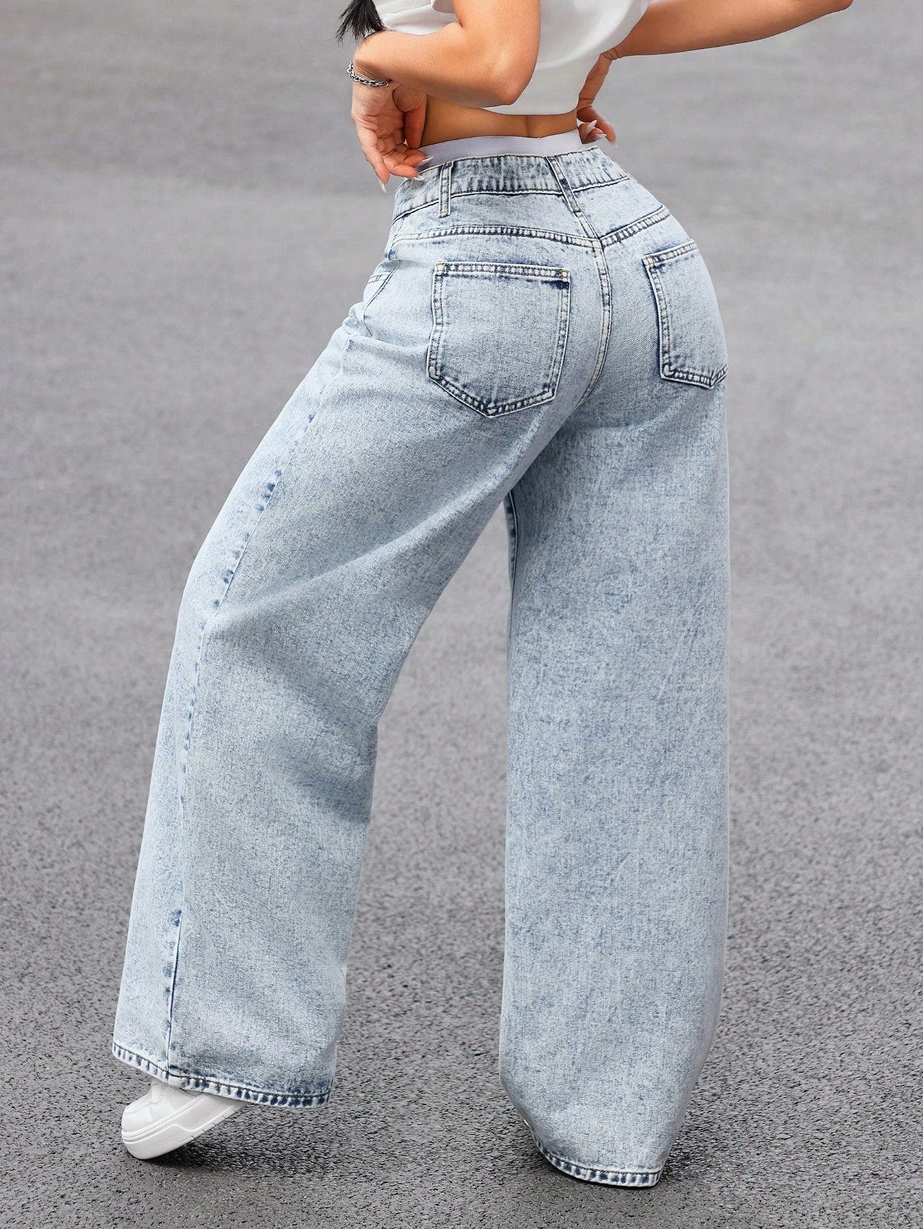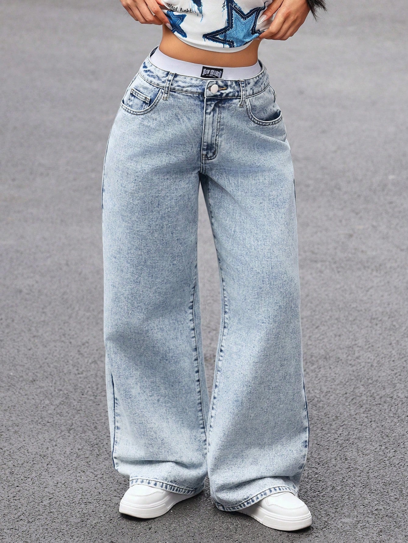 SHEIN EZwear Women's Front Button Pocket Simple Casual Jeans
