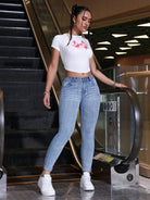 SHEIN EZwear Women's Plain Casual Denim Pants