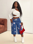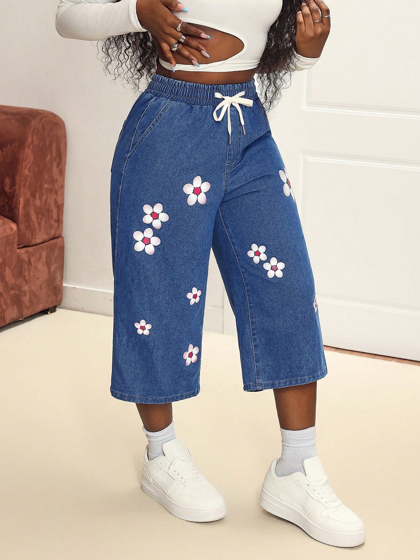 Slayr Women's Cute Printed Loose Straight-Leg Capri Jeans, Casual Pants