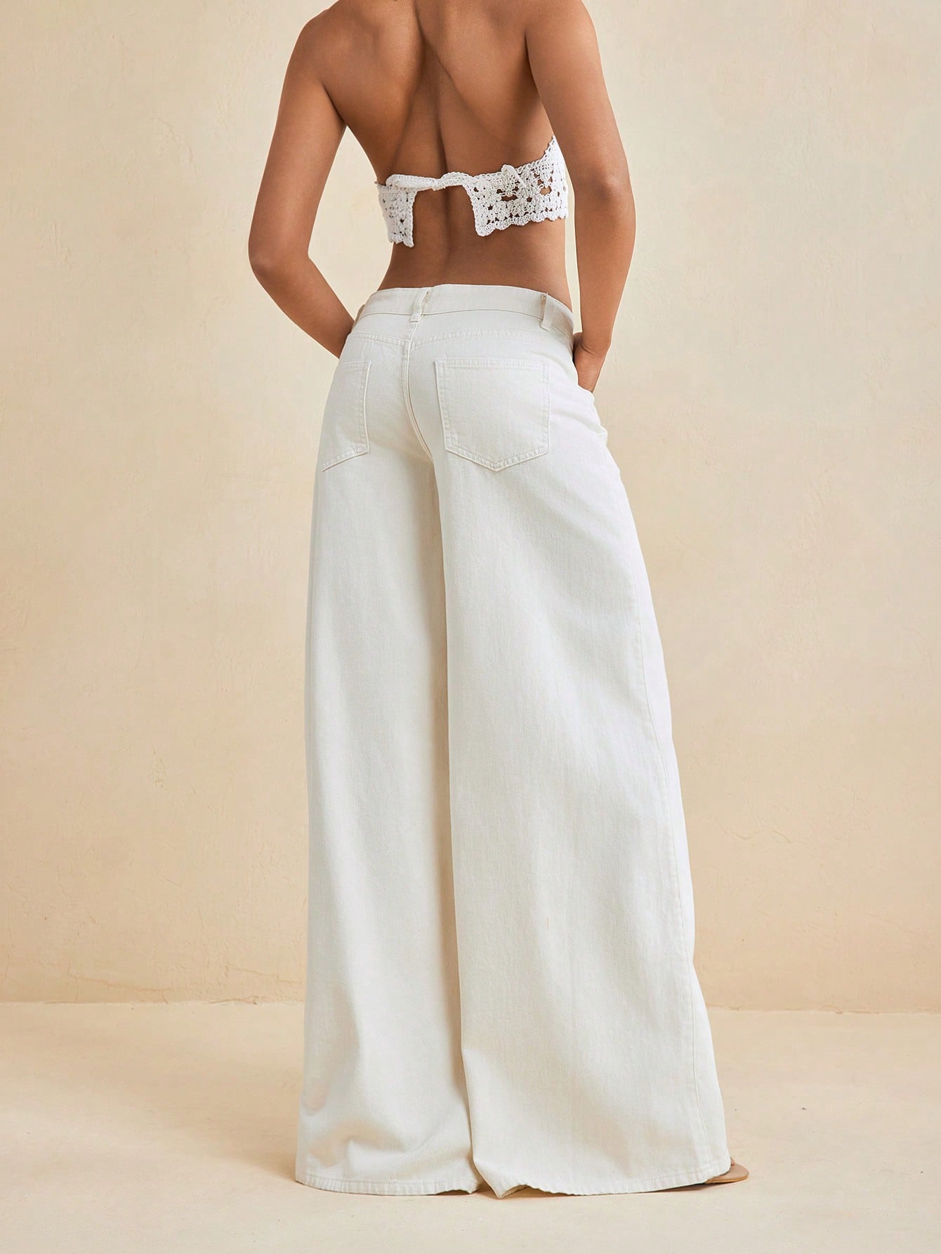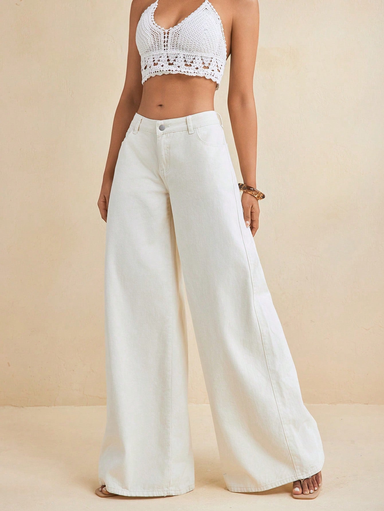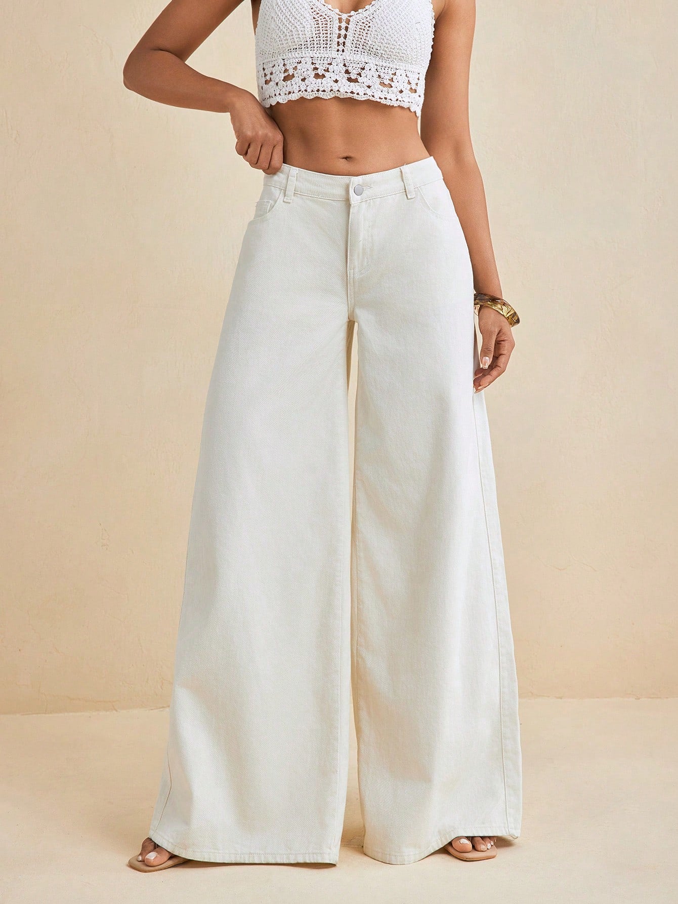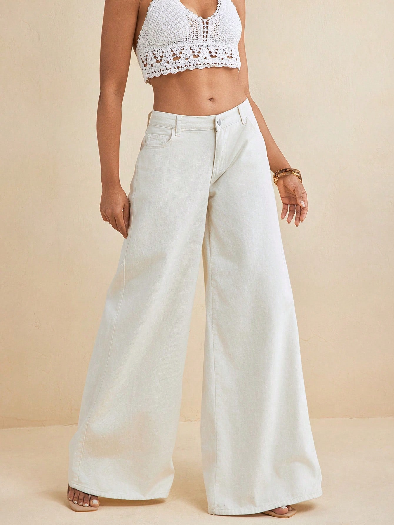 TSS Women's Spring And Summer Ivory White Casual Workwear Street Wide Leg Loose Jeans