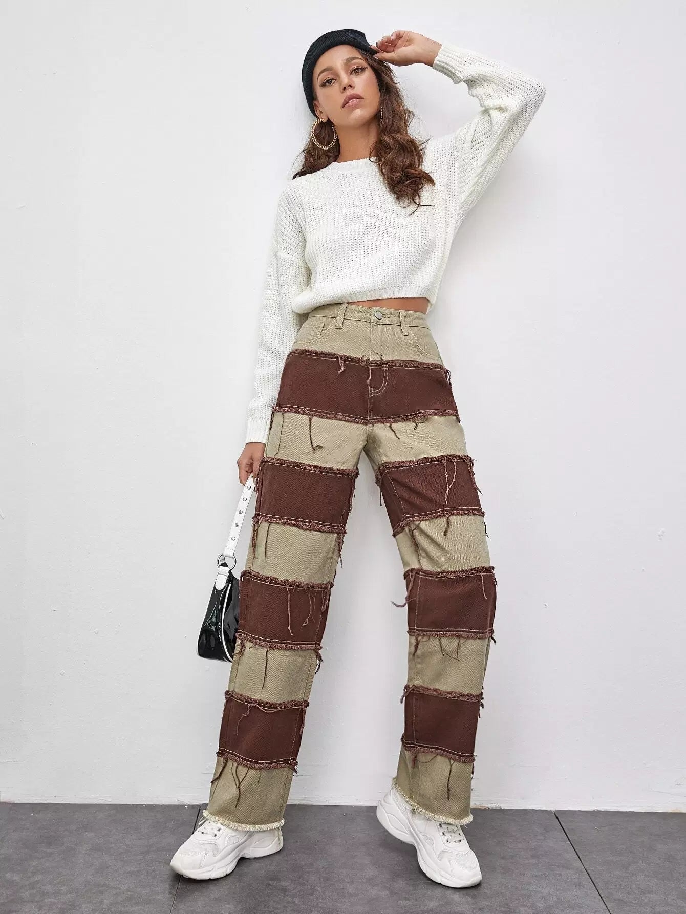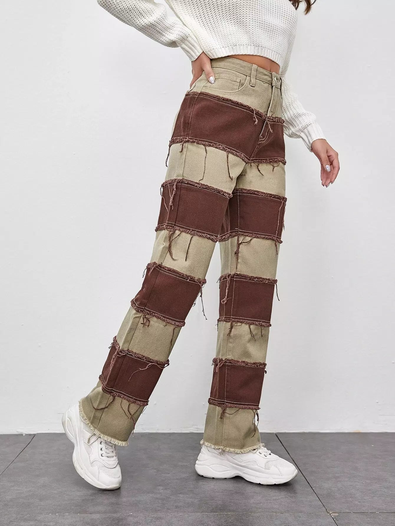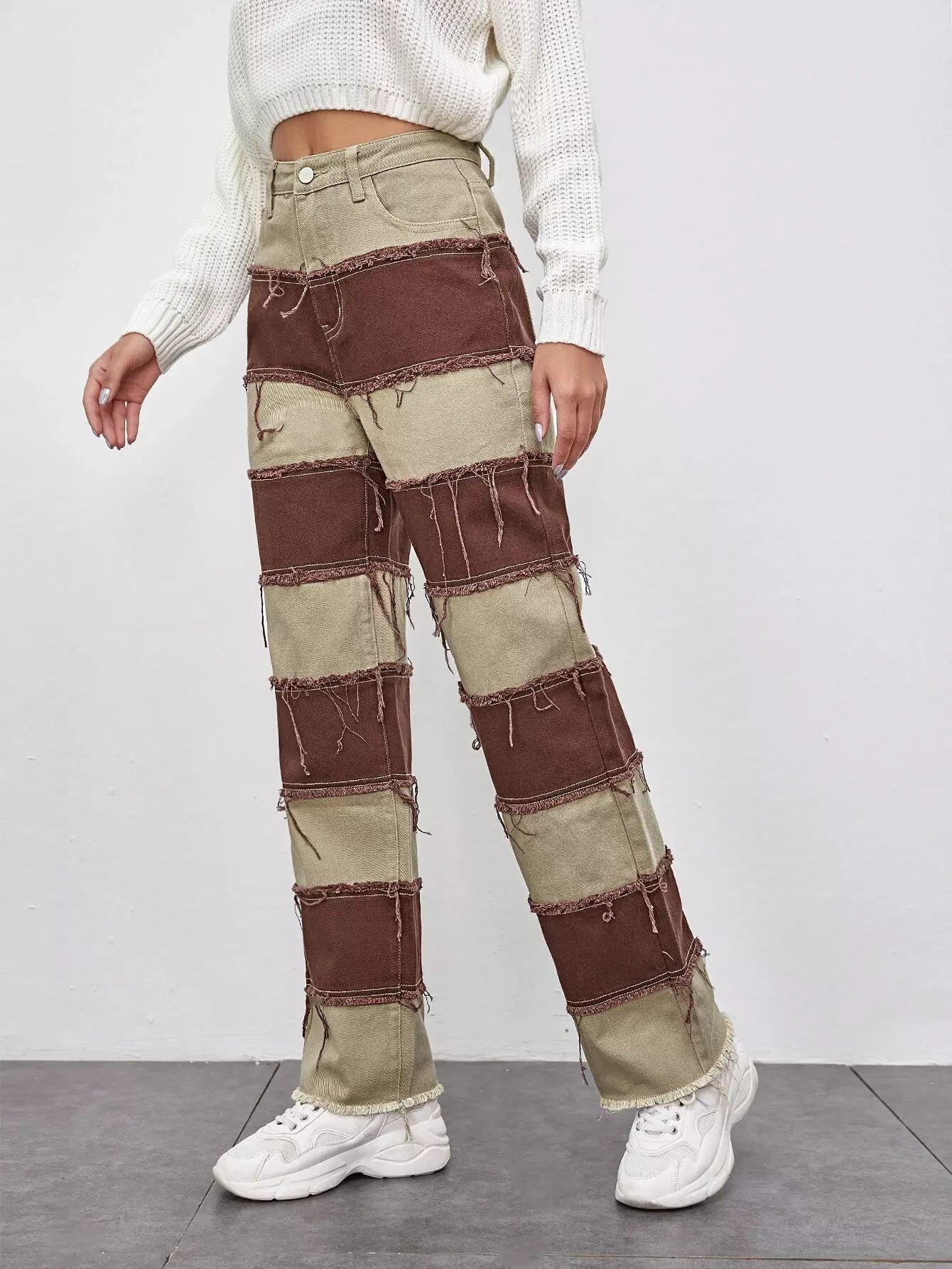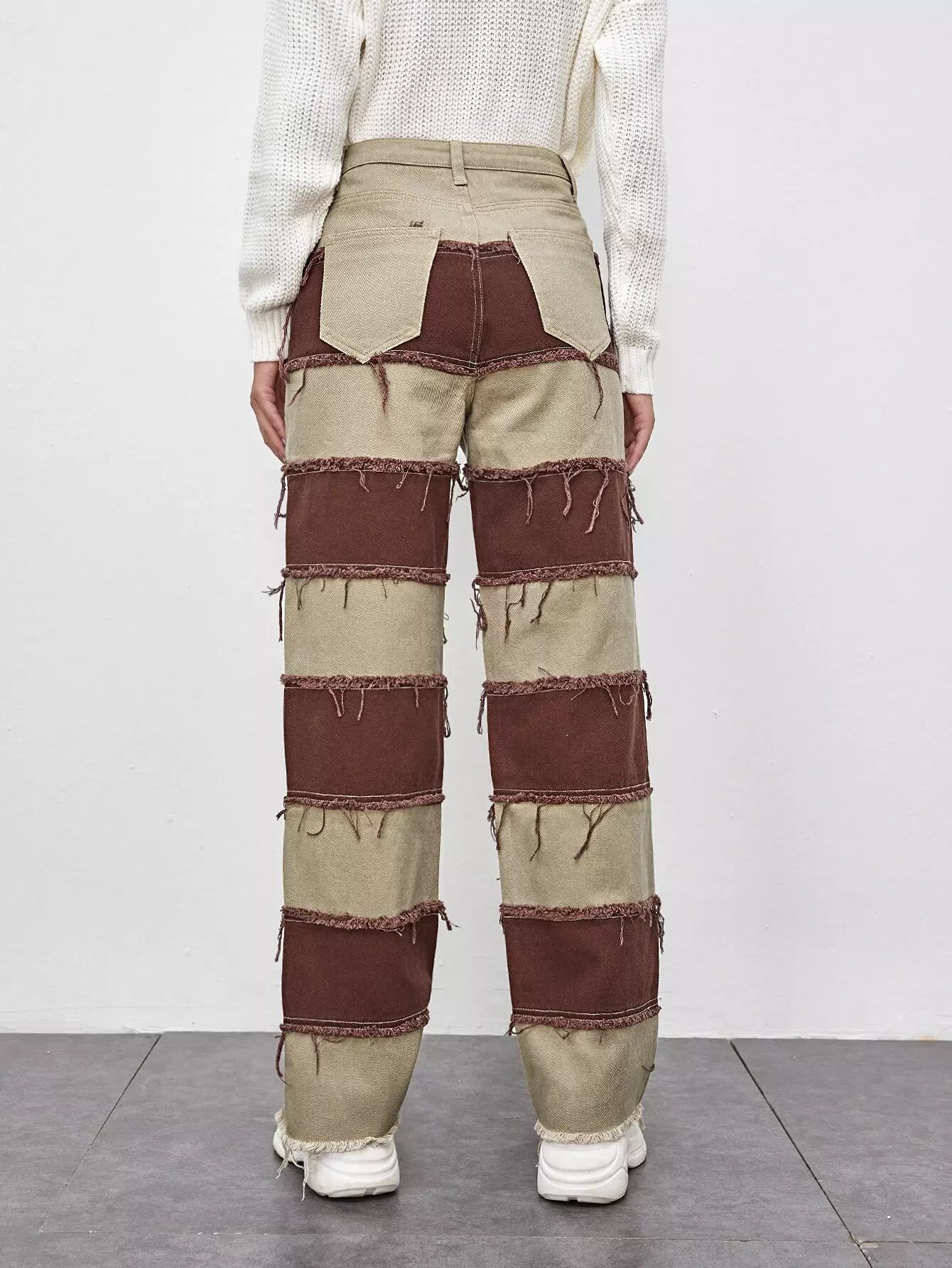 Two Tone Fringe Raw Hem Straight Leg Jeans