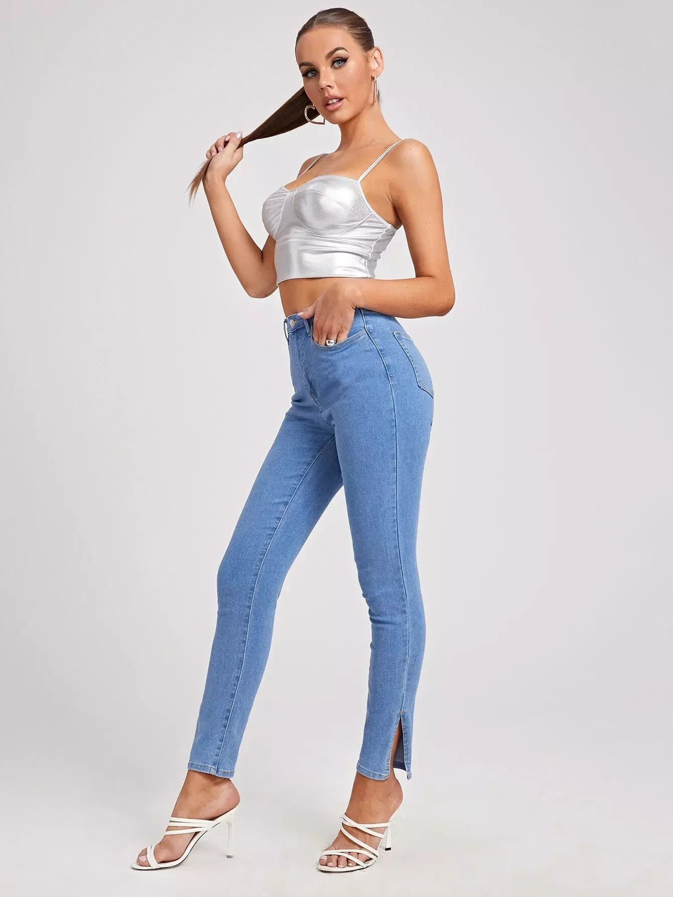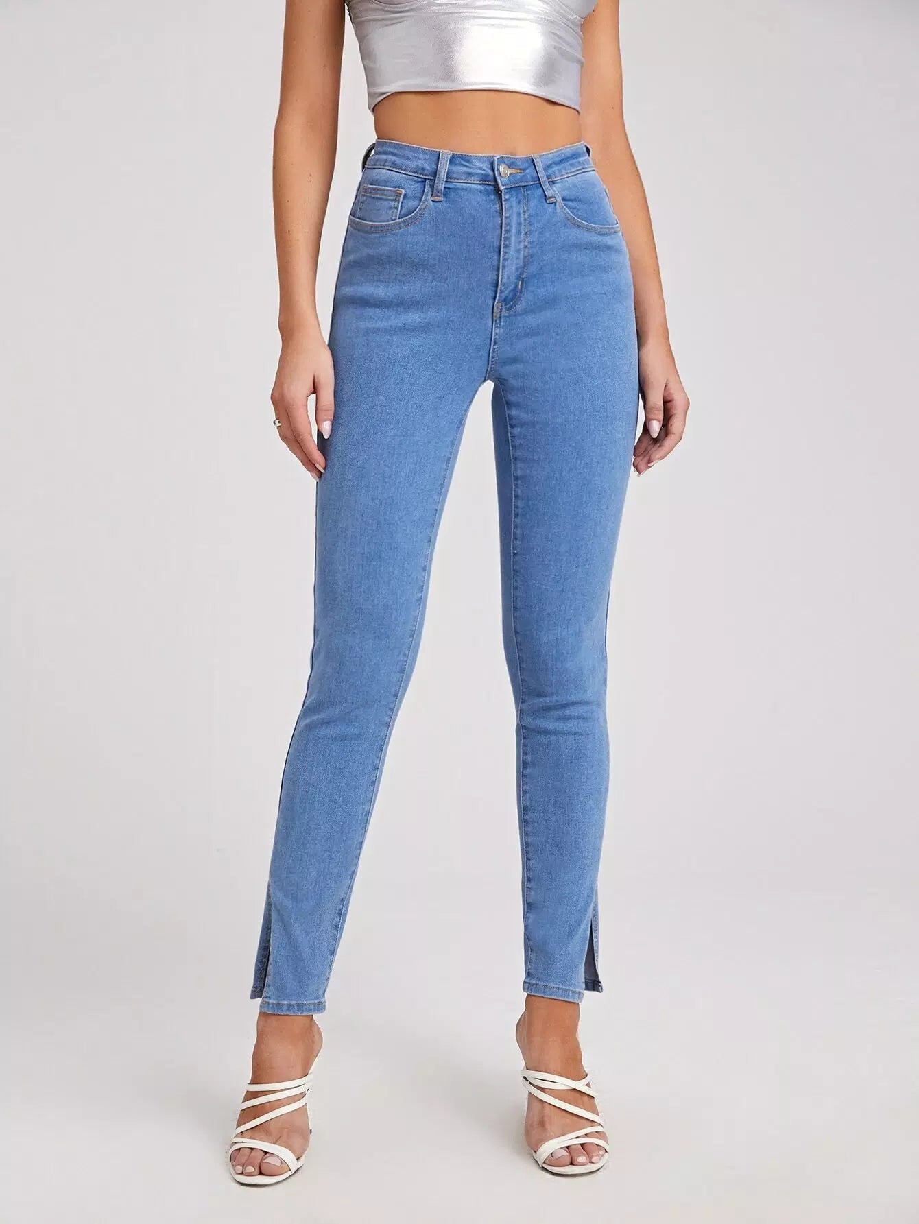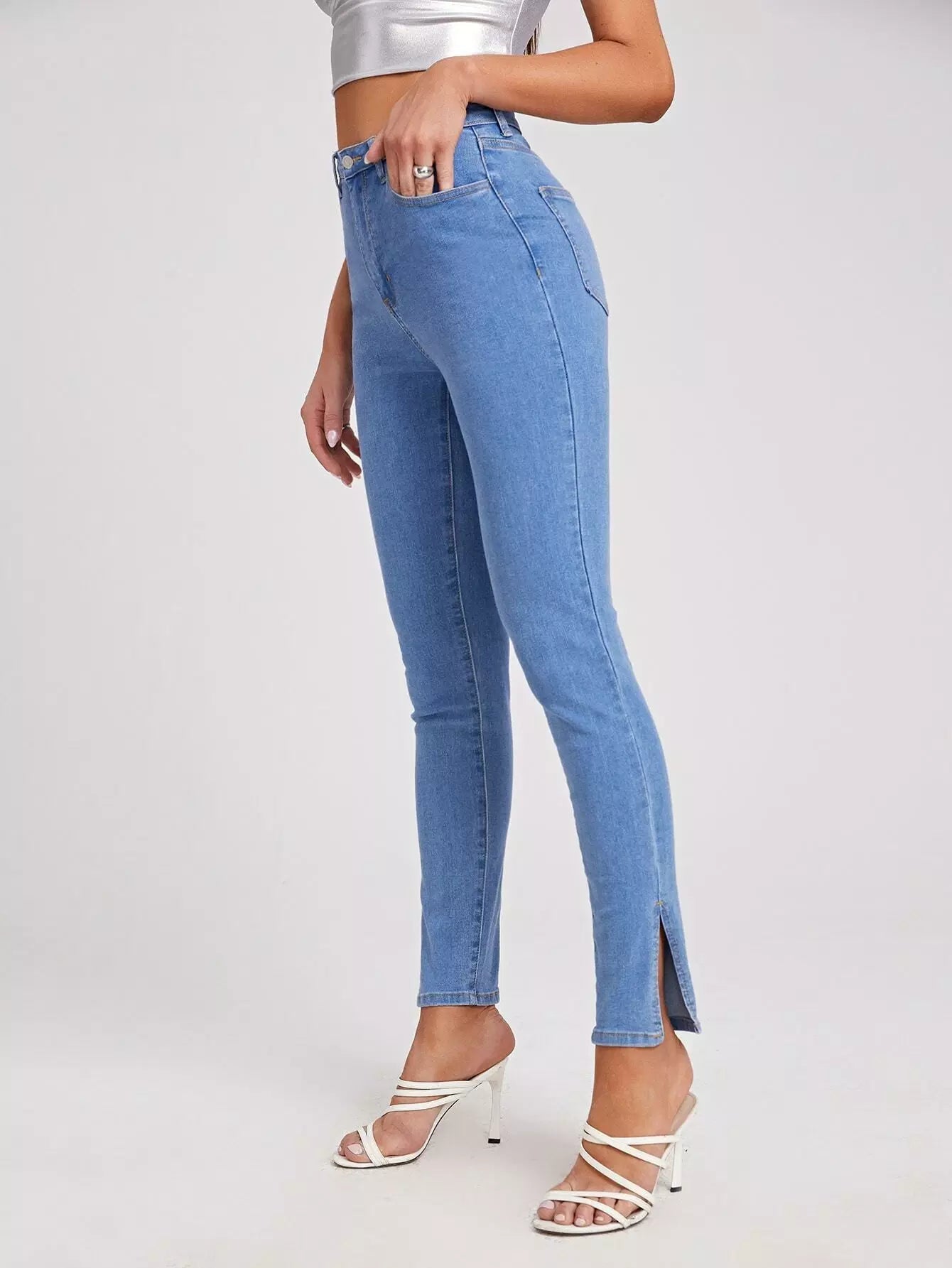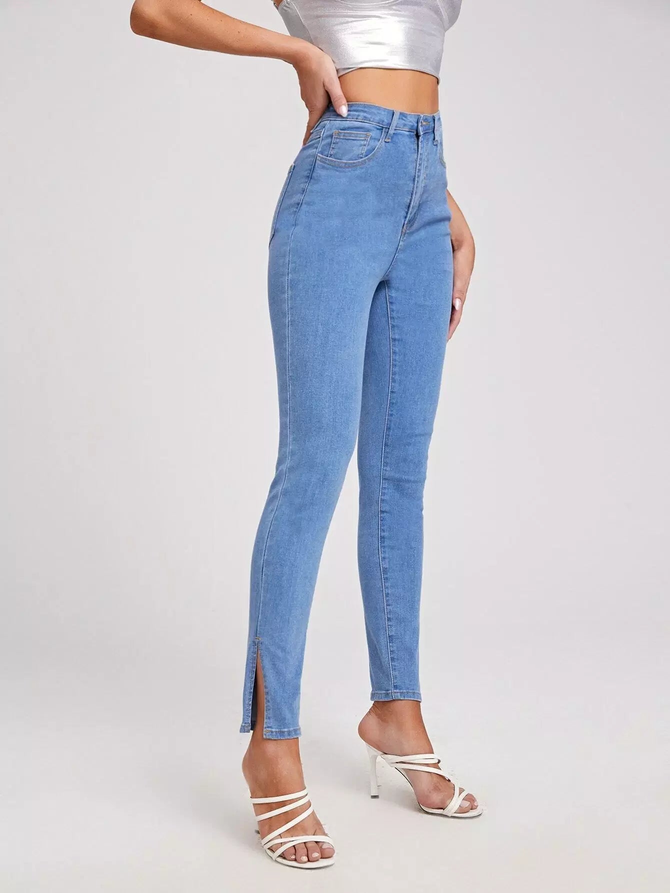 Zipper Fly Split Hem Jeans