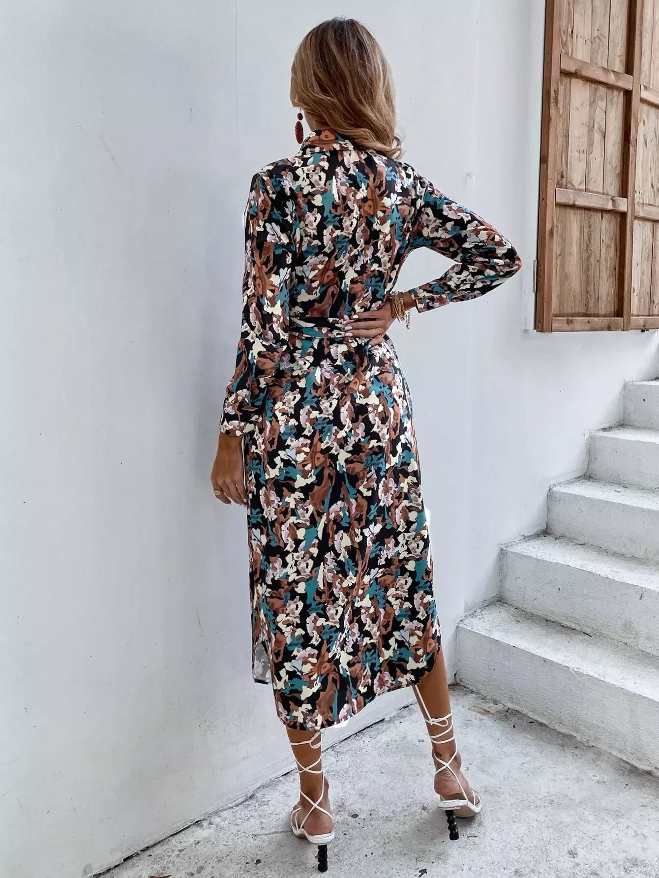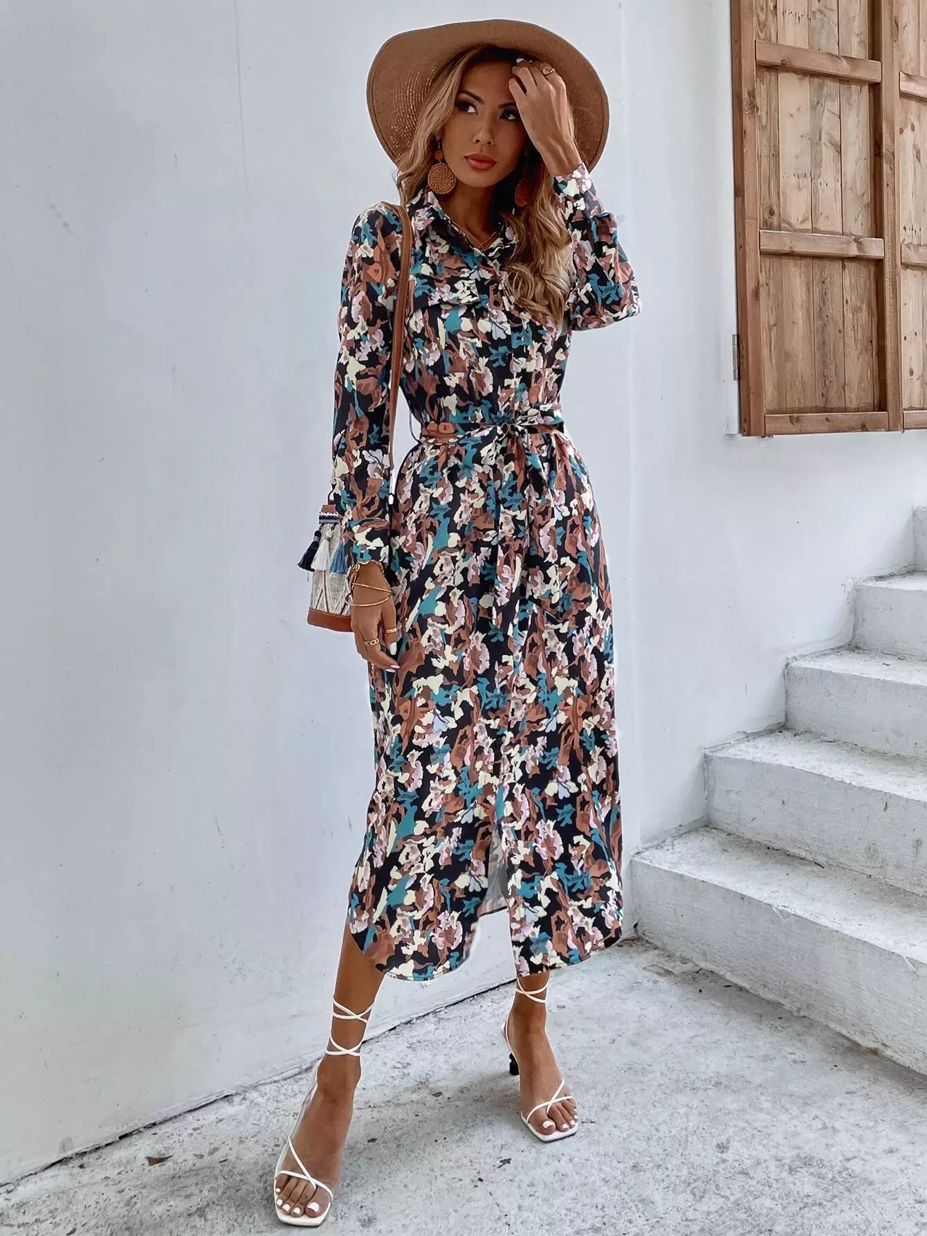 All Over Floral Print Button Front Shirt Dress Without Belt