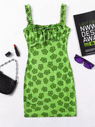 Women - Allover Floral Print Ruched Bust Frill Trim Dress