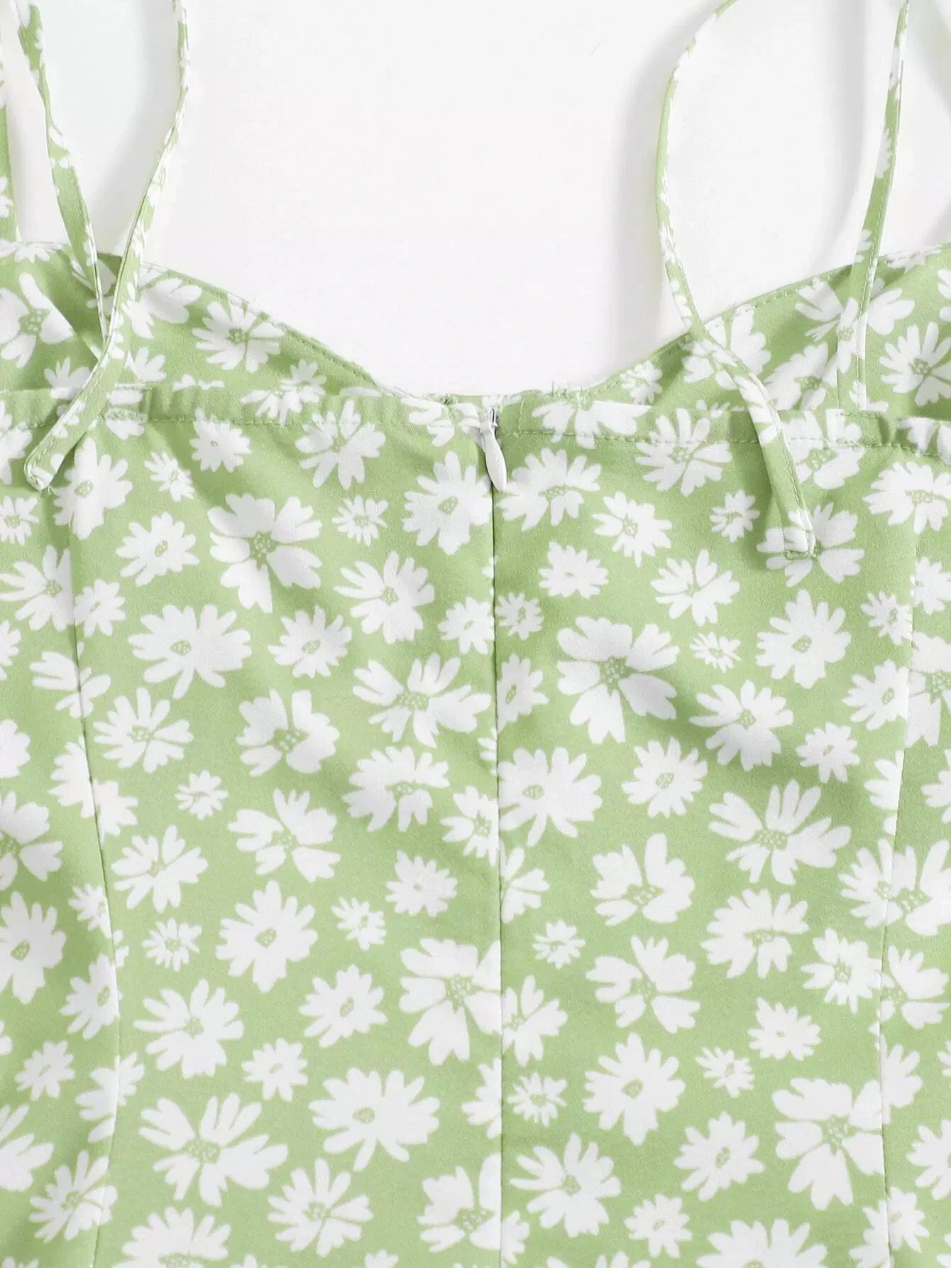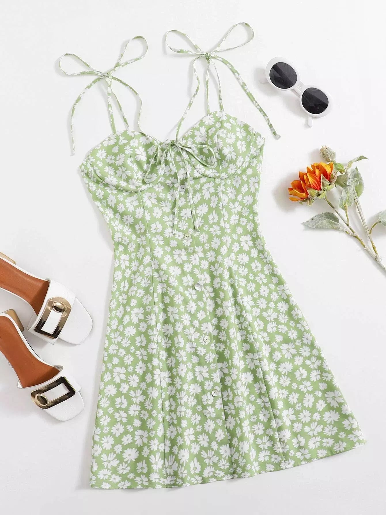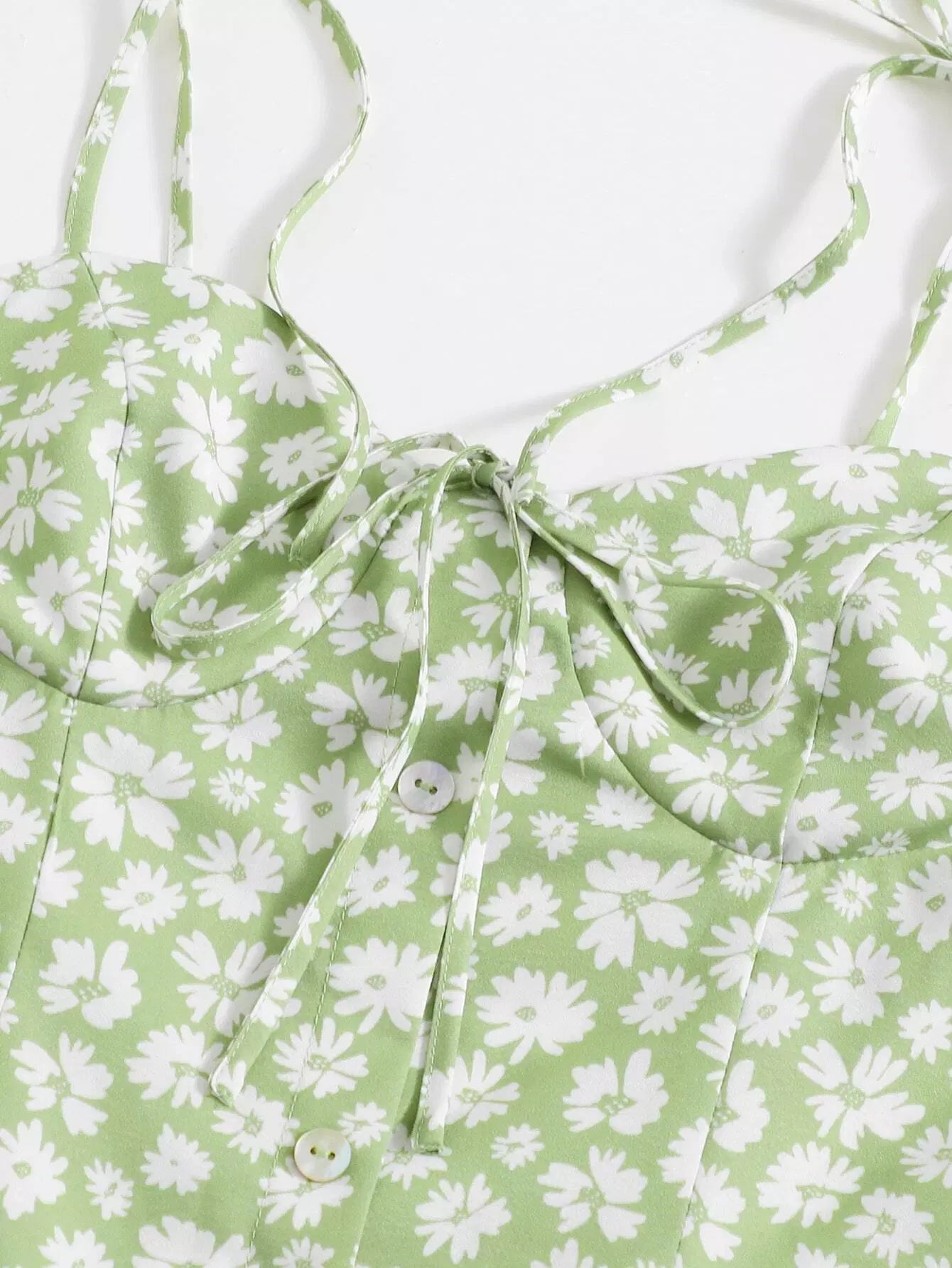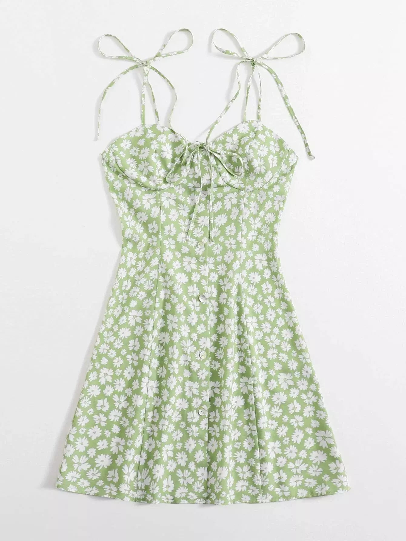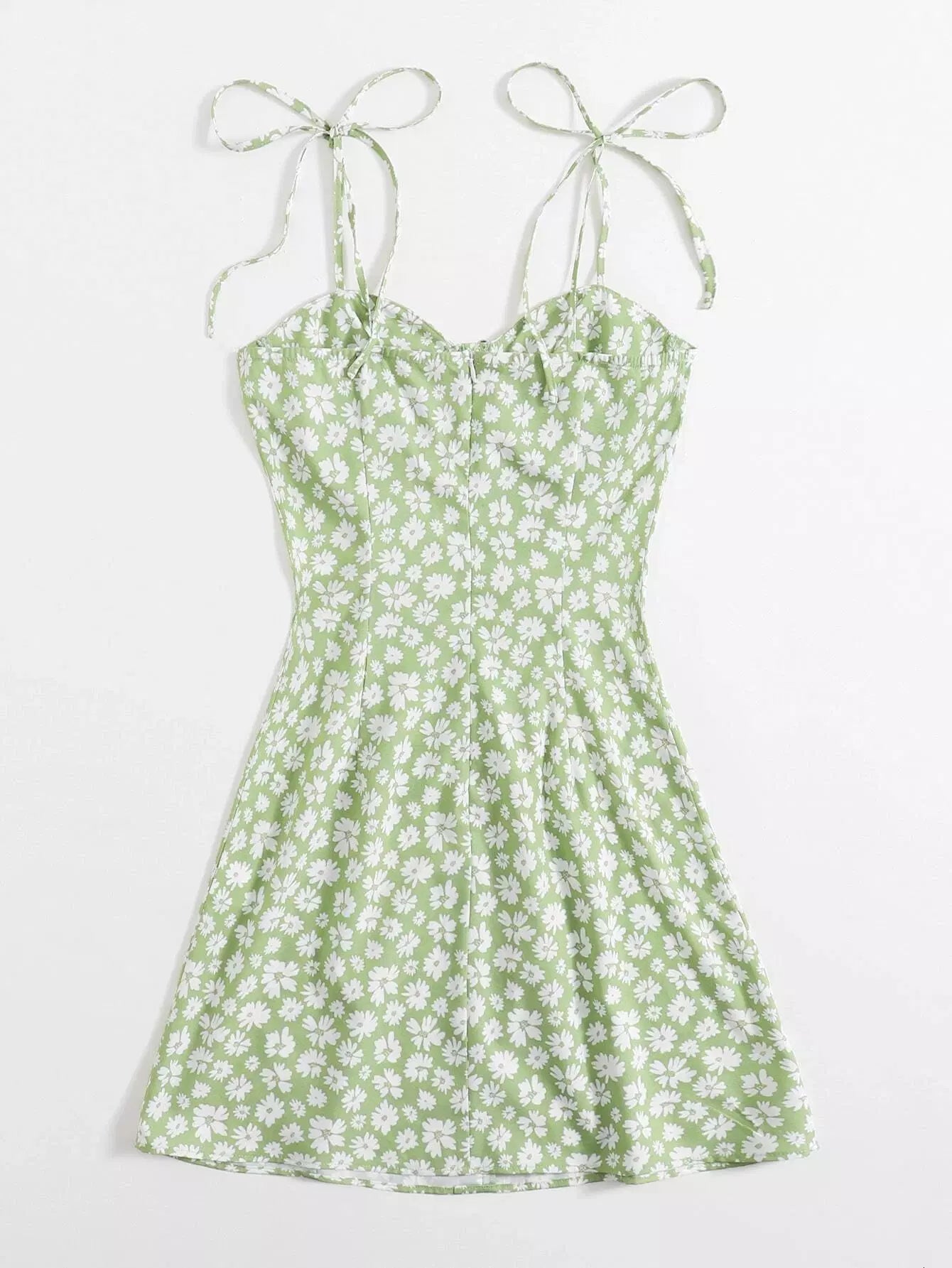 Allover Floral Print Tie Shoulder Knot Front Dress
