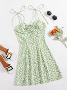 Women - Allover Floral Print Tie Shoulder Knot Front Dress