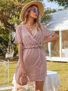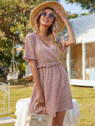 Women - Allover Print Ruffle Trim Surplice Front Dress