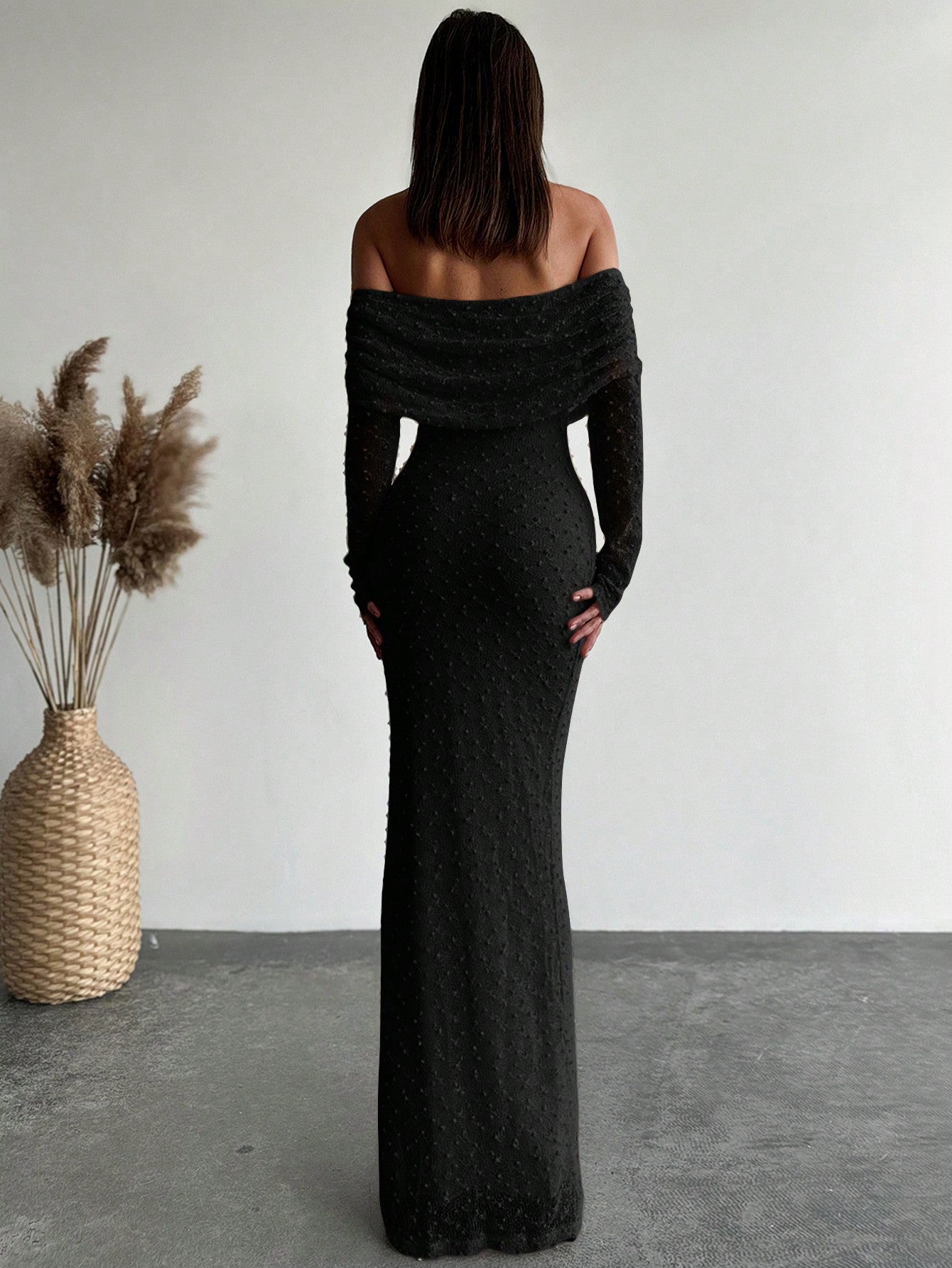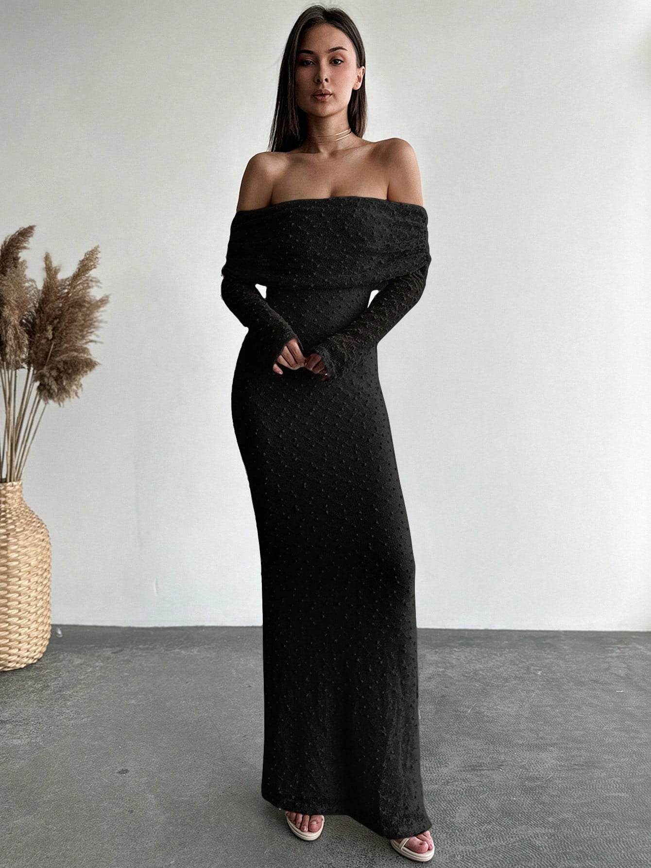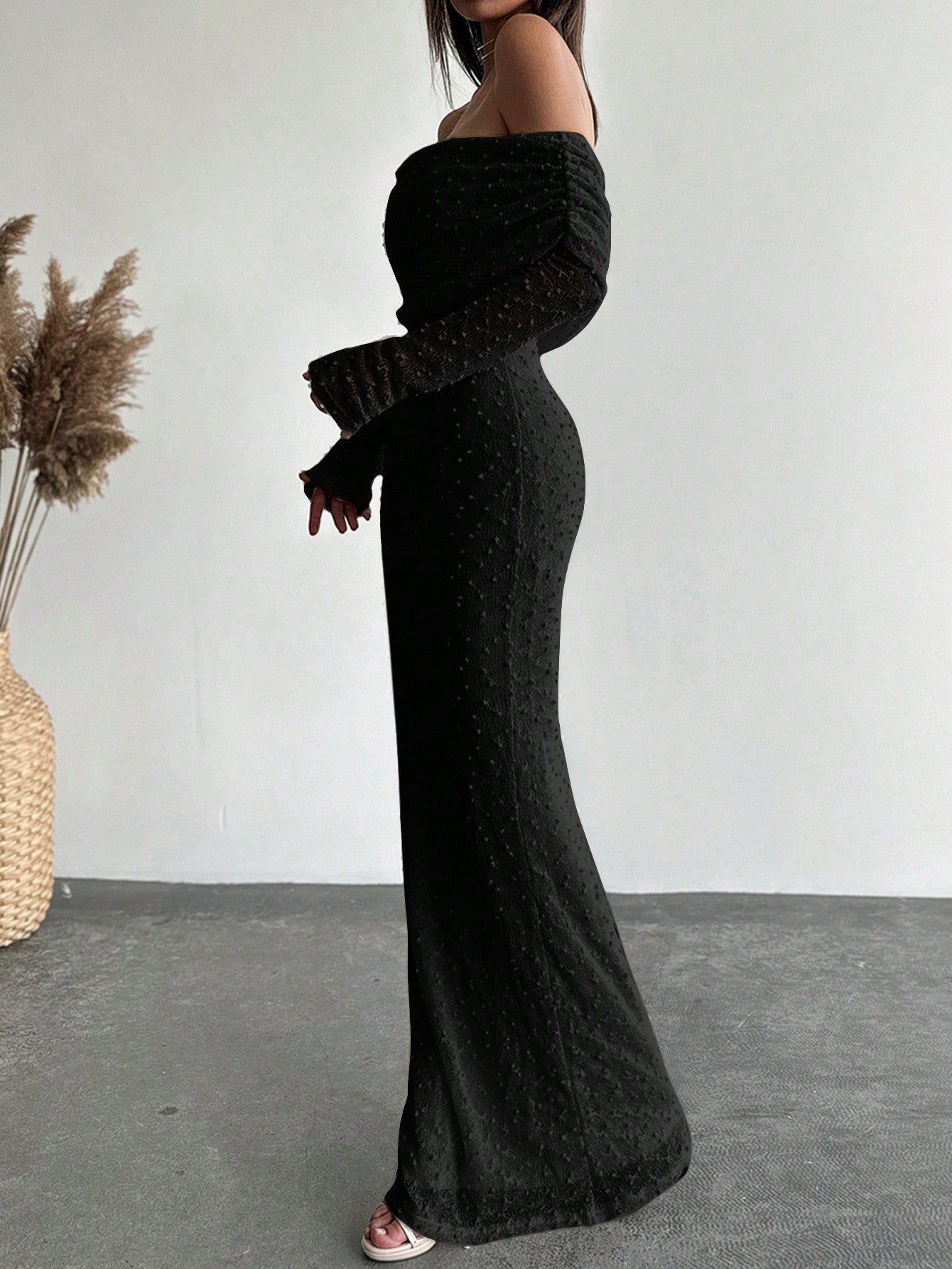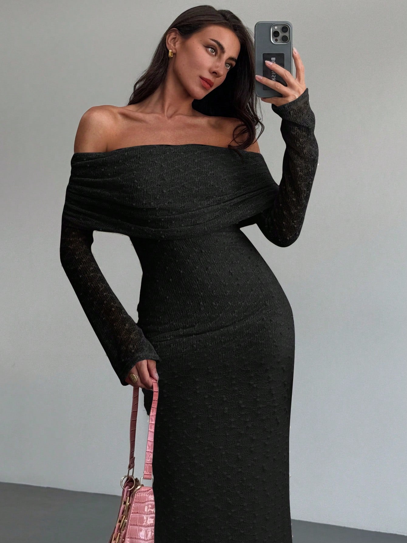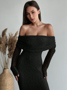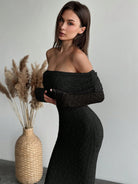 Aloruh Apricot Off-Shoulder Tight Fit Mini Dress With Mesh Texture, For Romantic Date, Vacation & Karaoke