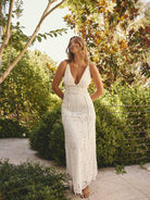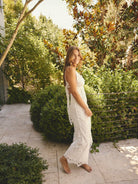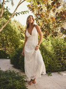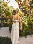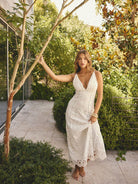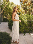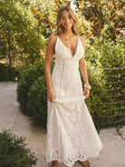 Aralina Elevated Lace Deep V Neck Scalloped Hem Embroidery Open Bow Back Summer Maxi Dress