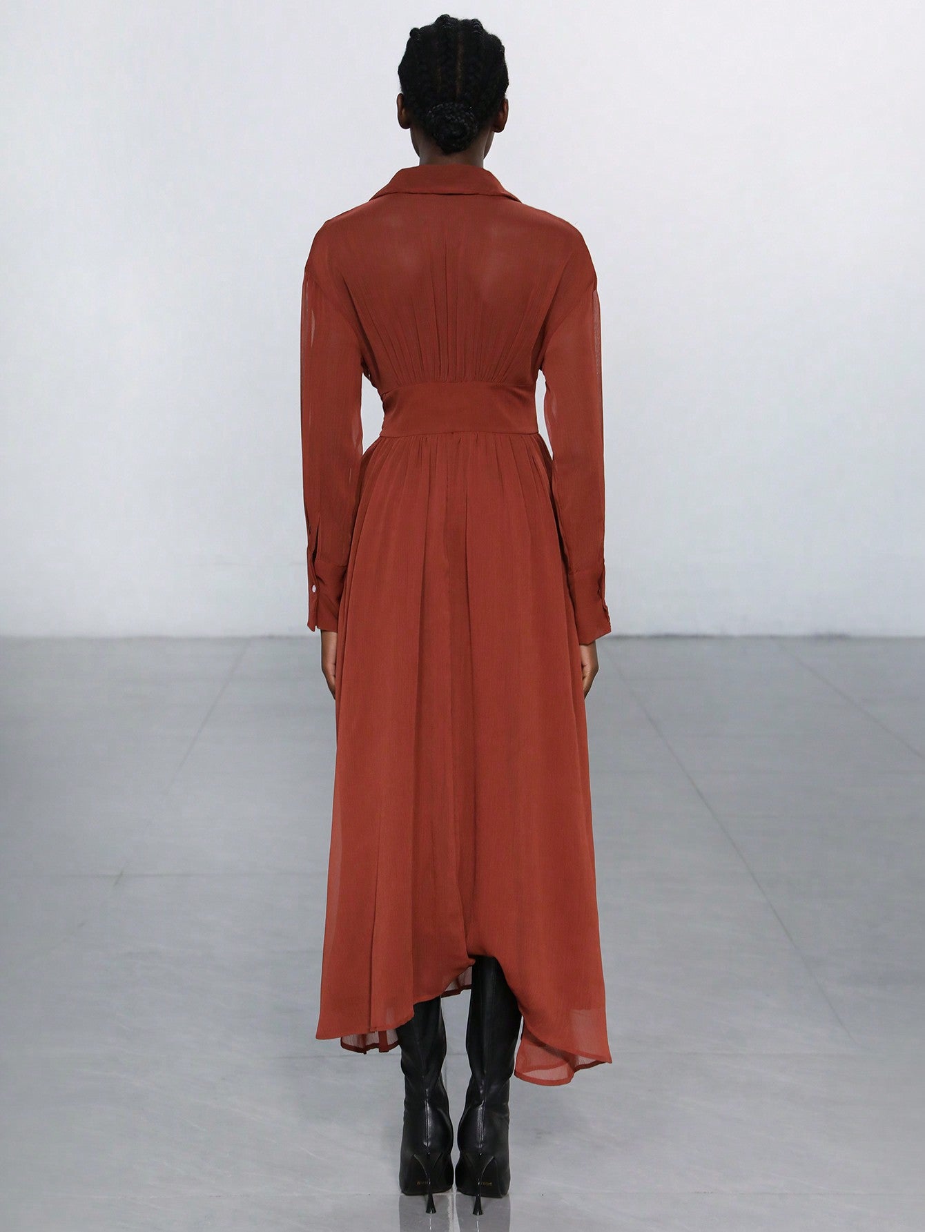Aveloria Modichic High-End French Style Work Turndown Collar Button Front Cinched Waist Fitted Dress