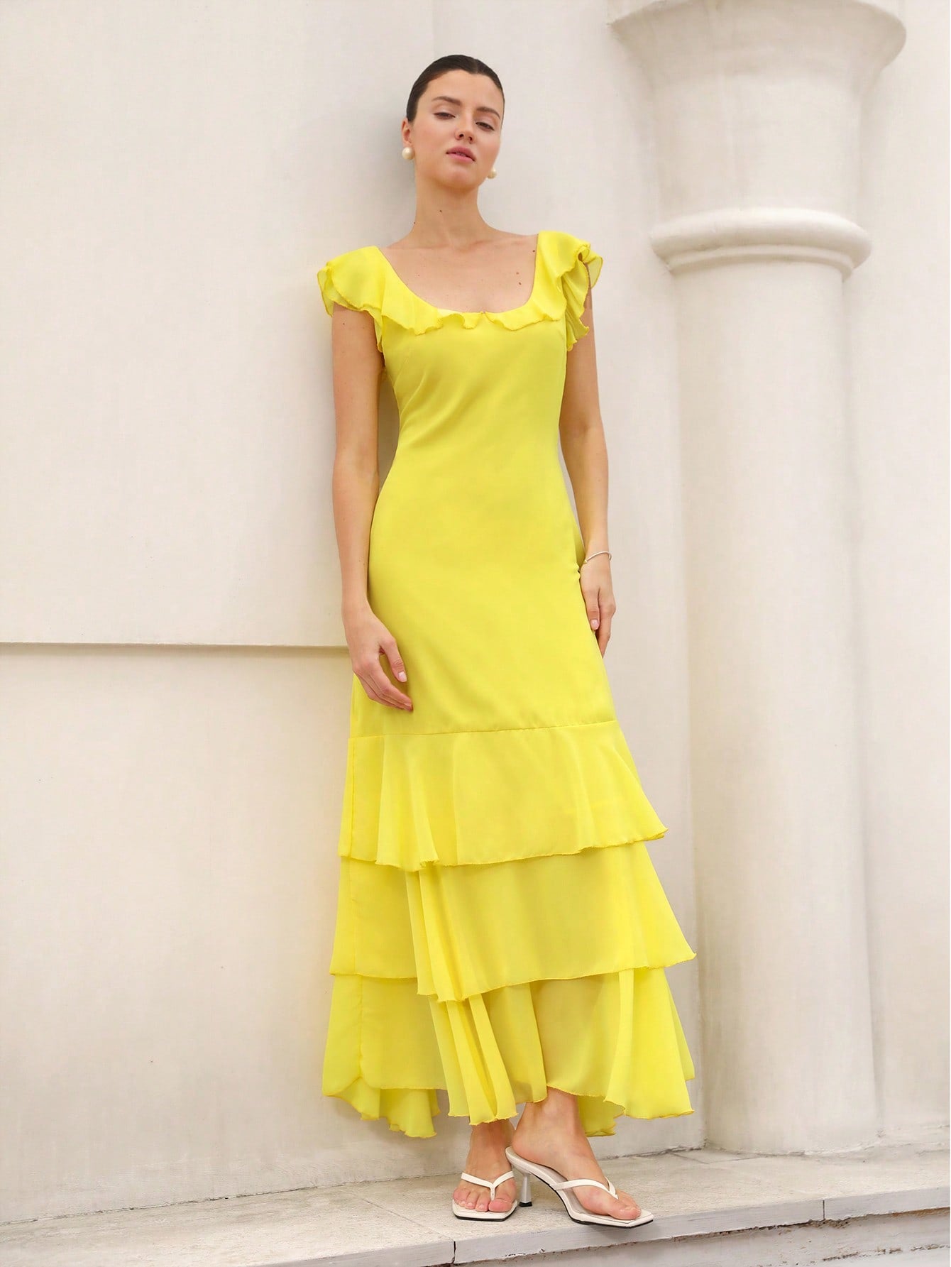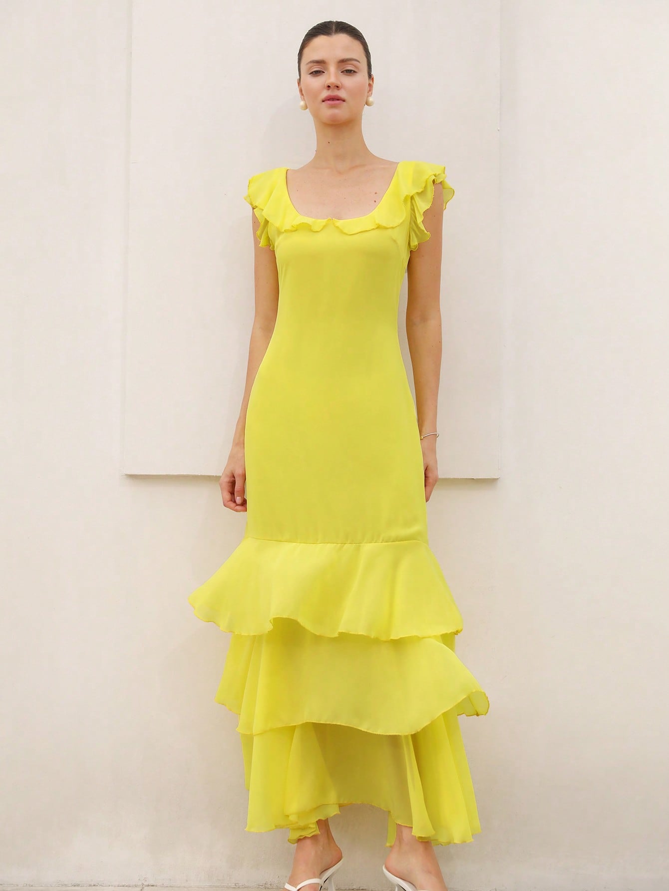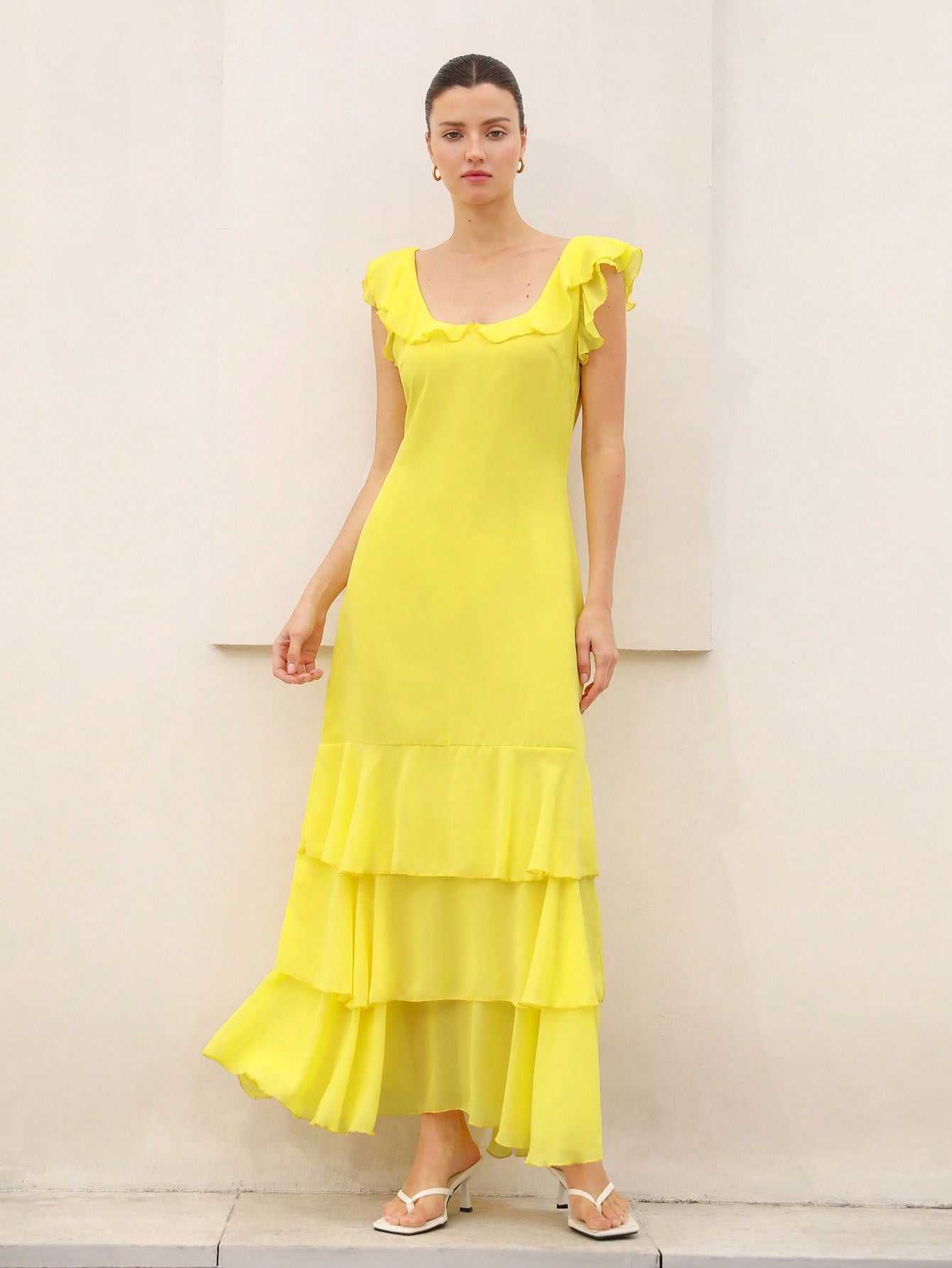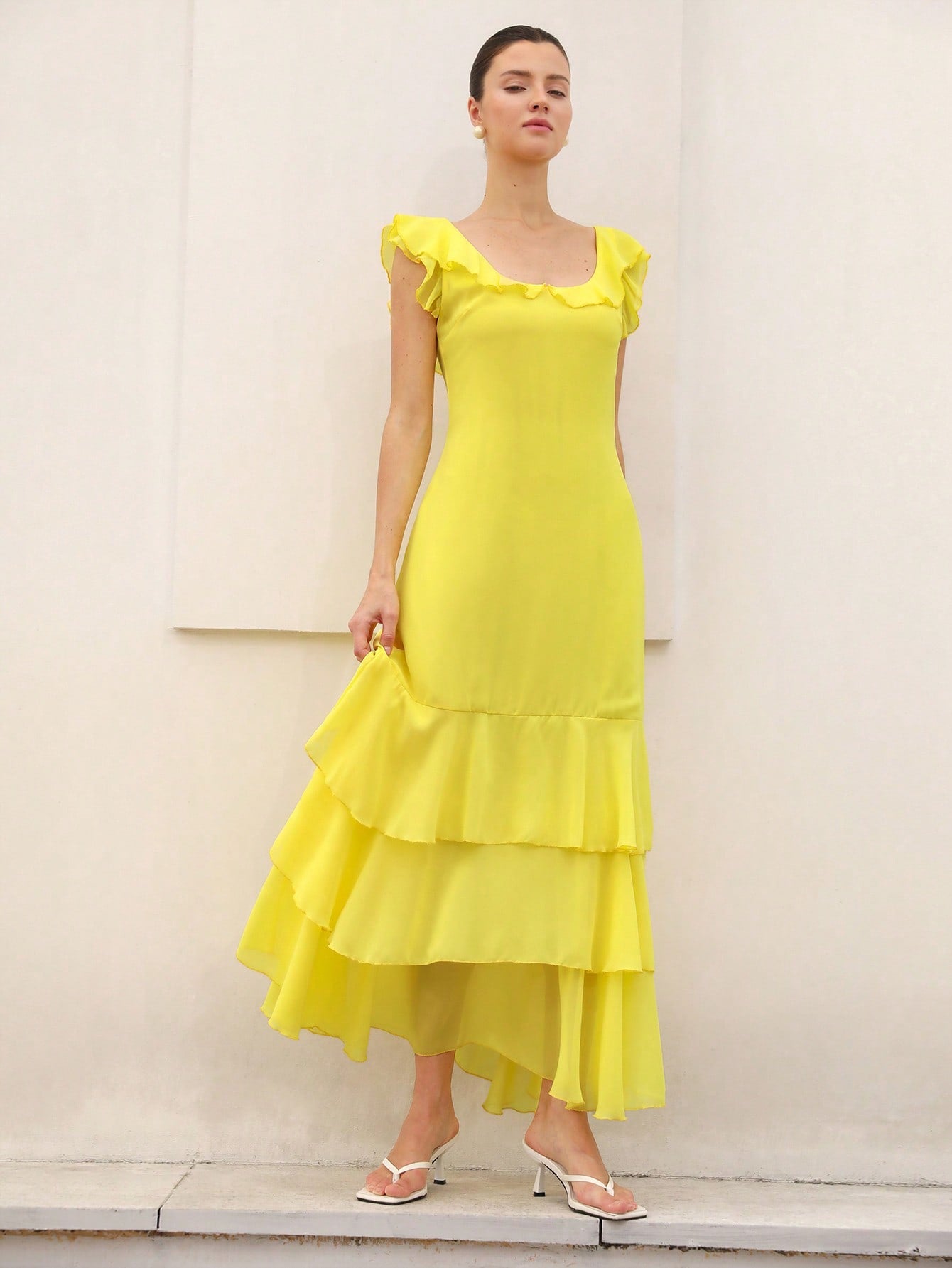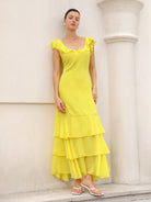 Aveloria Rosie Elegant Ruffle Hem Layered Hem Design Fitted Waist Long Dress For Women ROMANTIC Styleï؟½Inspiration For Summer