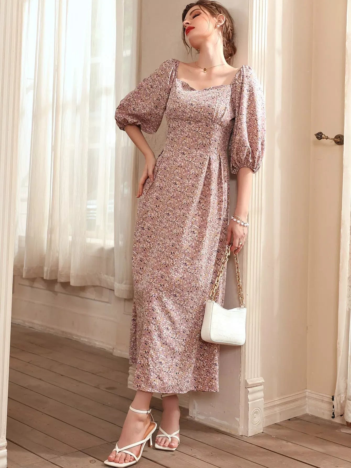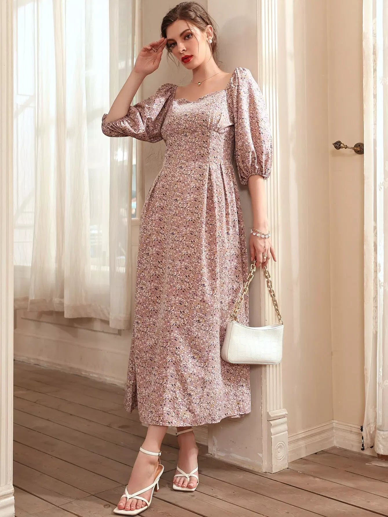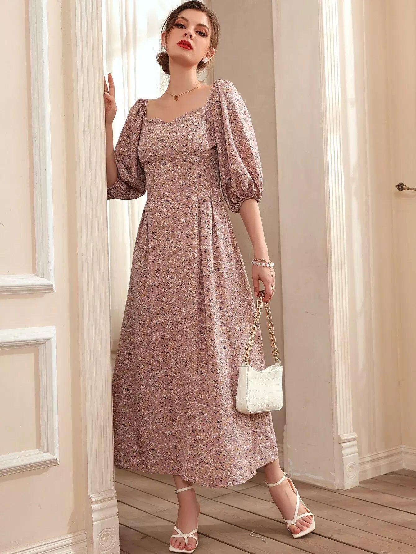 Women - Bishop Sleeve Ditsy Floral A-line Dress