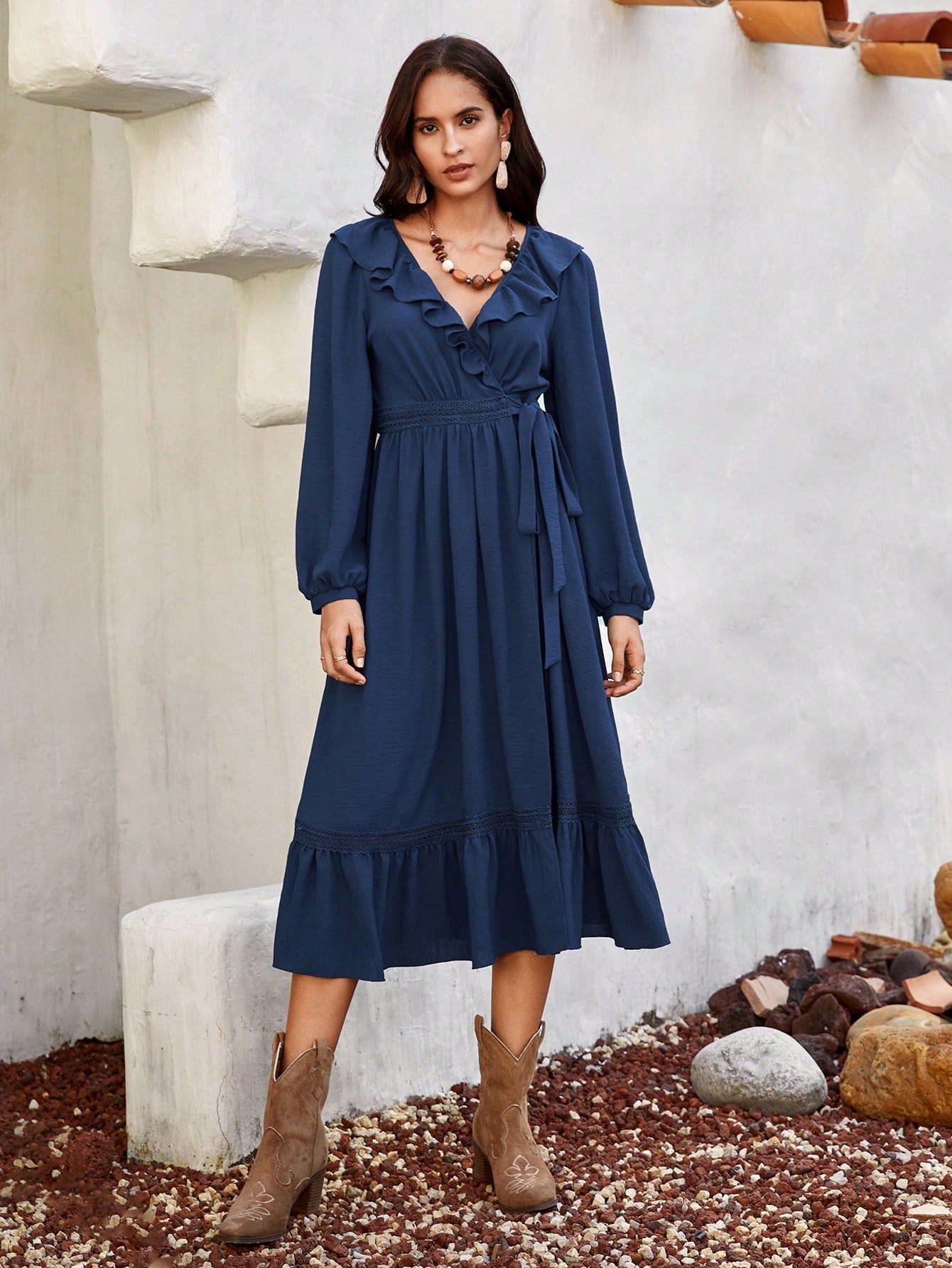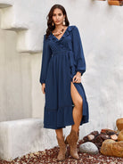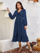 women Bohemela Ruffle Trim Ruffle Hem Dress